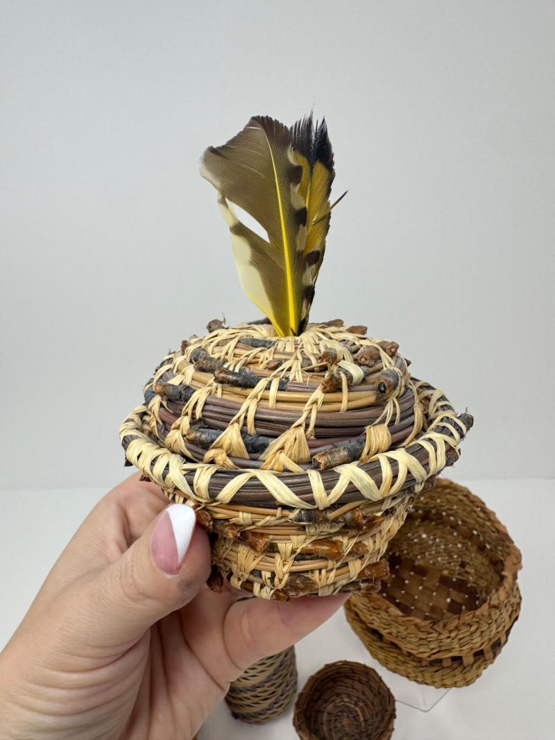 6 Handwoven Mini Baskets – Assorted Styles & Materials. Approx. 4–5" Tall