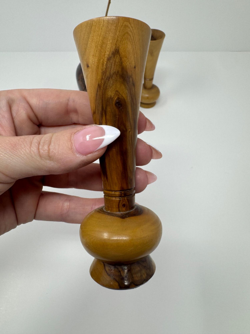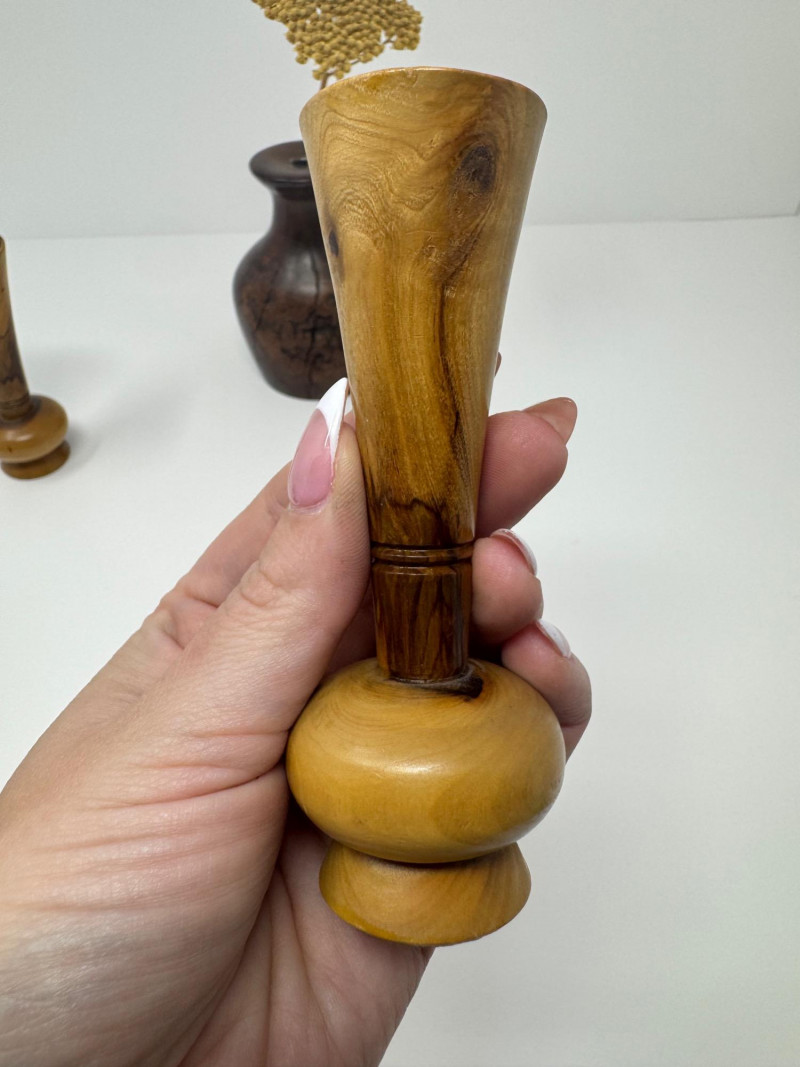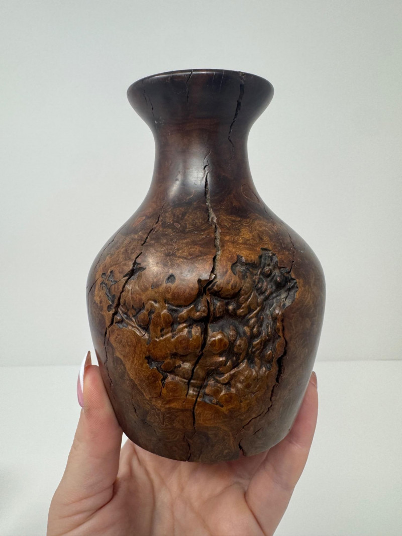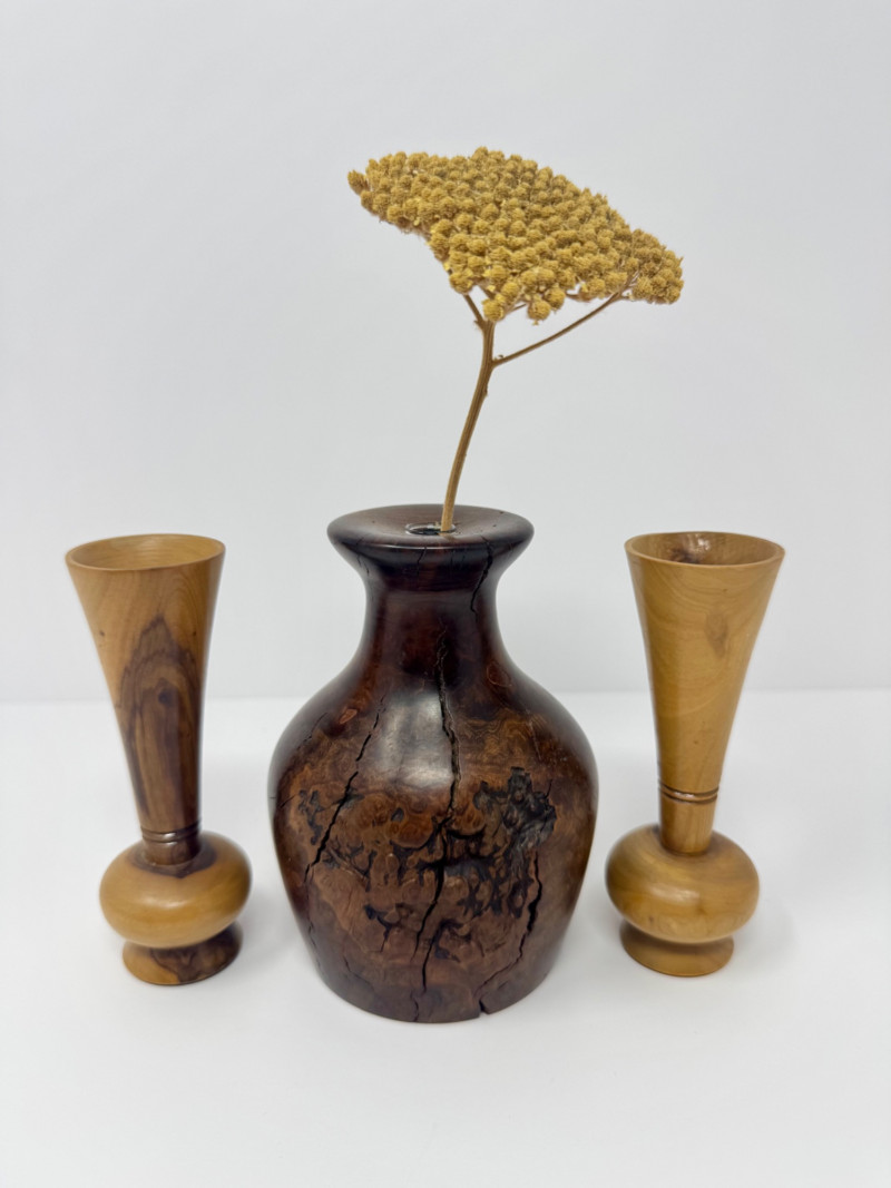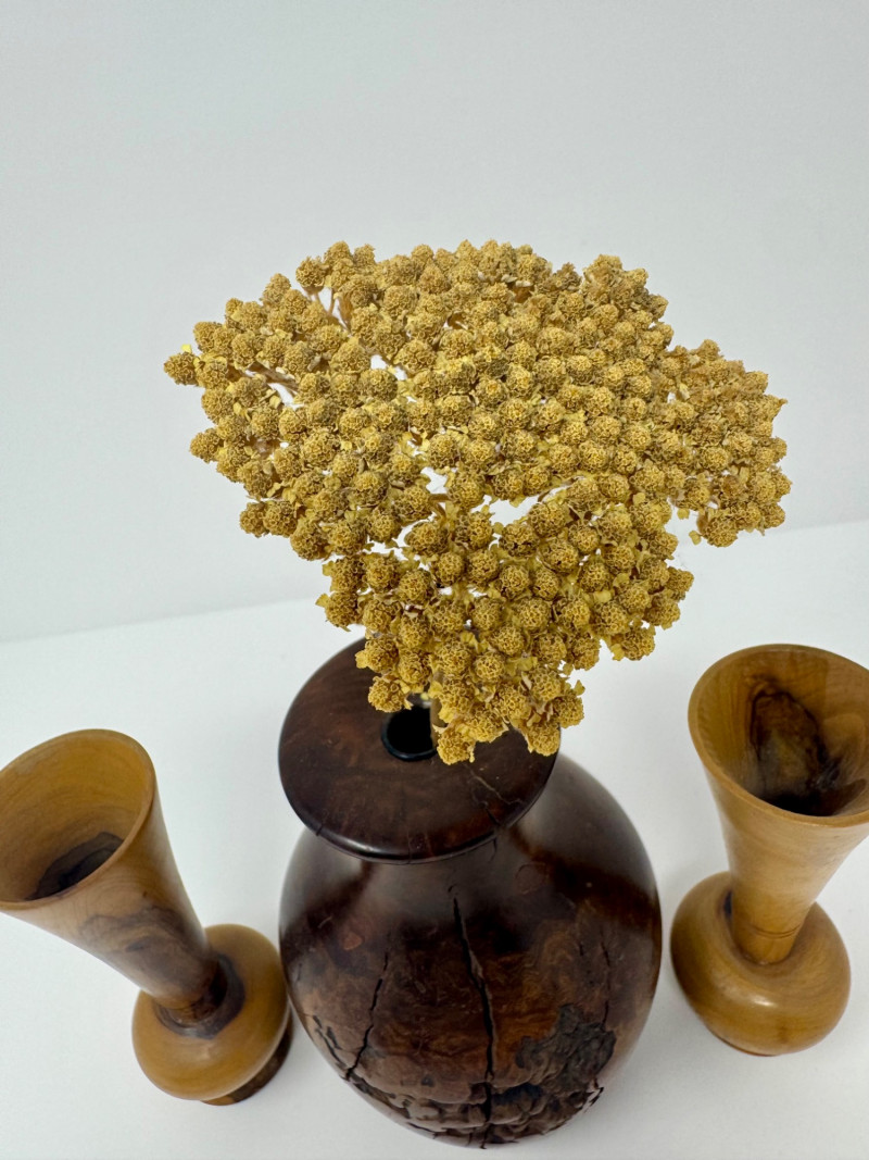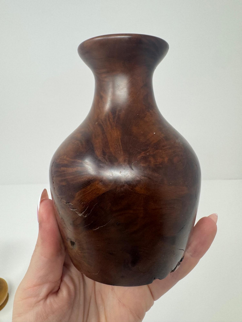 Lot # 37 - Signed Burlwood Vase w/ 2 Small Turned Wood Vases