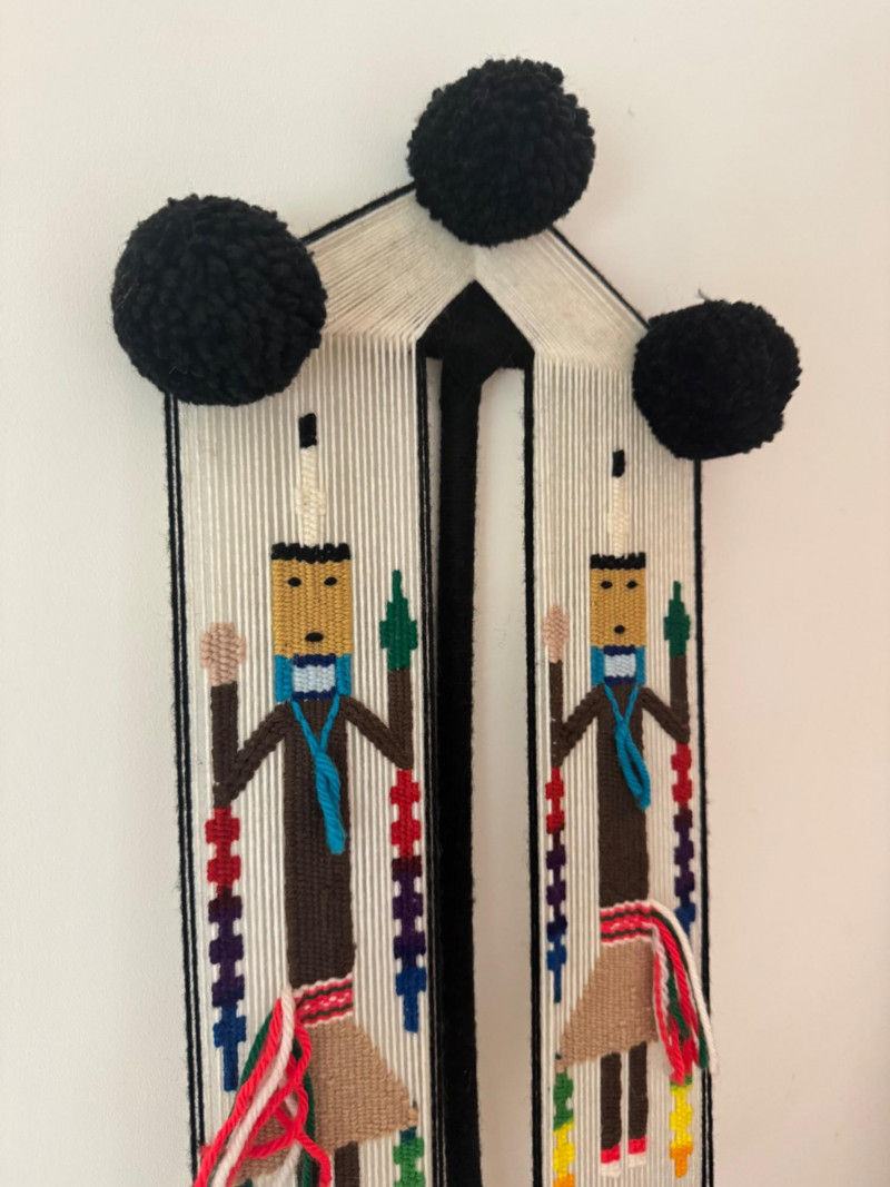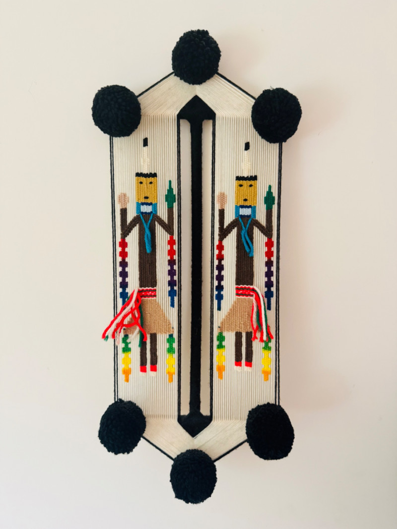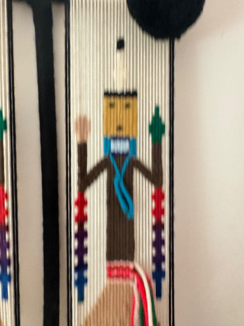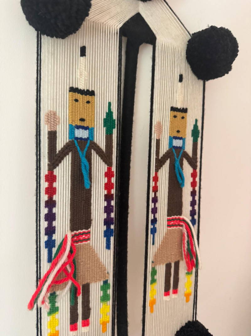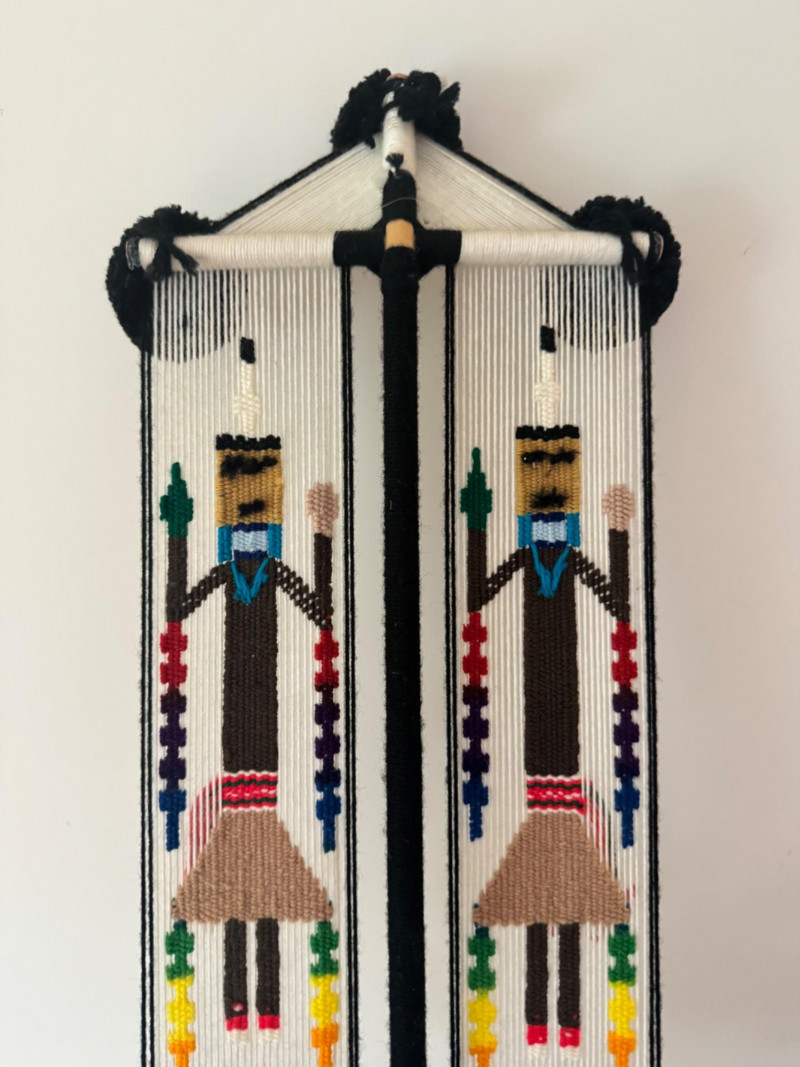 Navajo Style Woven Yarn Wall Hanging w/ Figures. Measures approx. 25" long x 5" wide
