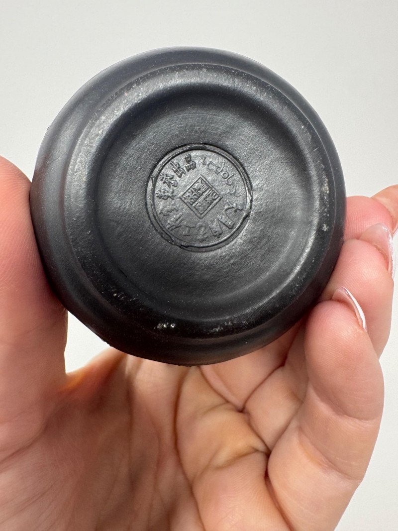 Lot # 45 - Black Dragon Embossed Teapot + 2 Matching Cups - Signed Base