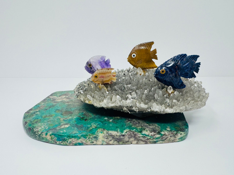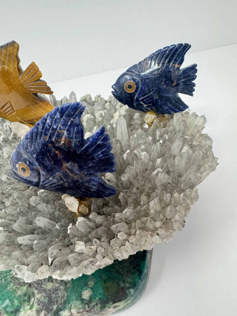 Lot # 48 - Large 10” Gemstone Fish Sculpture on Crystal Coral-Like Stone Base