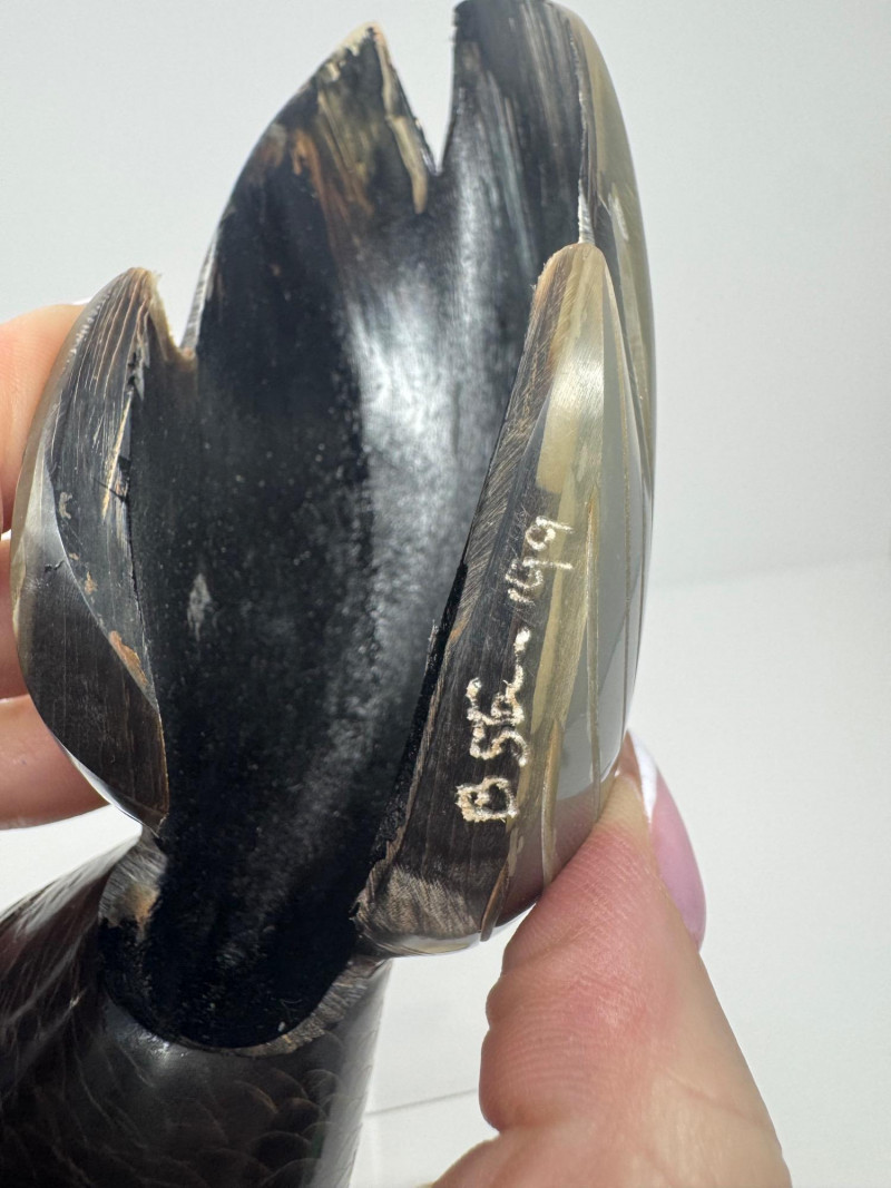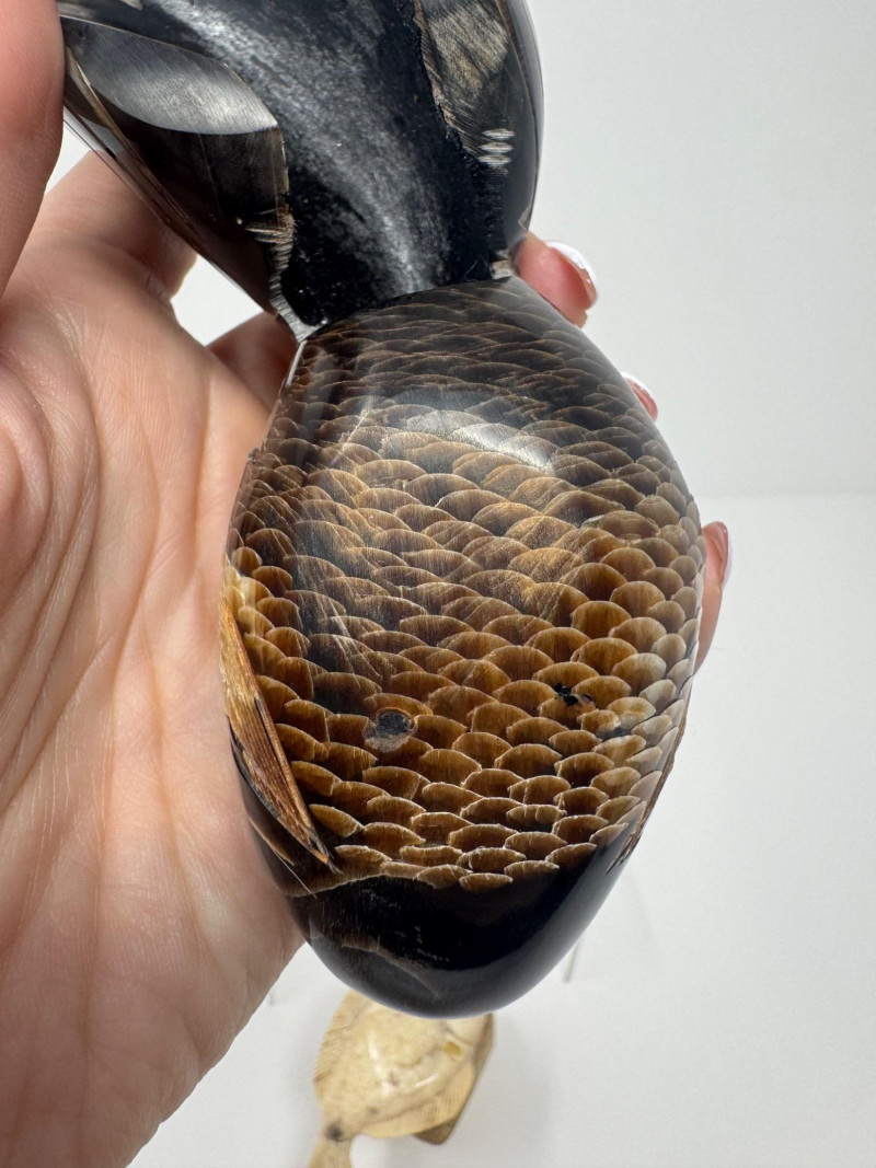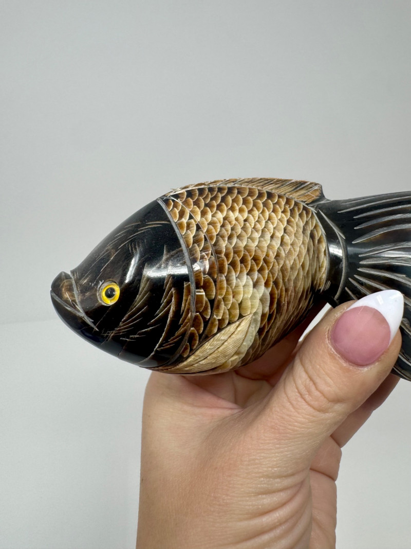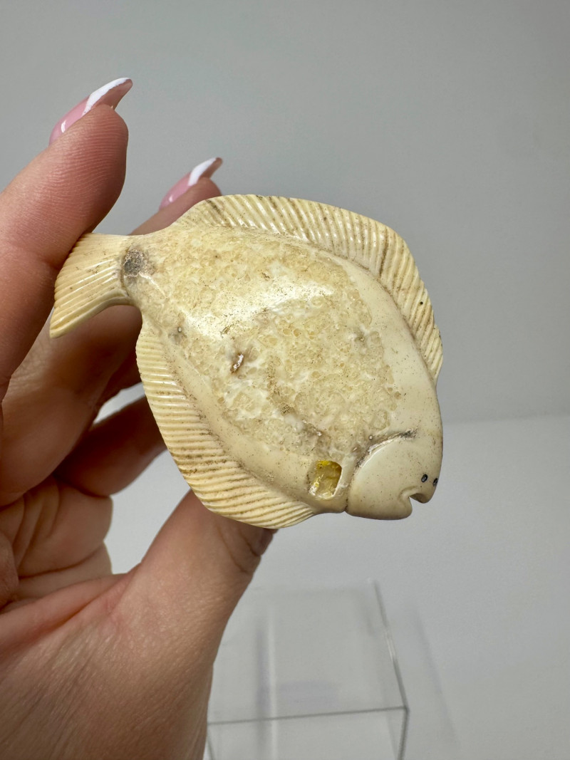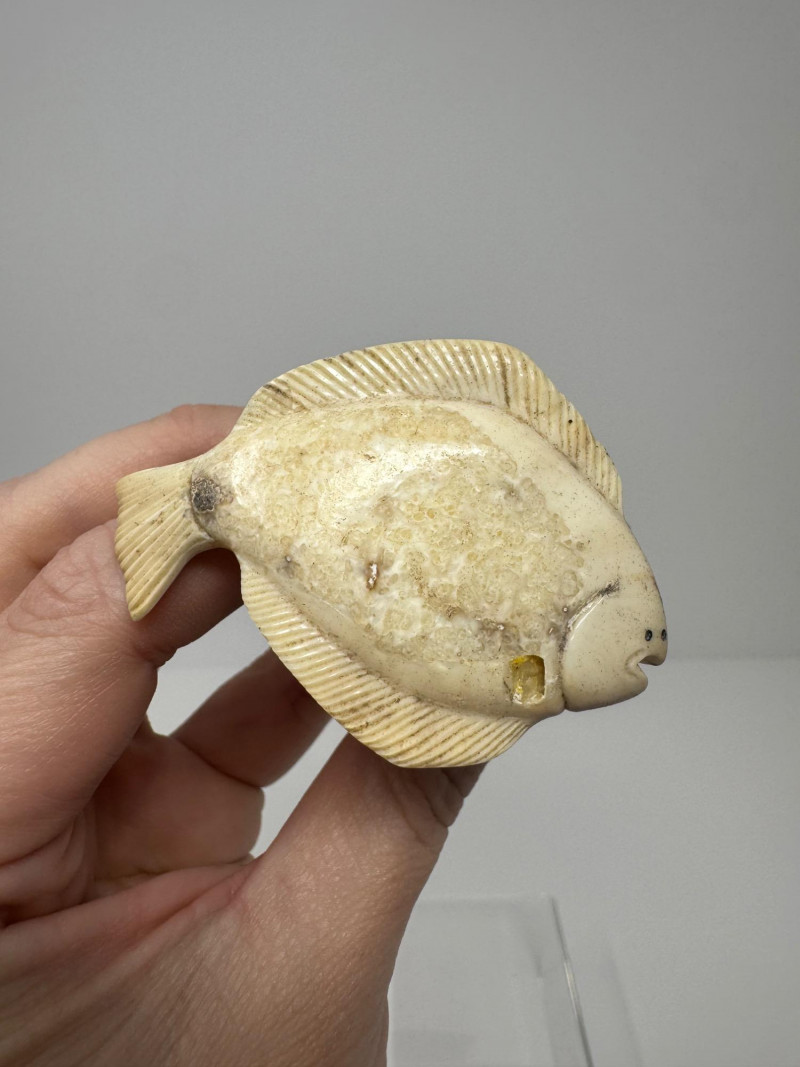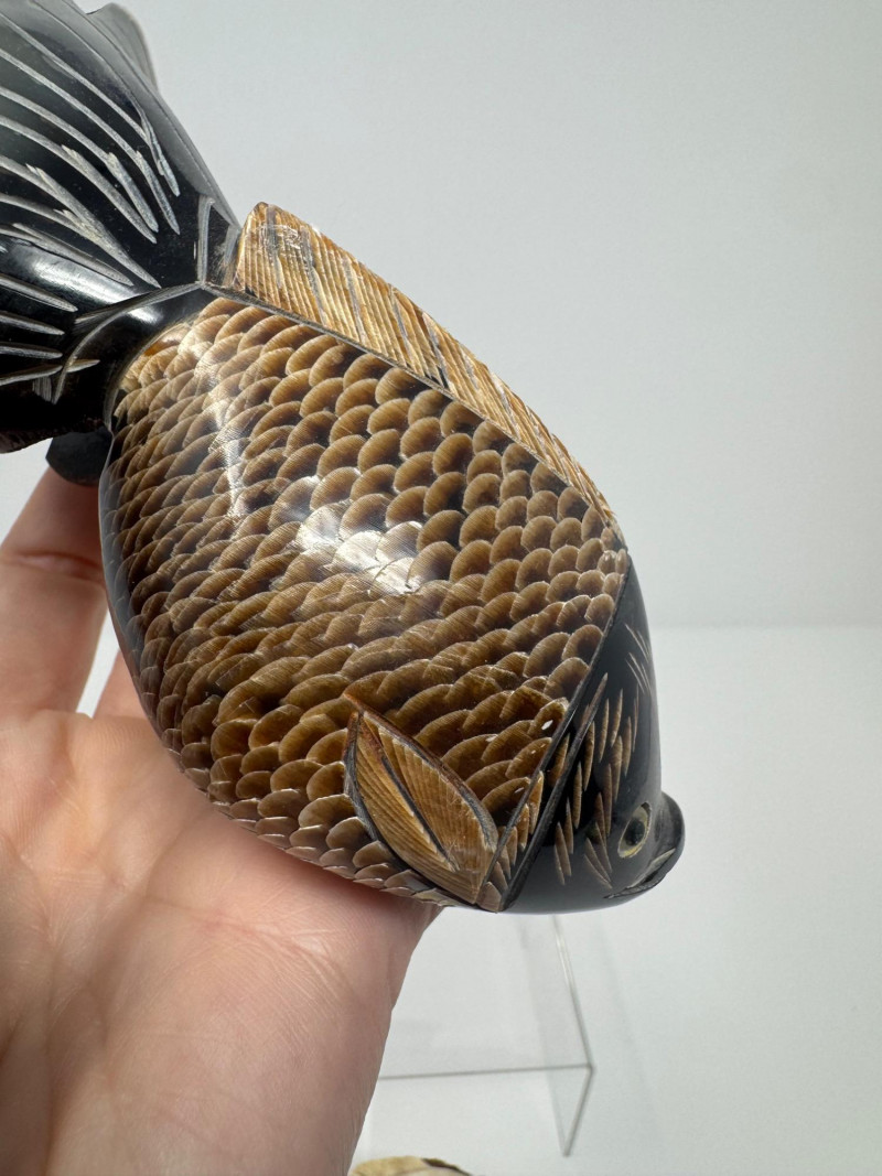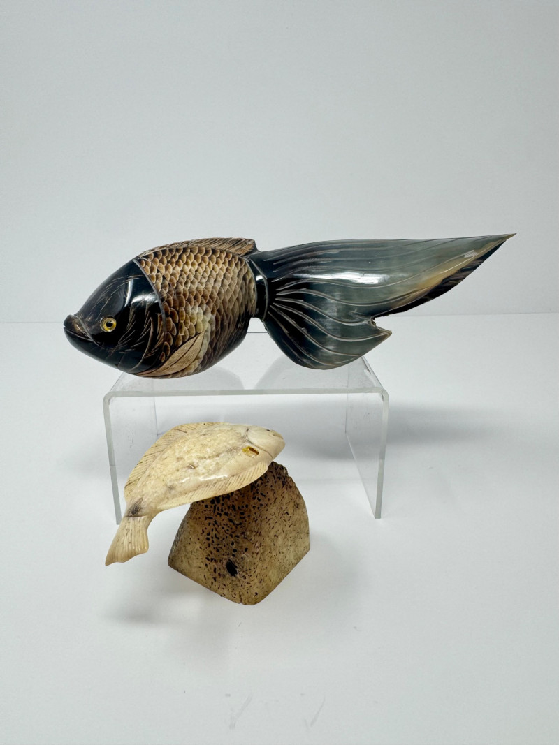 Lot # 53 - Hand-Carved Bone Fish Sculptures – Detailed Koi & Flatfish on Base