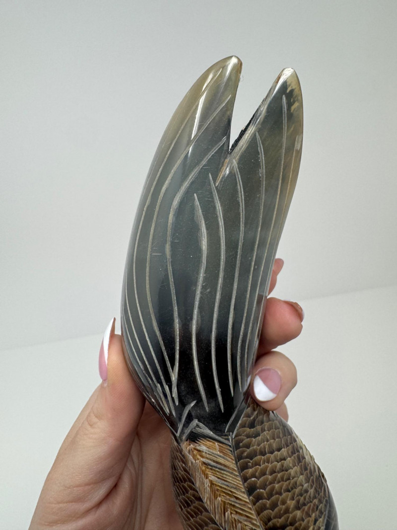 Hand-Carved Bone Fish Sculptures – Detailed Koi & Flatfish on Base.