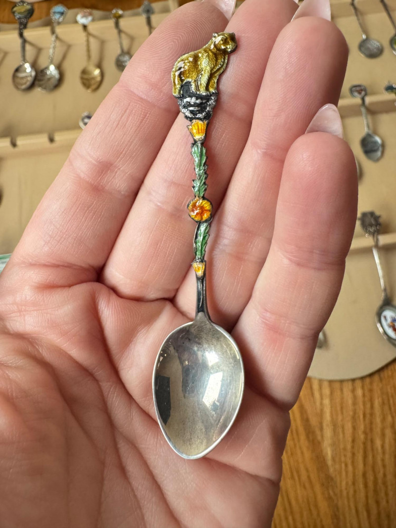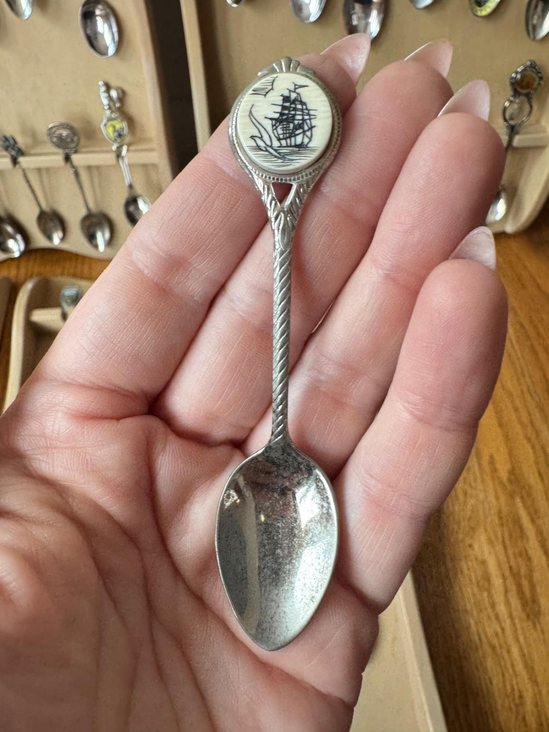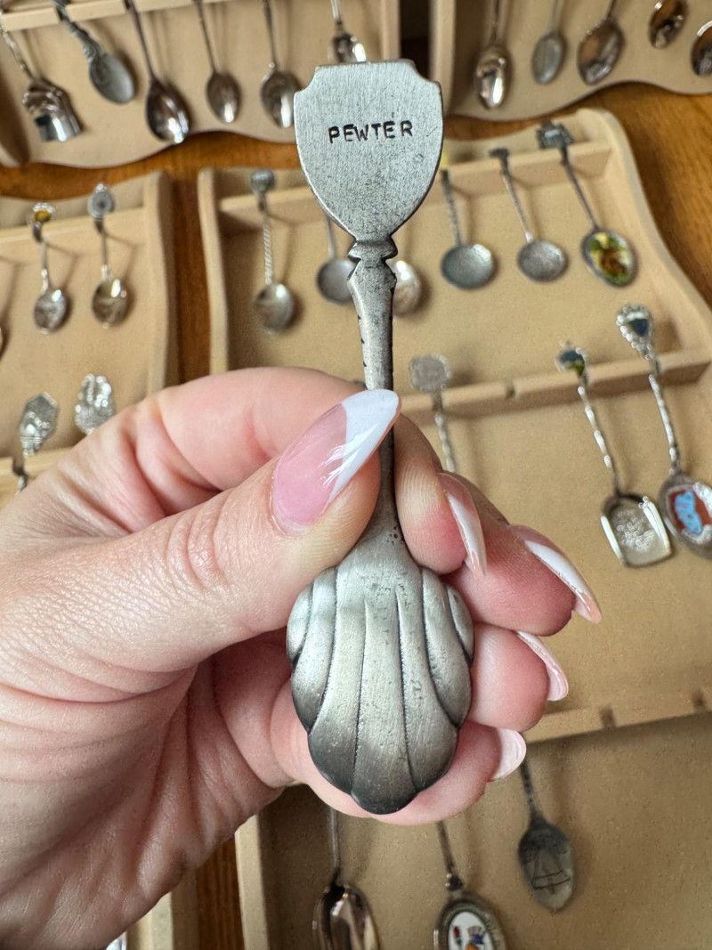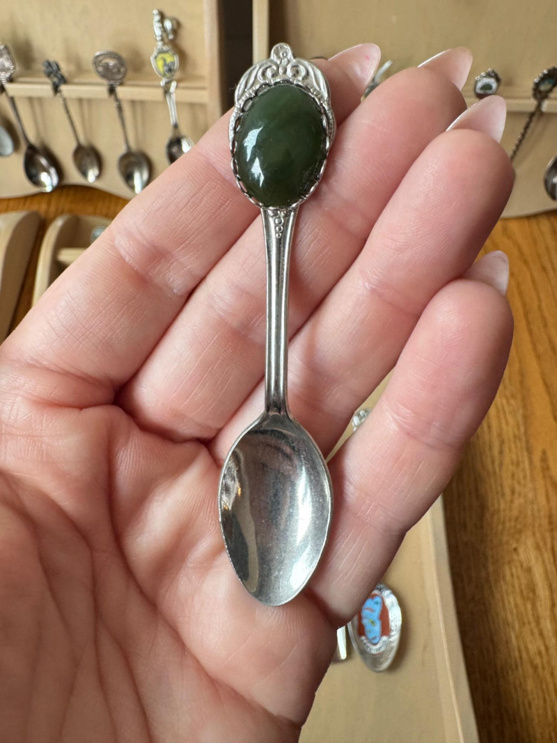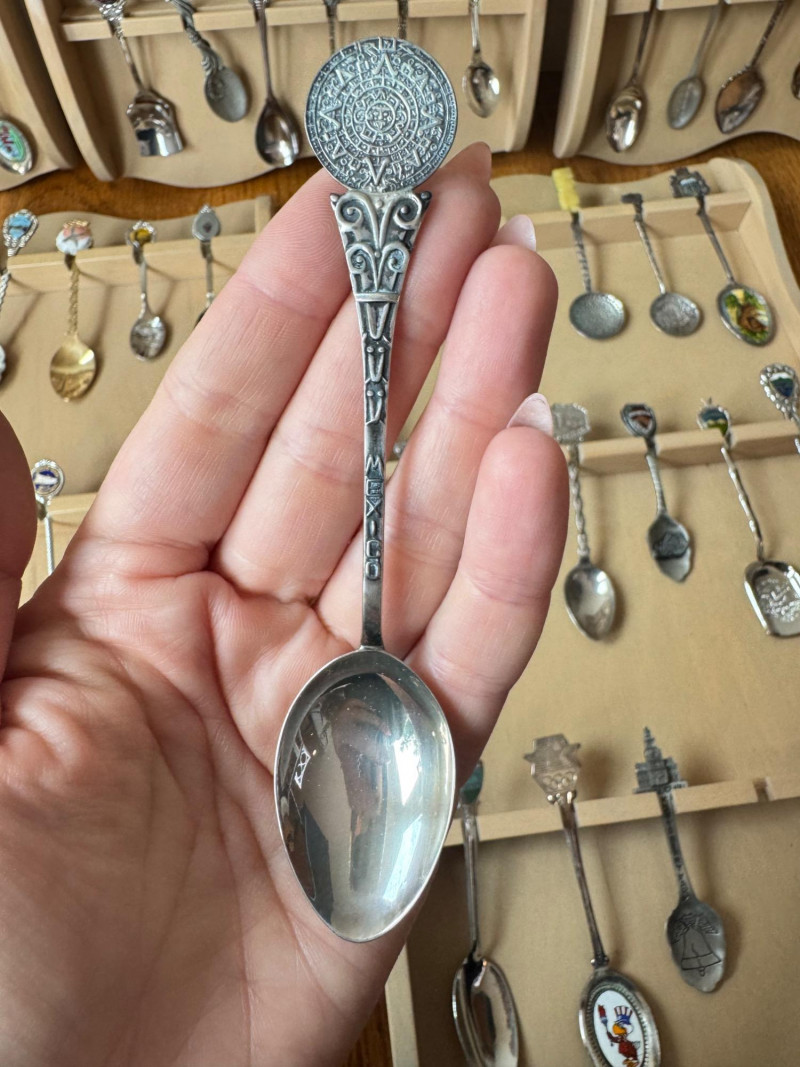 World Souvenir Spoon Collection w/ 5 Racks, 11pcs Silver Marked - #2. Disclaimer: We do not test the metals of the items listed for auction. By placing a bid, you acknowledge and agree that you are purchasing the item "as is" and without any guarantee of metal quality. We do not offer refunds based on metal content or purity.