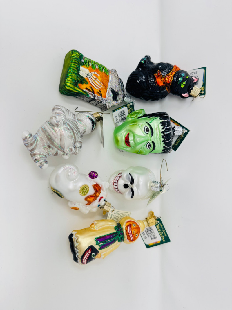 Lot # 88 - Boo Crew – Frankenstein, Ghost, Cat & More Blown Glass Ornaments