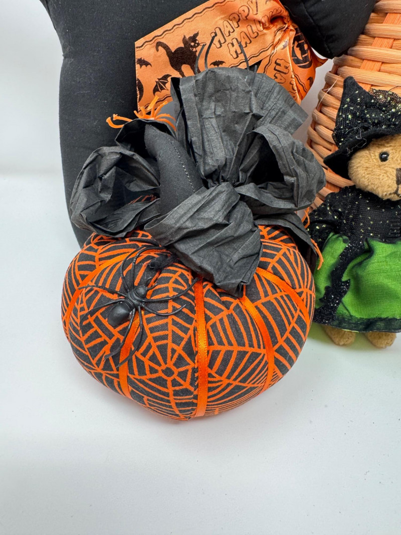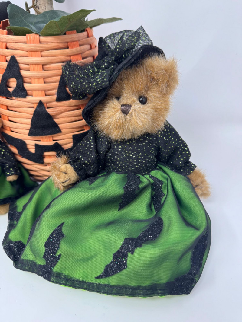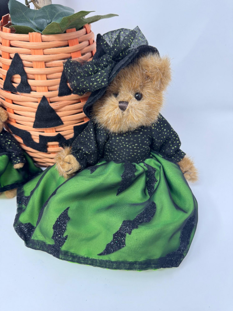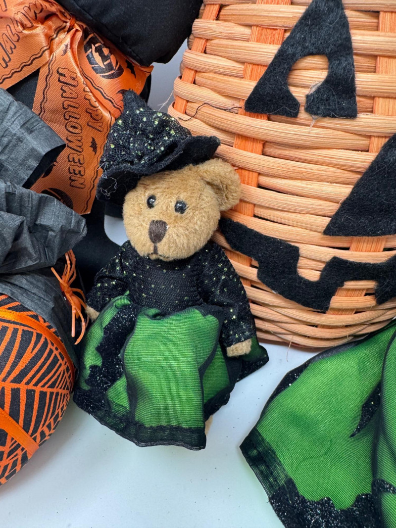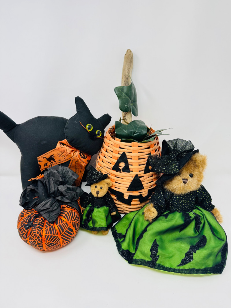 Lot # 89 - Halloween Cuties – Bearington Witch Bears, Black Cat & Pumpkin Basket