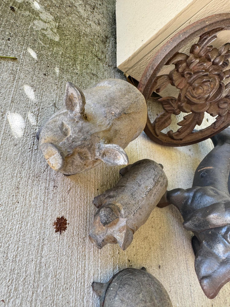 Cast Iron Critters – Wiener Dog, Oinky Pigs & a Lady Bug w/ Secrets. 15” Long Dachshund
