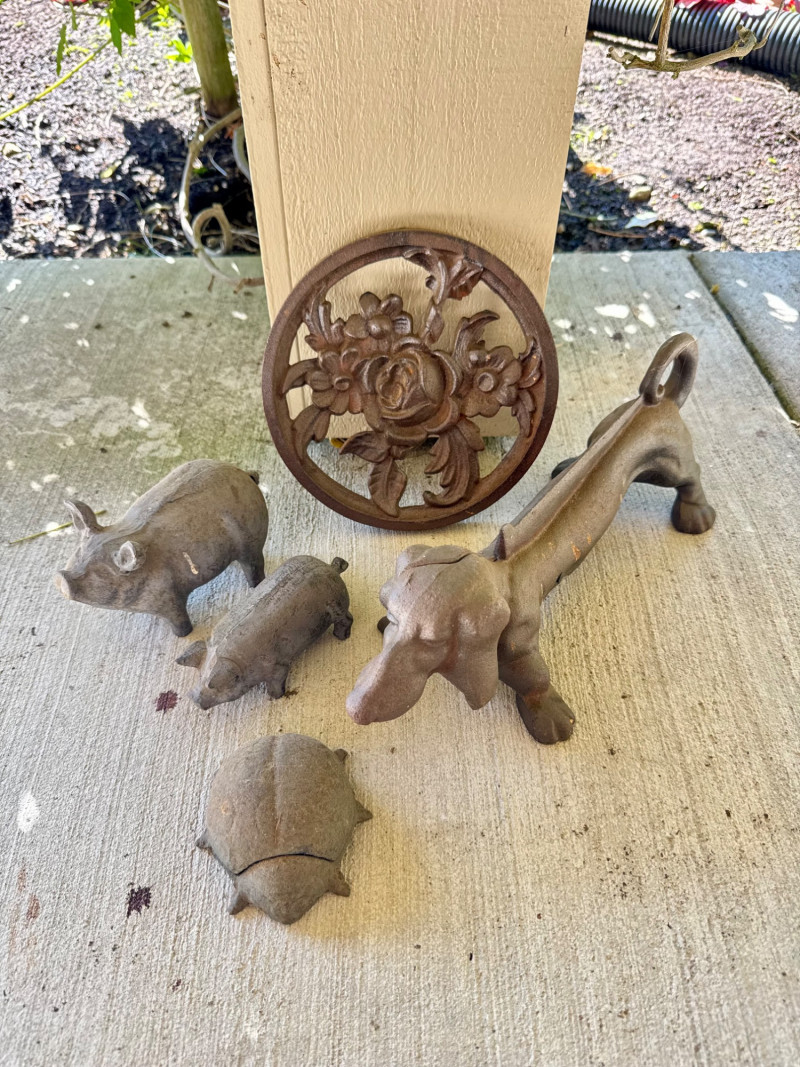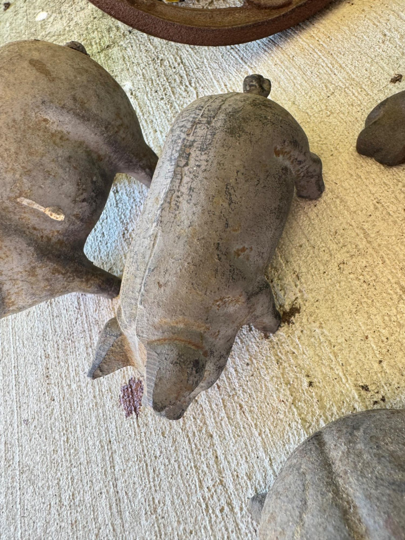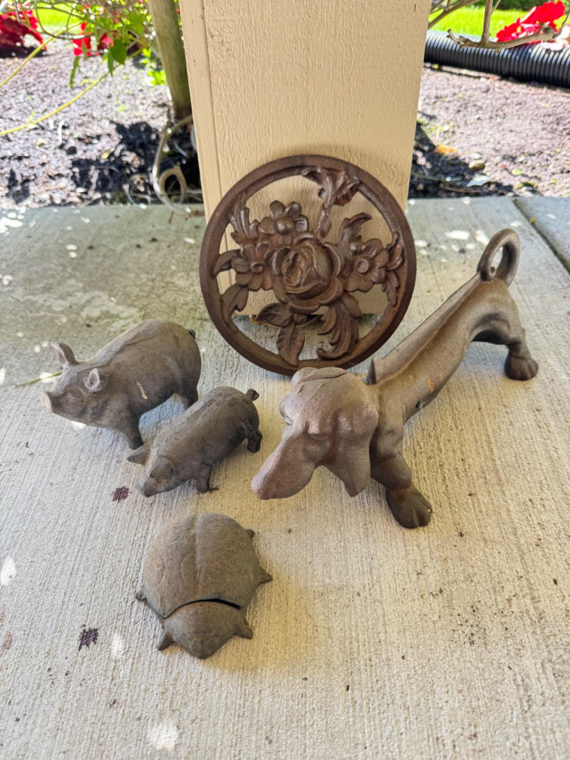 Lot # 96 - Cast Iron Critters – Wiener Dog, Oinky Pigs & a Lady Bug w/ Secrets