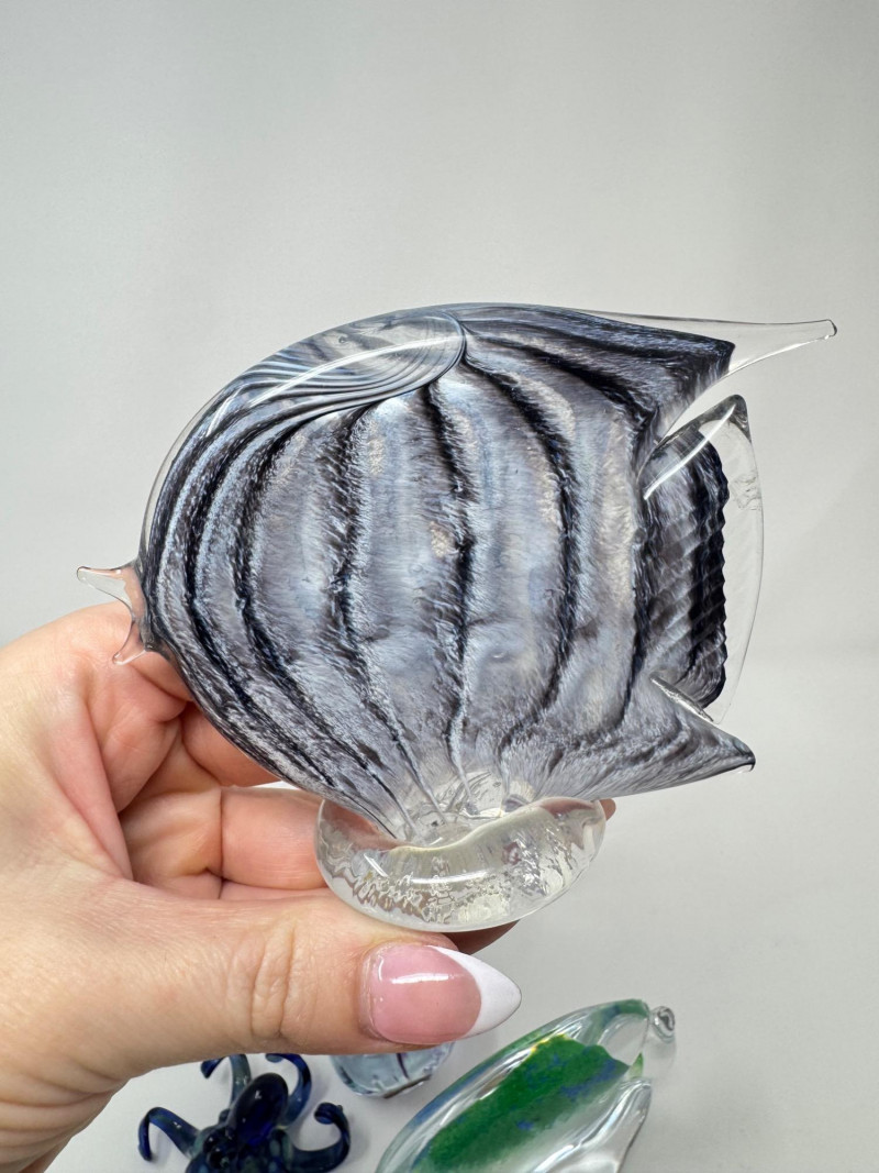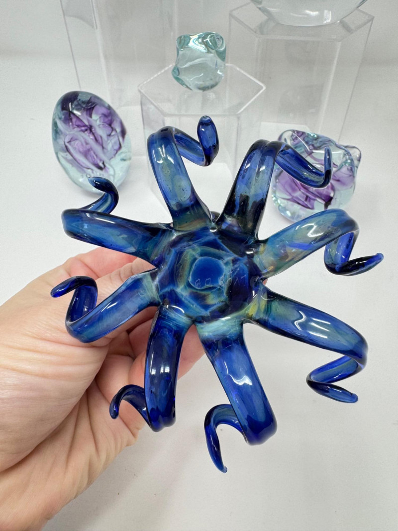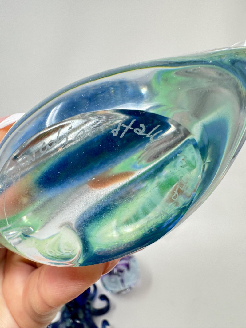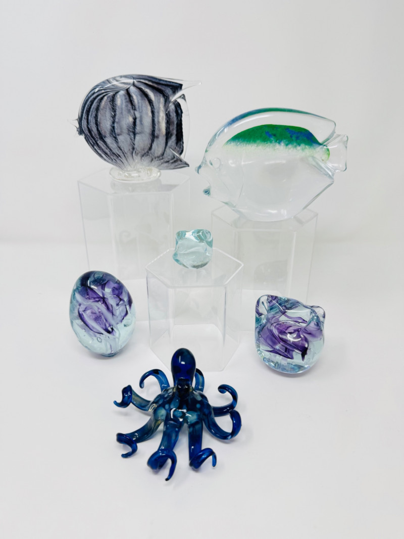 6 Hand Blown Art Glass Figures – Signed Fish, Octopus, Paperweights.