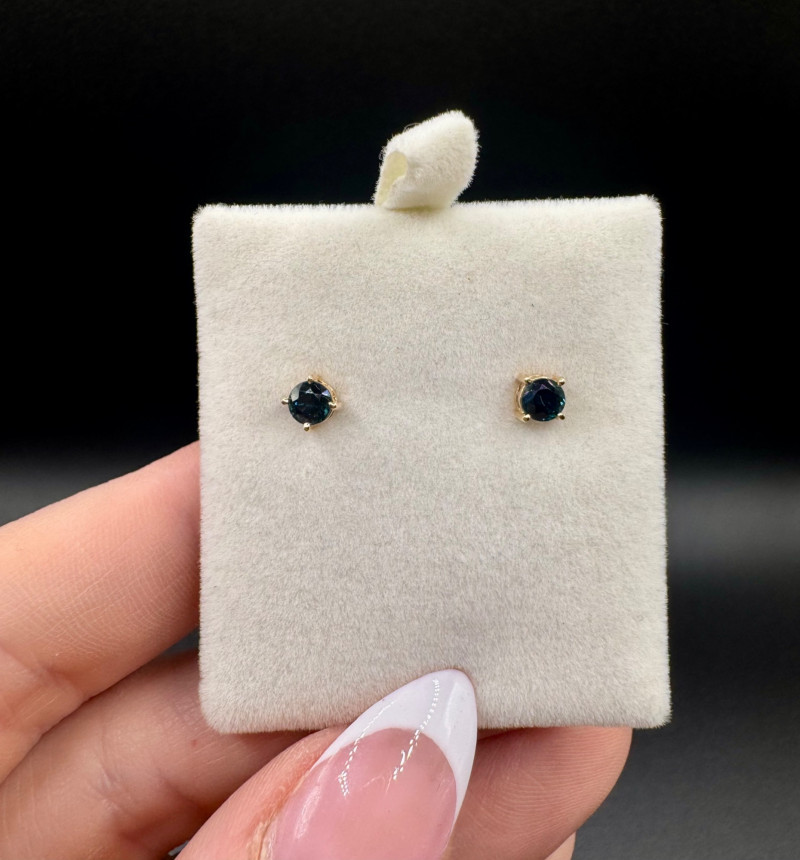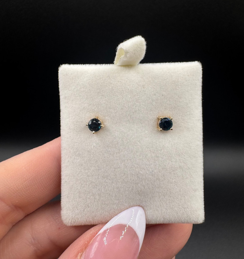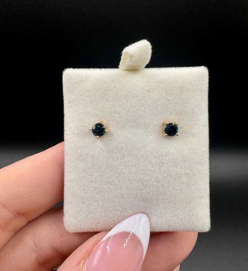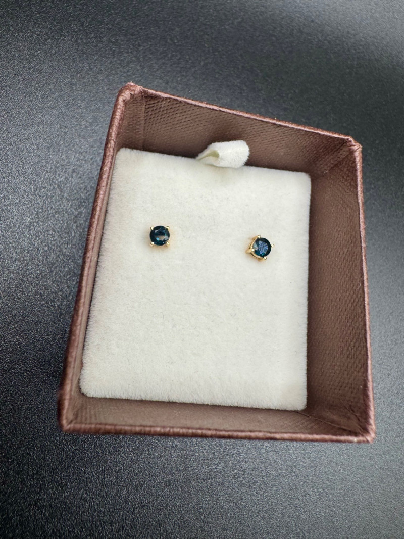 Fire & Ice 14K Gold Sapphire Stud Earrings 3.75mm Stones. Disclaimer: The jewelry in this auction lot has not been tested. By placing a bid, you agree to purchase the item as is, with no guarantees regarding metal quality, content, or purity. Refunds will not be issued on these factors.