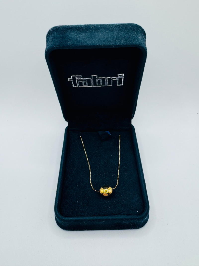 14K Gold Fabri Necklace w/ Bead Pendant on 18" Ball Chain 1.72g. Disclaimer: The jewelry in this auction lot has not been tested. By placing a bid, you agree to purchase the item as is, with no guarantees regarding metal quality, content, or purity. Refunds will not be issued on these factors.