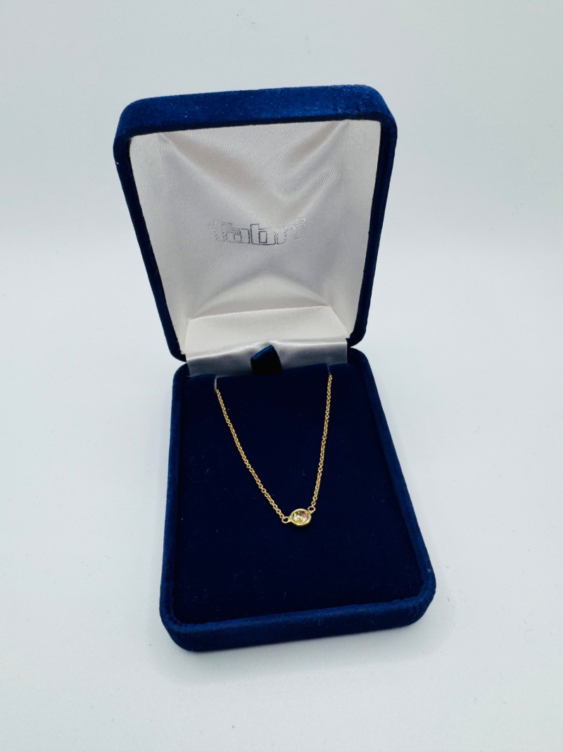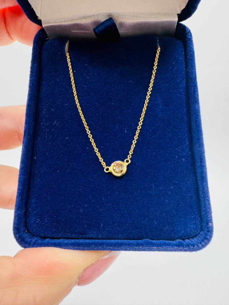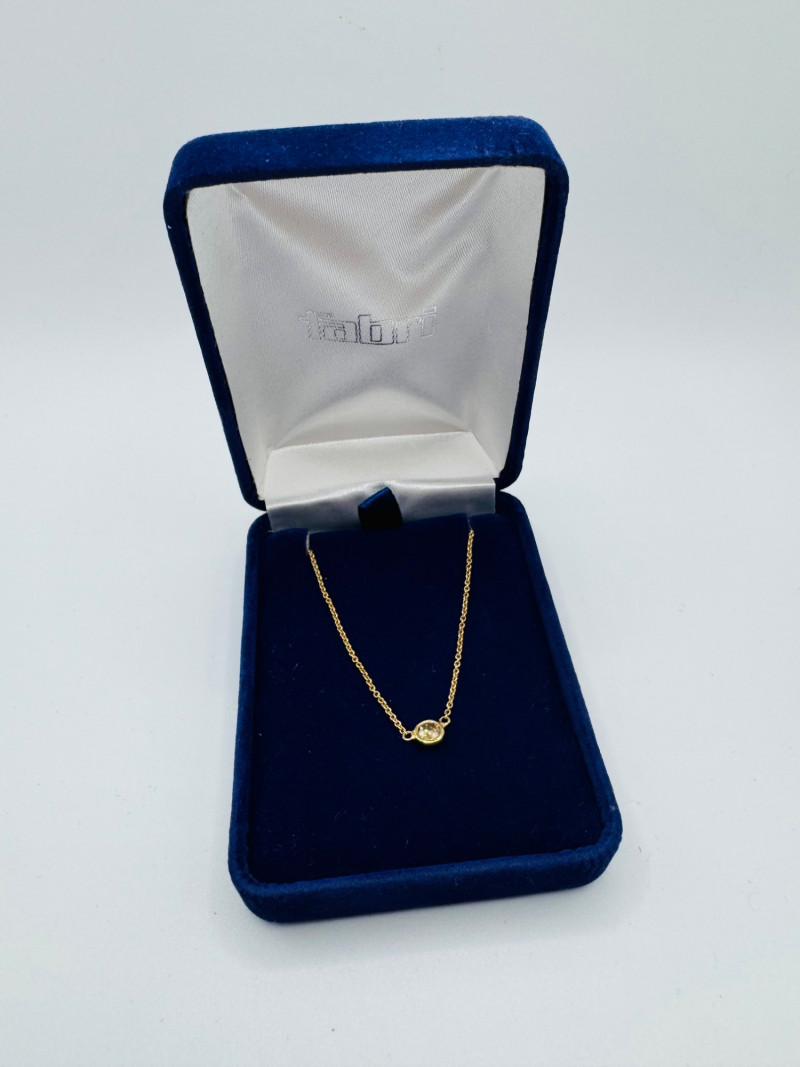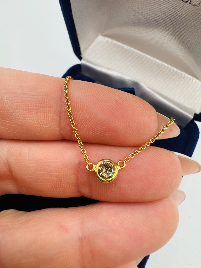 14K Gold Fabri Bezel Necklace w/ Champagne Diamond Pendant 2.2g.