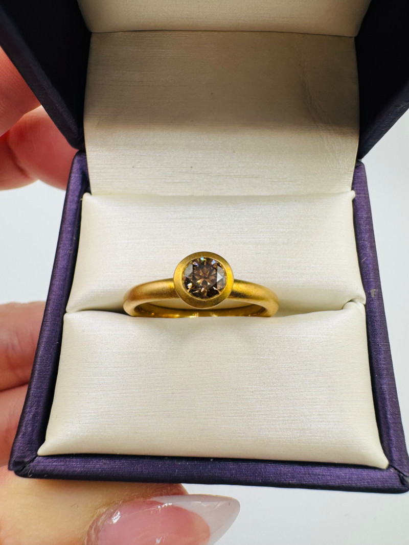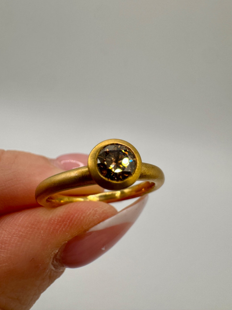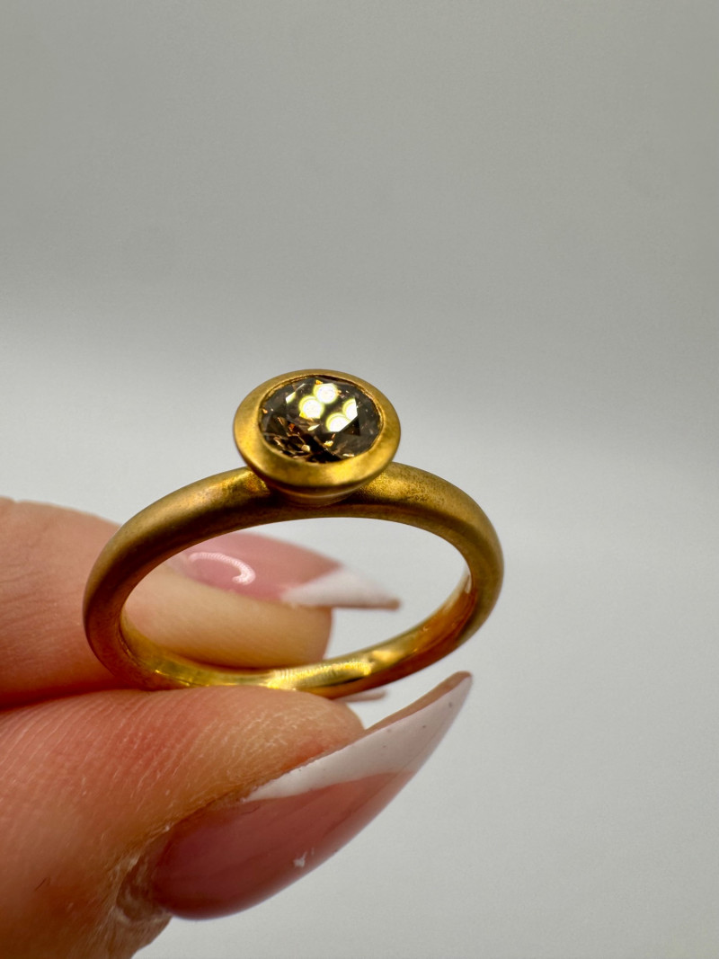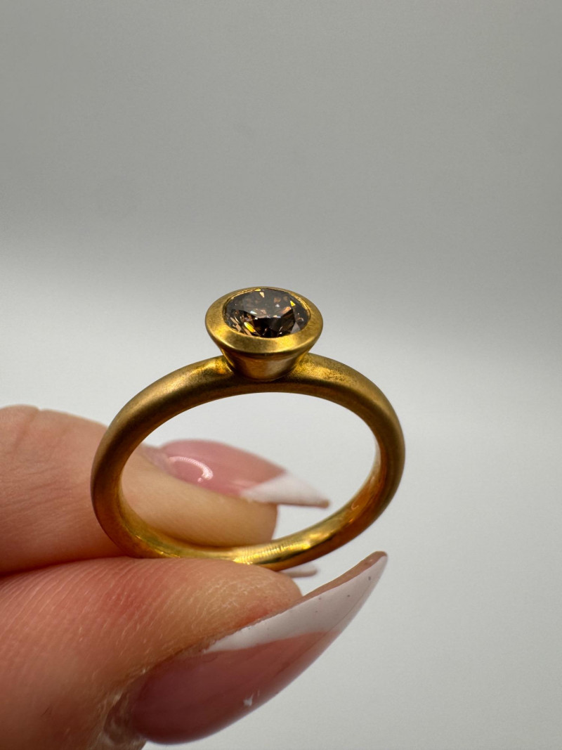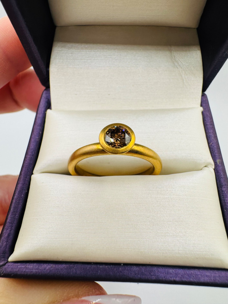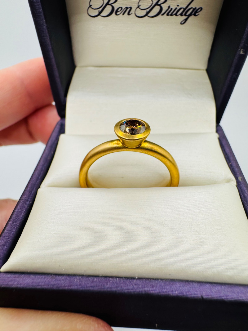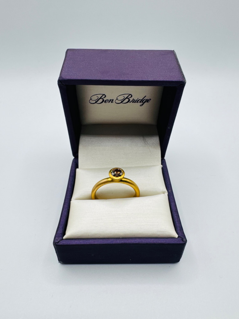 Lot # 8 - Ben Bridge 14K Brushed Gold Ring w/ Chocolate Brown Diamond 4.2g