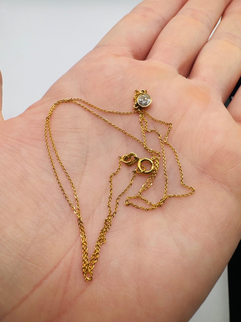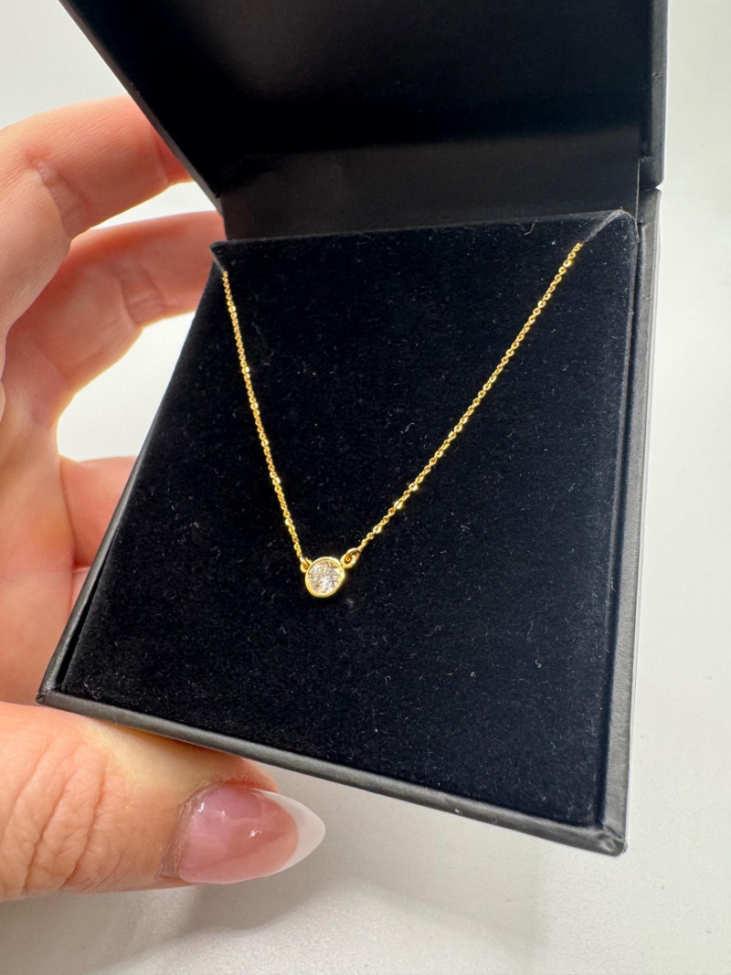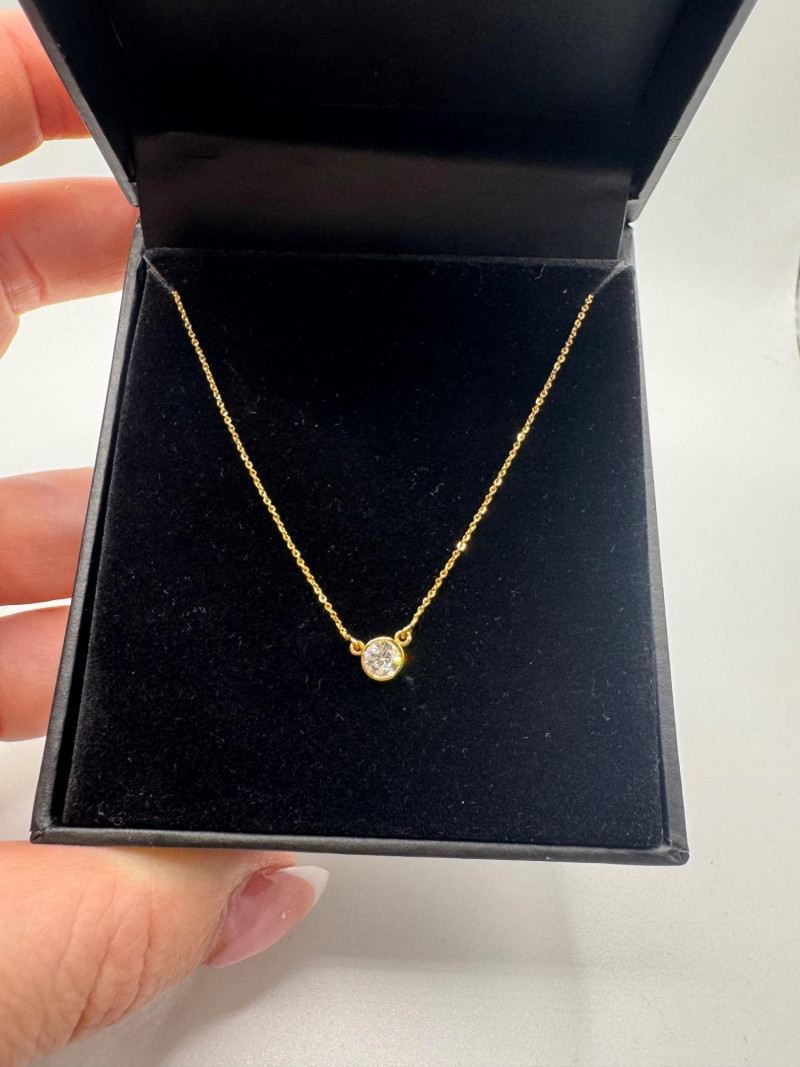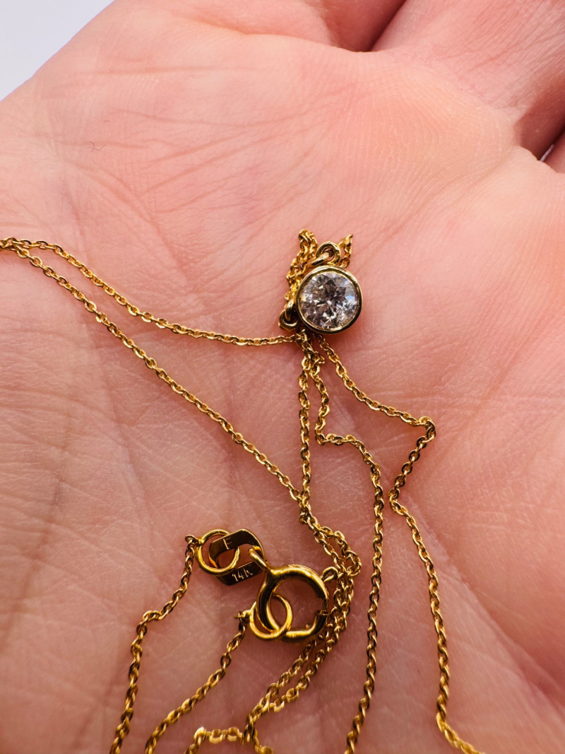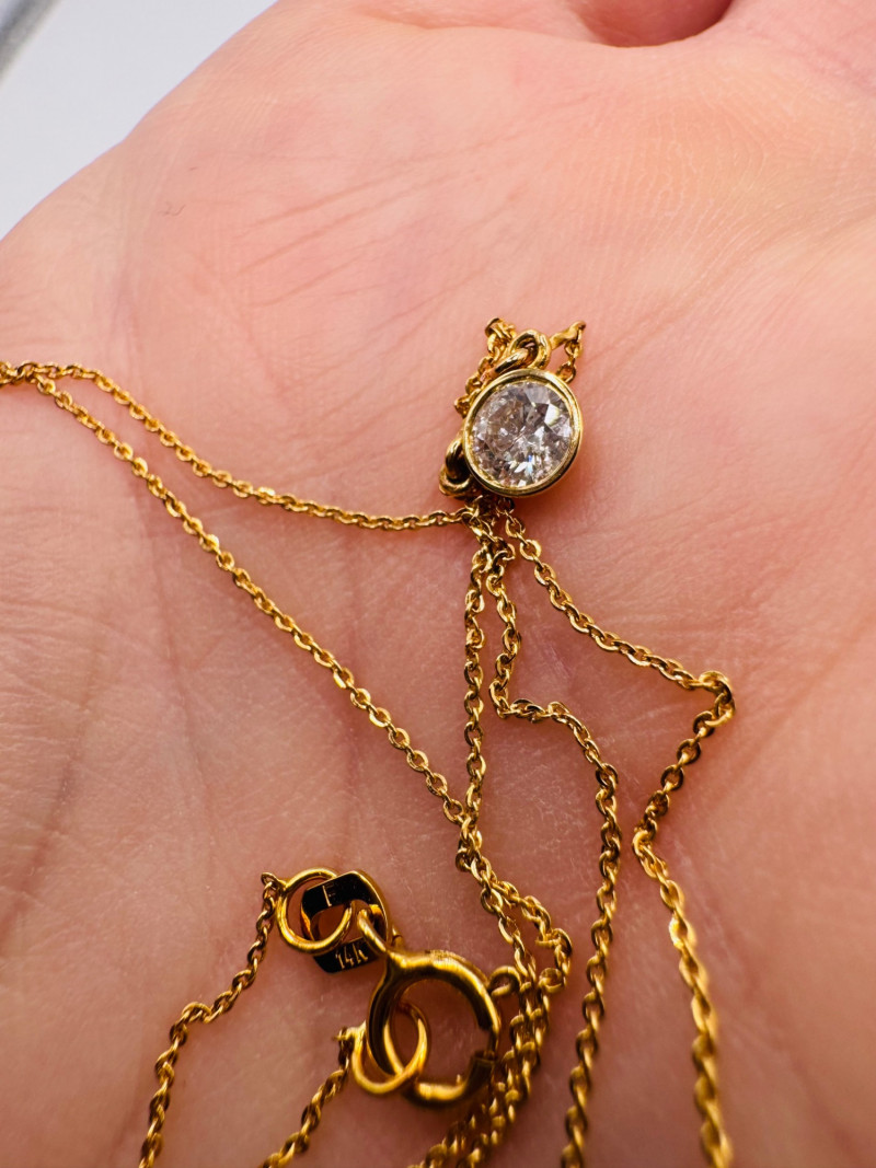 Lot # 9 - Macy’s 14K Gold Bezel Diamond Pendant Necklace 1/5ct, 1.07g