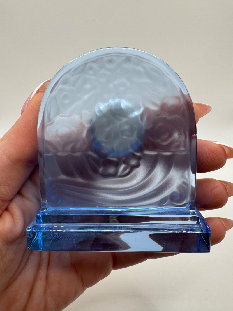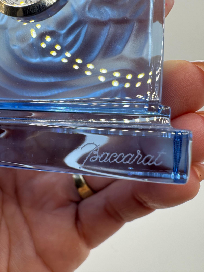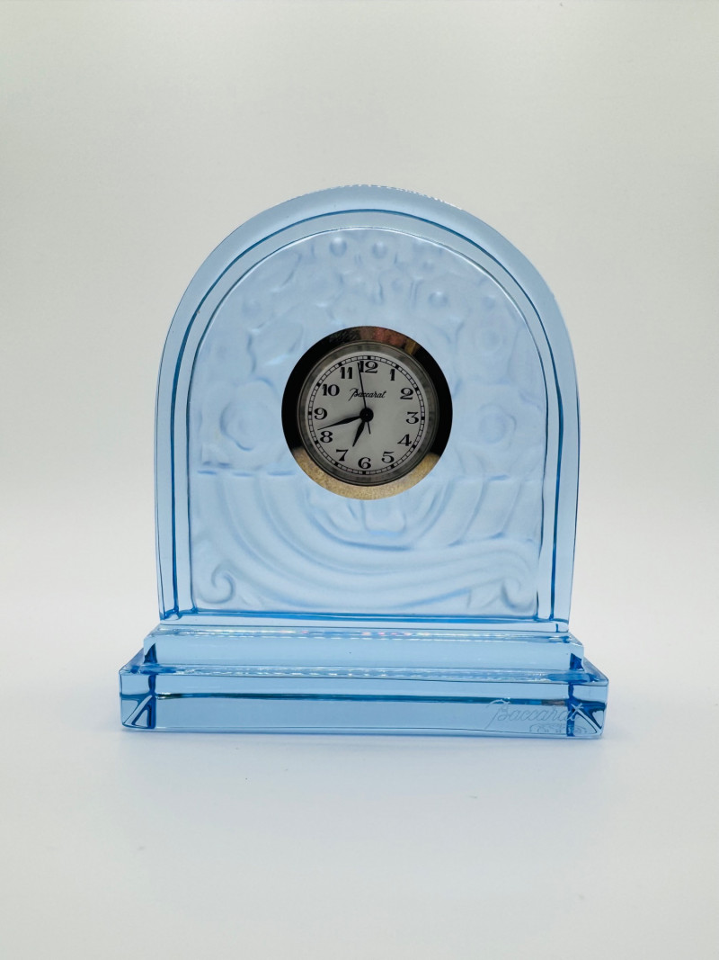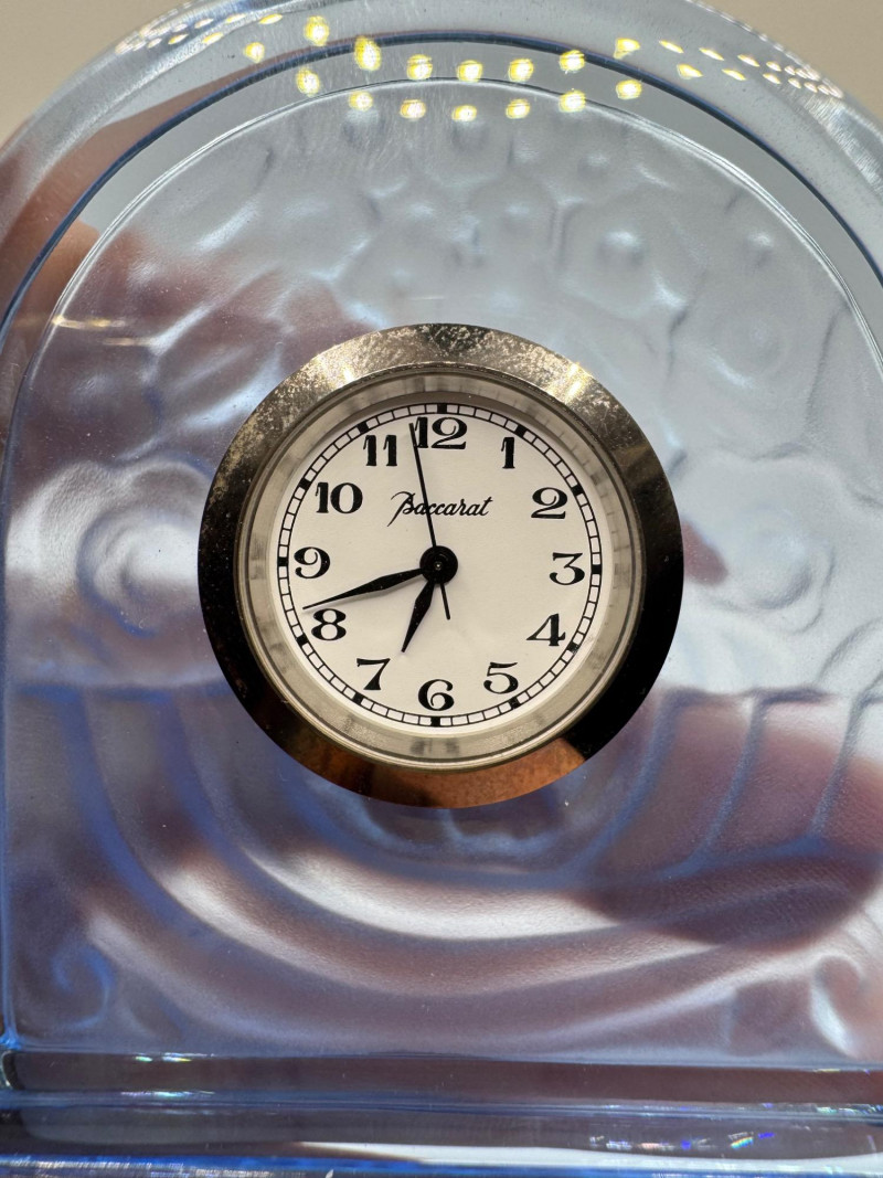 Lot # 10 - Baccarat France Blue Crystal Rock Desk Clock - Signed