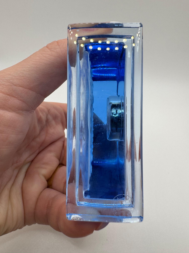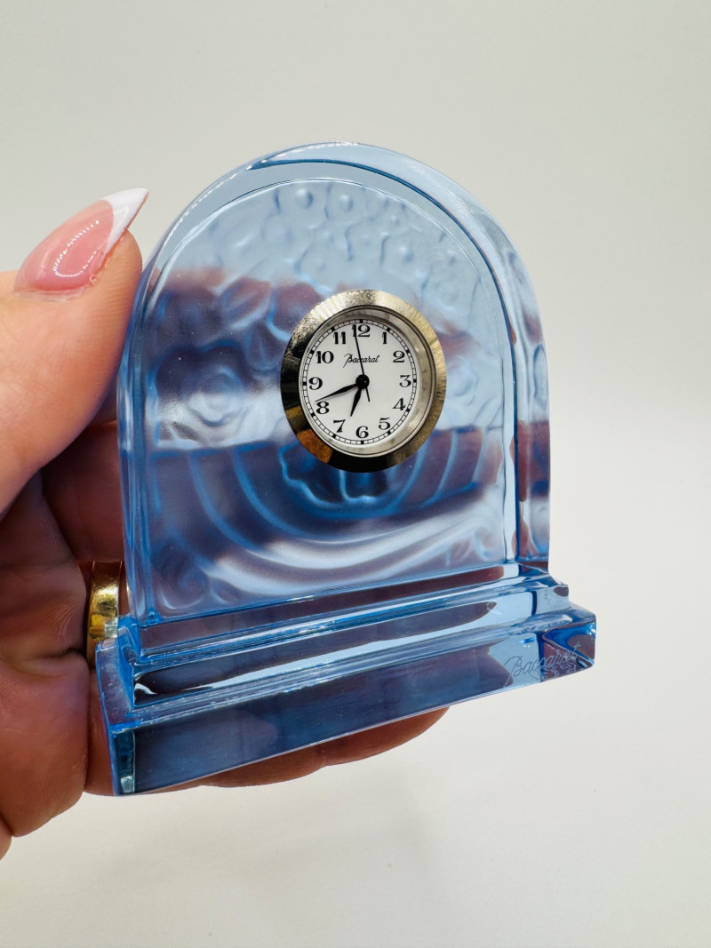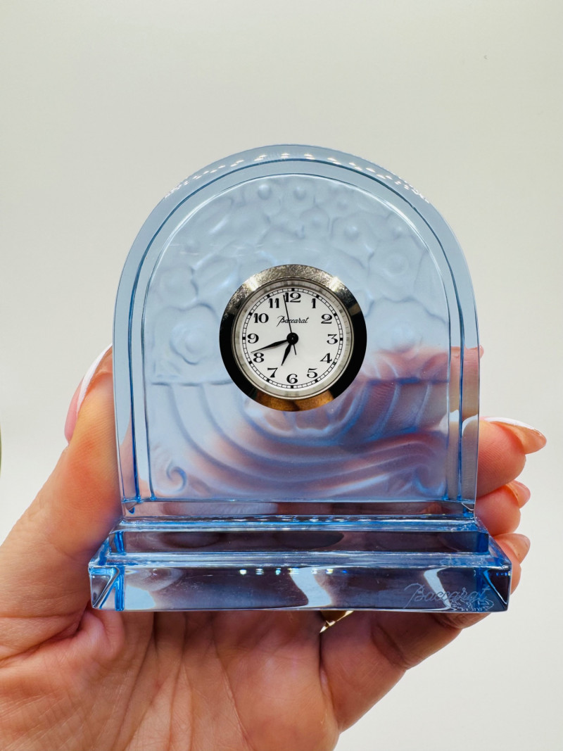 Baccarat France Blue Crystal Rock Desk Clock - Signed.