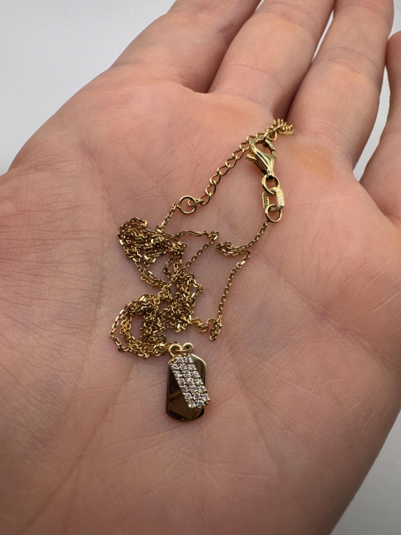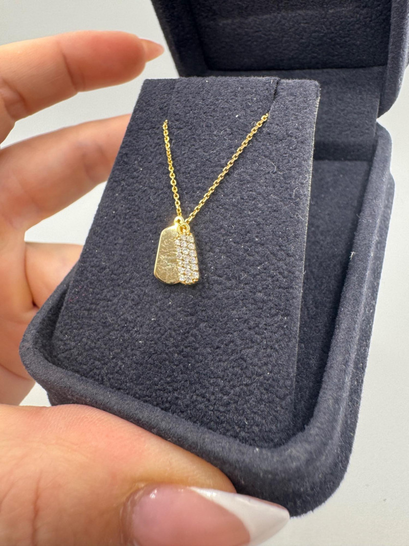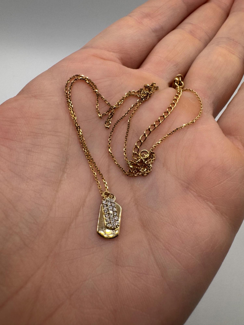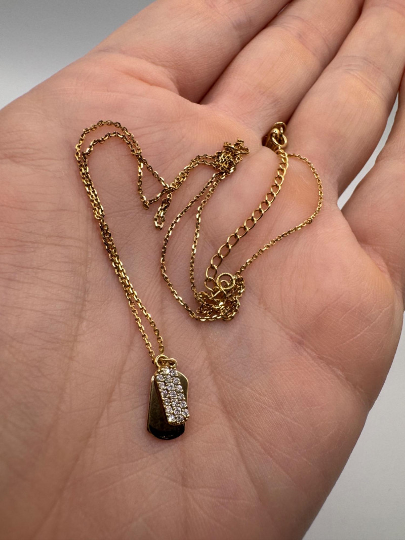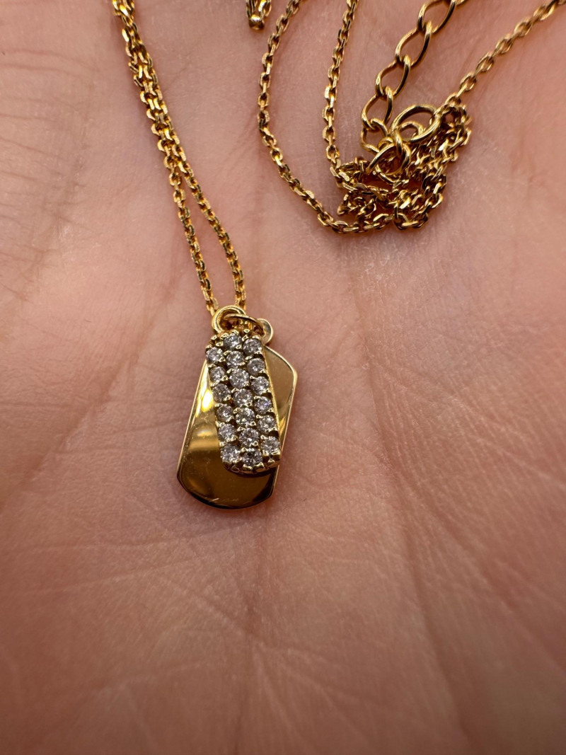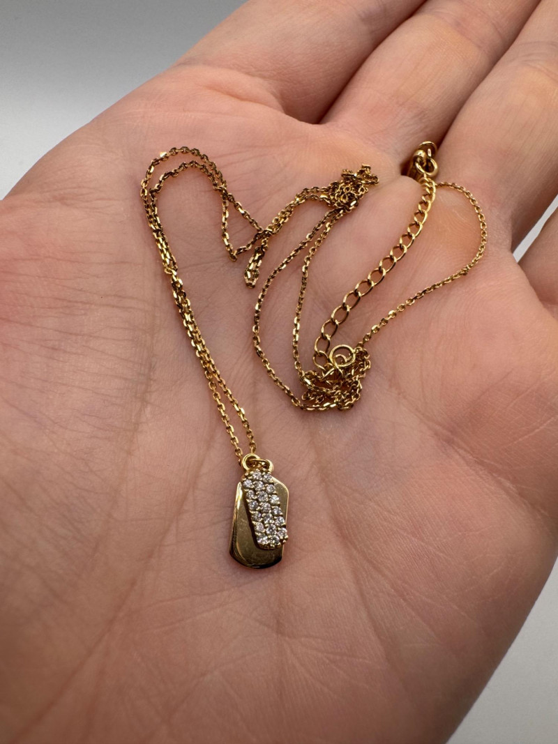 Lot # 16 - 14K Gold Fabri Diamond Dog Tag Pendant Necklace - Turkey 2.24g
