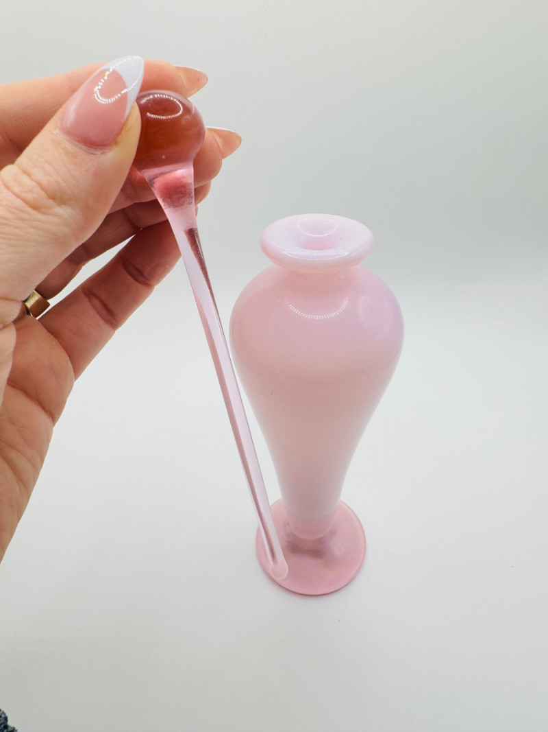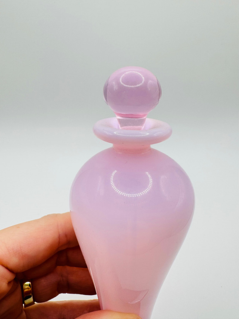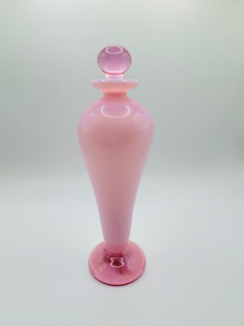 Ron Lukian Signed Pink Art Glass Perfume Bottle w/ Stopper.