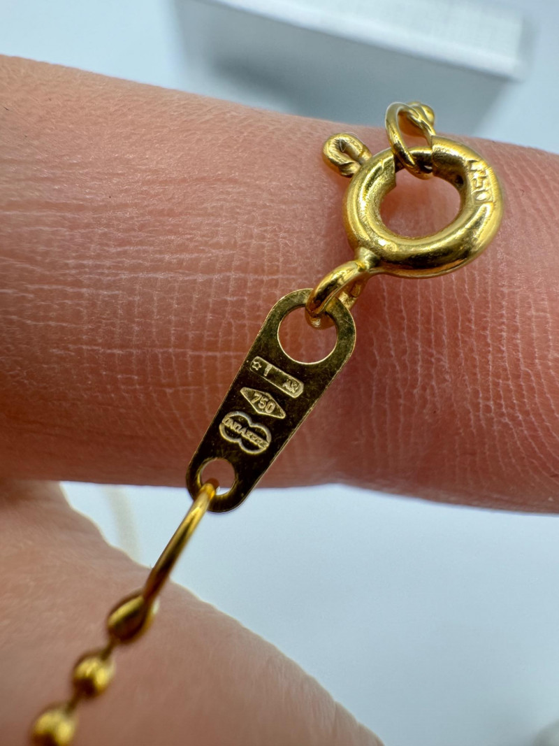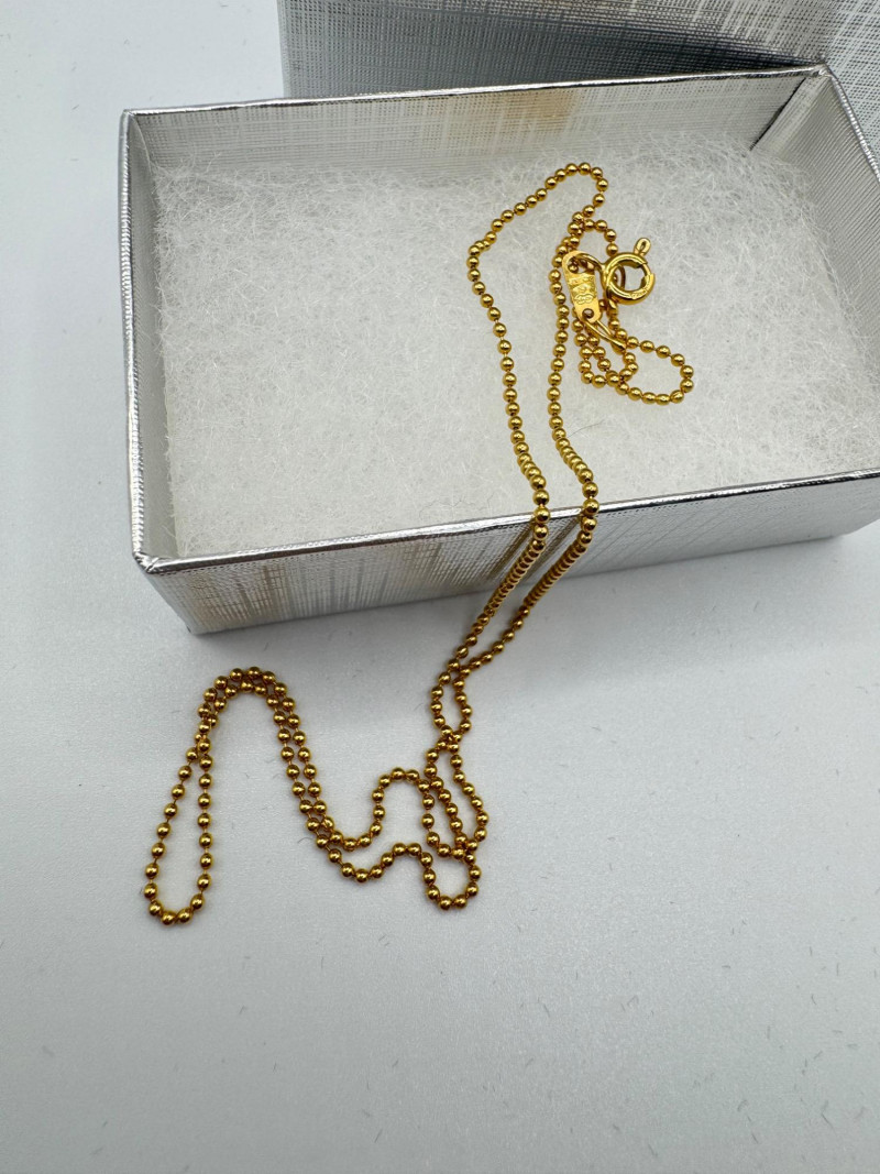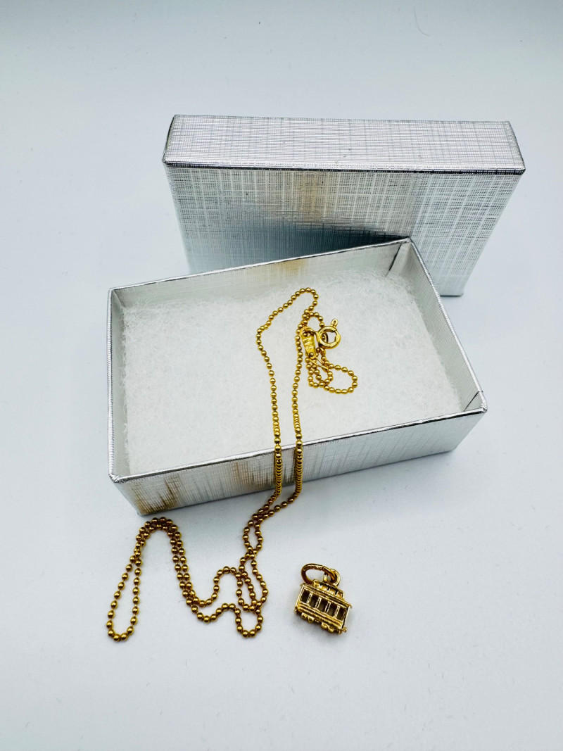 18K Gold Ball Chain Necklace w/ 14K Cable Car Charm – Total 3.88g. Disclaimer: The jewelry in this auction lot has not been tested. By placing a bid, you agree to purchase the item as is, with no guarantees regarding metal quality, content, or purity. Refunds will not be issued on these factors.