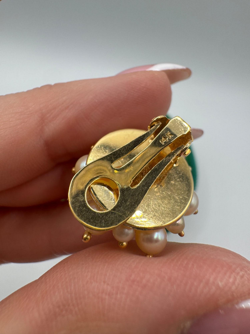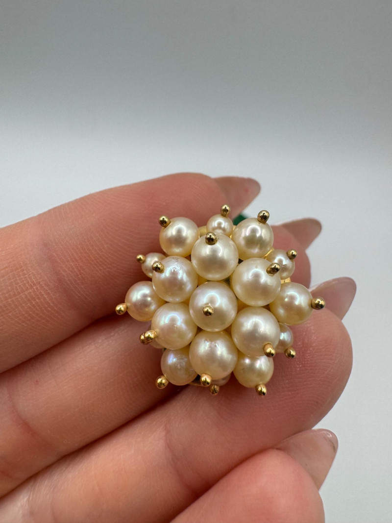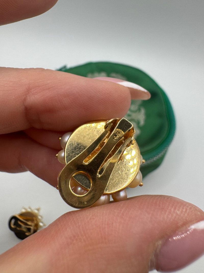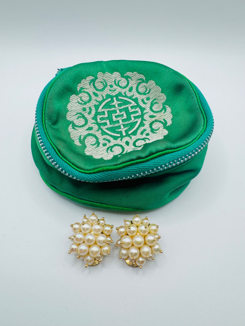 Lot # 51 - Vintage 14K Gold Cluster Pearl Clip-On Earrings w/ Green Pouch