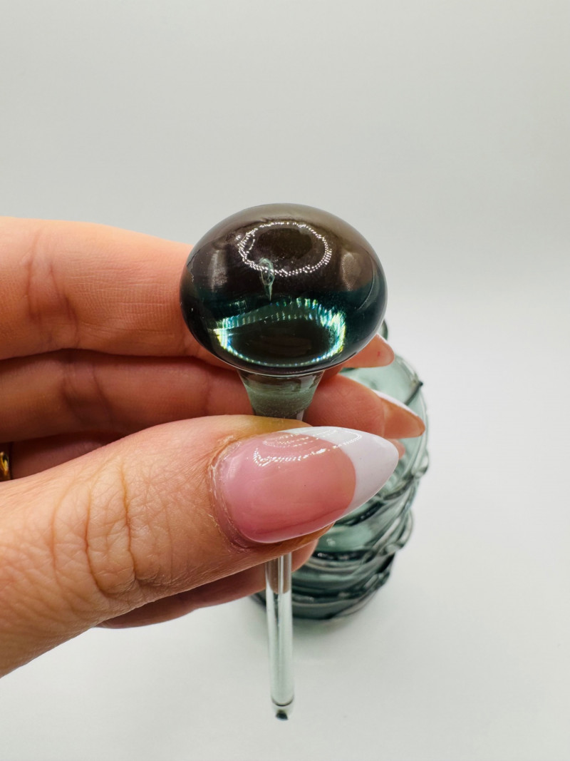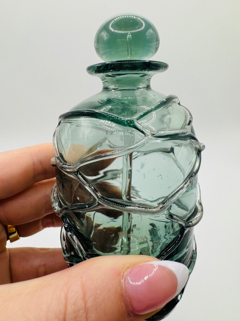 Signed Art Glass Perfume Bottle Green Thread Wrap Design.