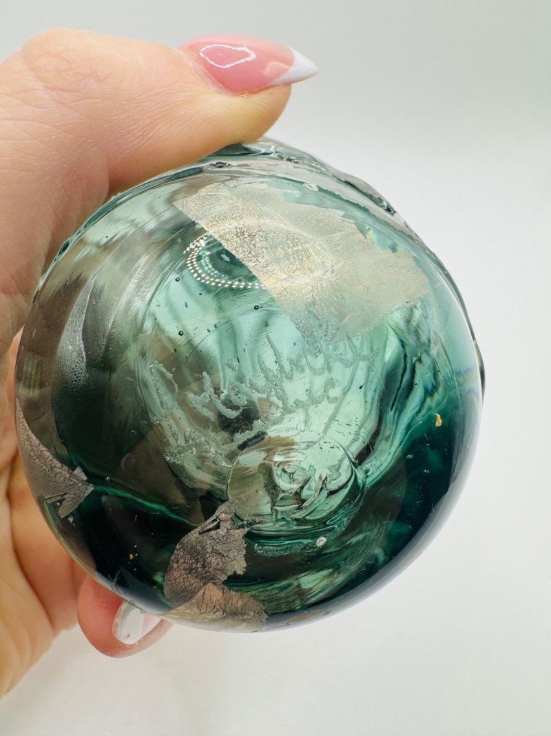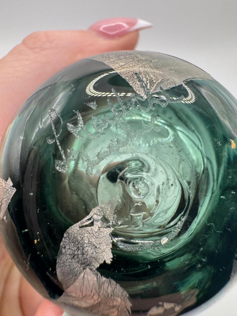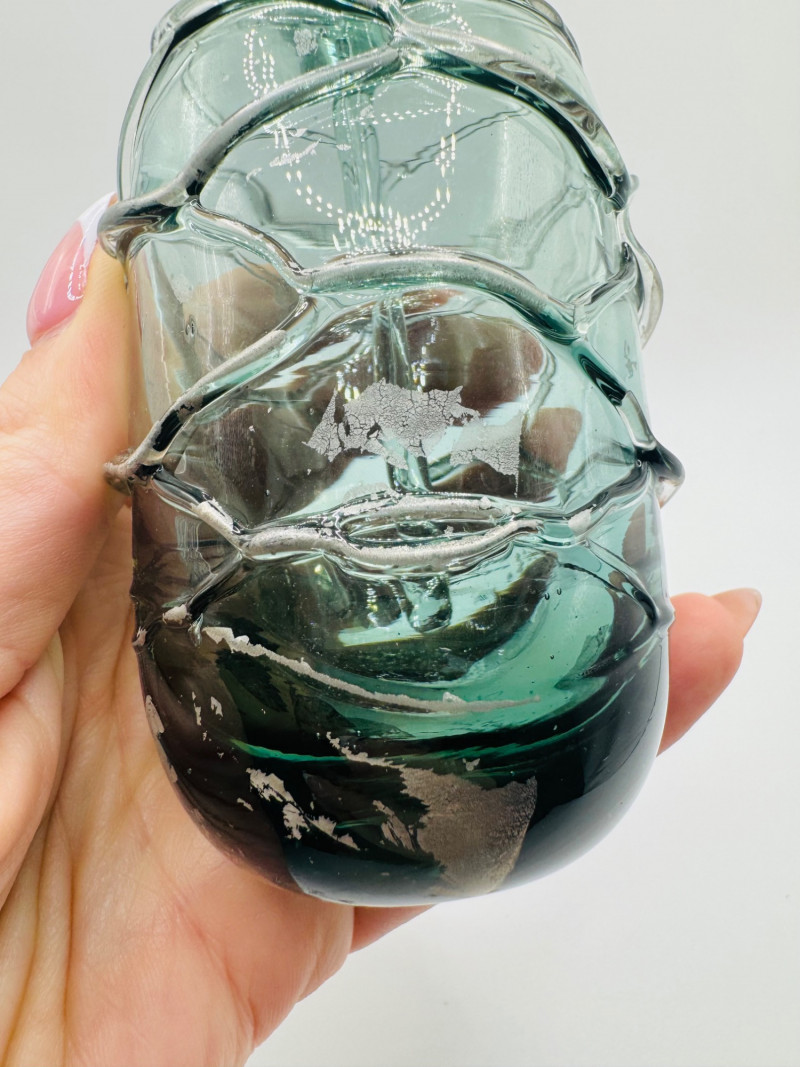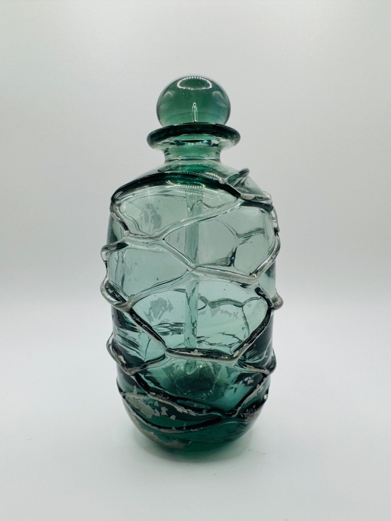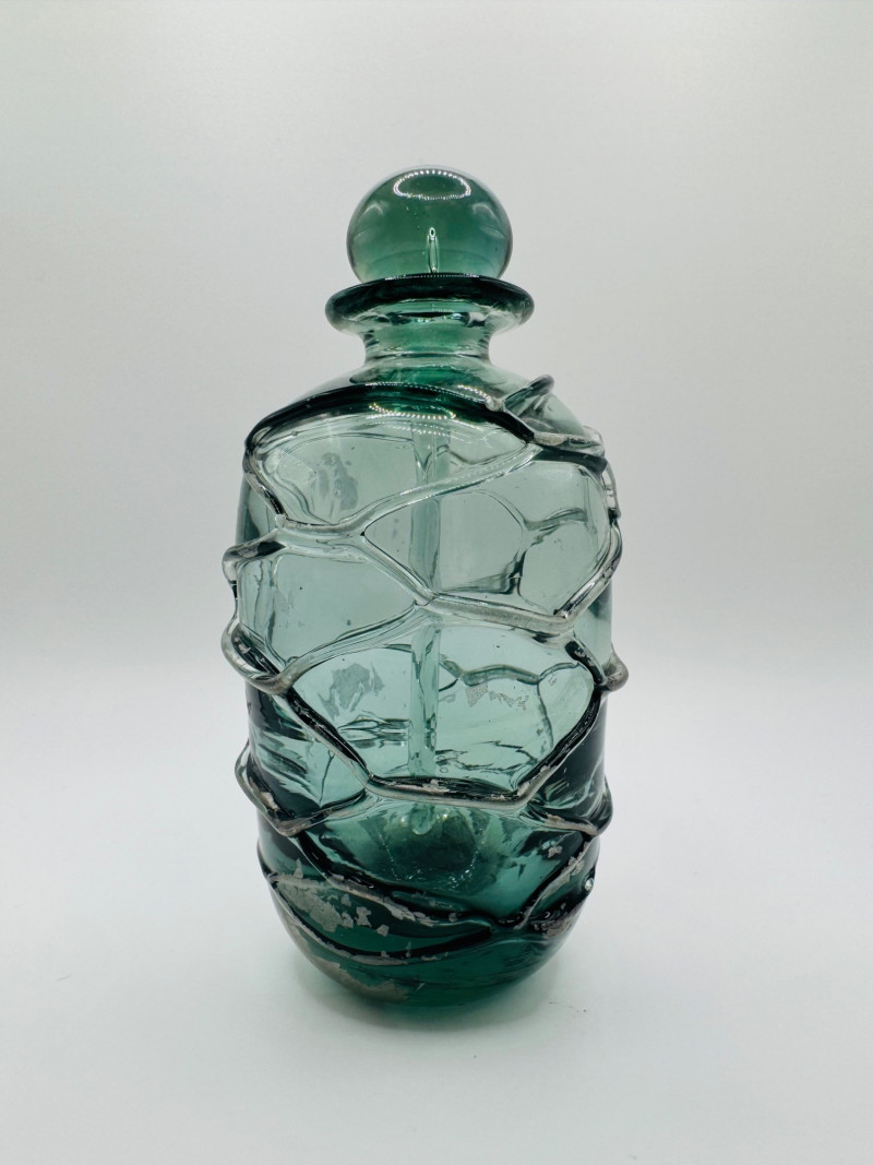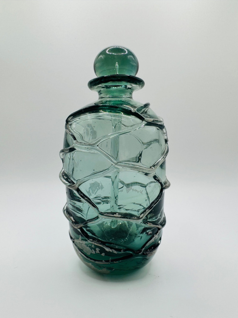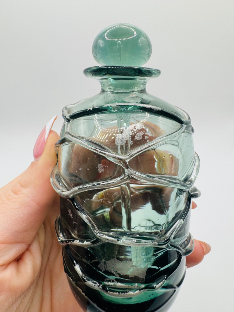 Lot # 60 - Signed Art Glass Perfume Bottle Green Thread Wrap Design