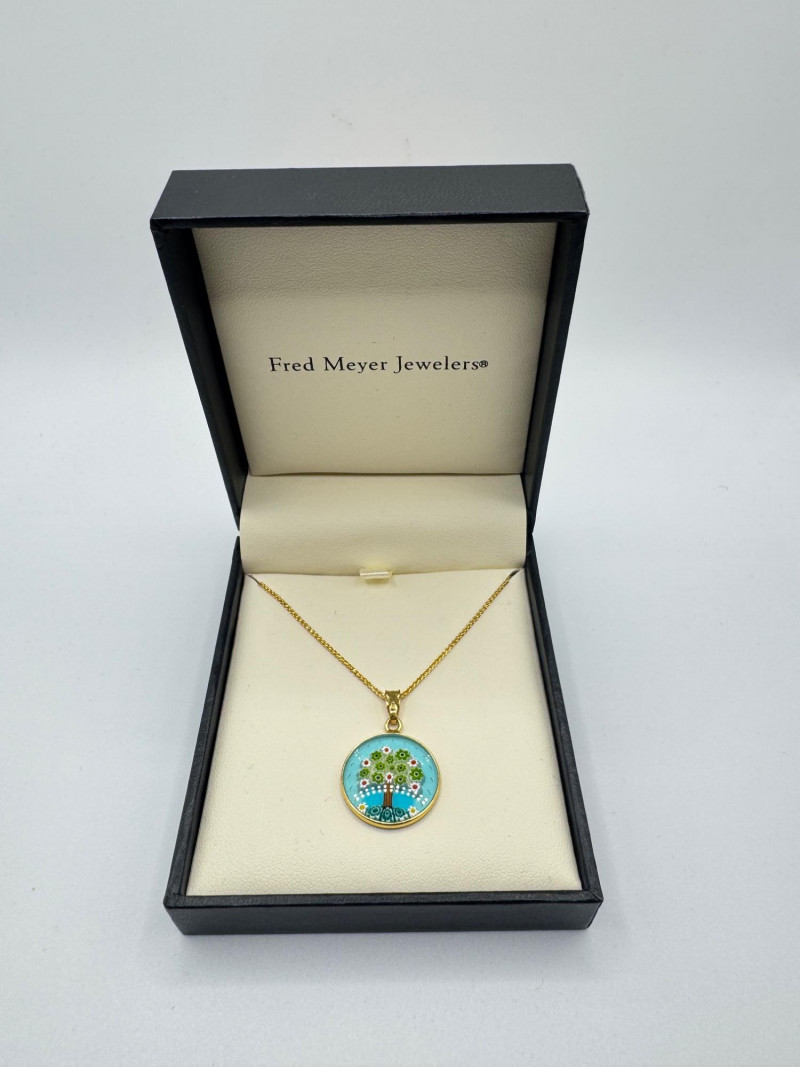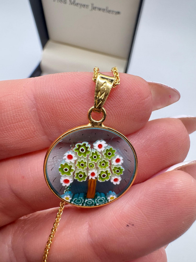 Lot # 64 - 14K Gold 18" Chain (3.5g) w/ Murano Glass Tree of Life Pendant