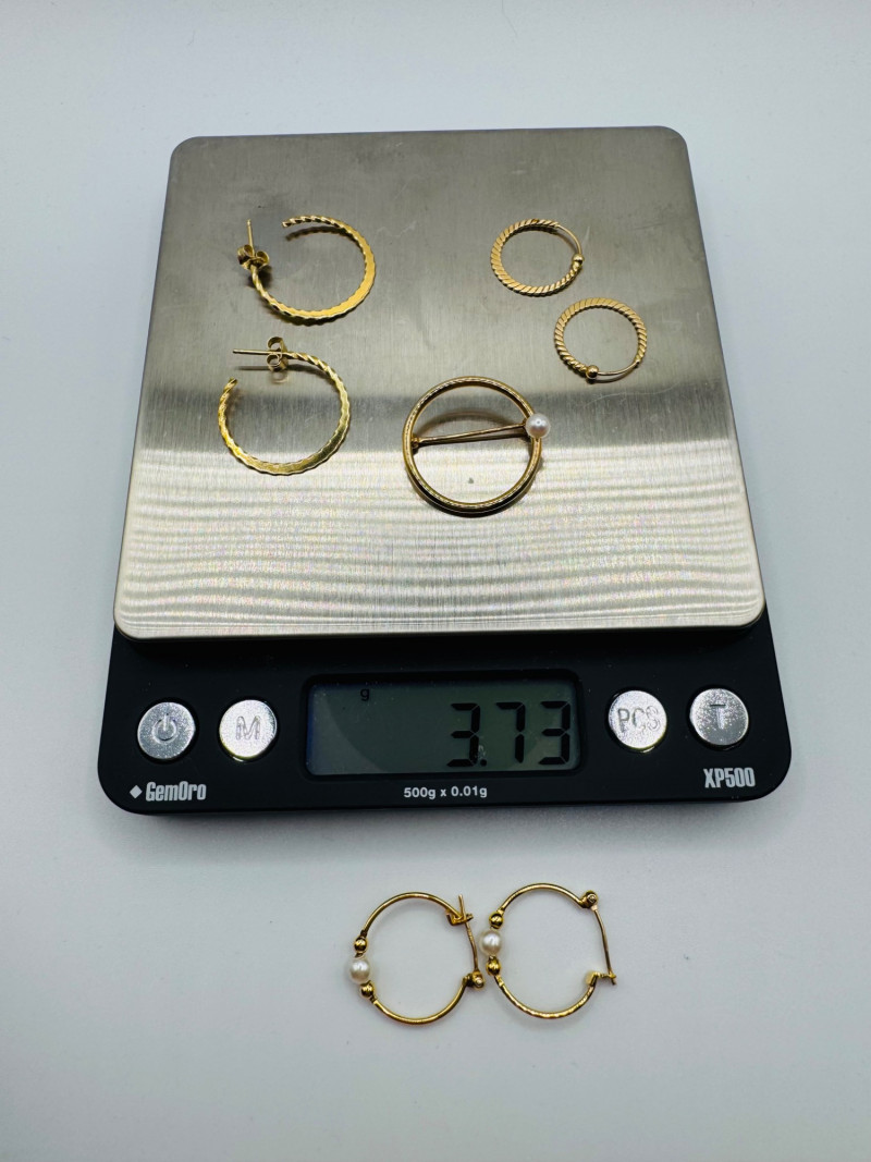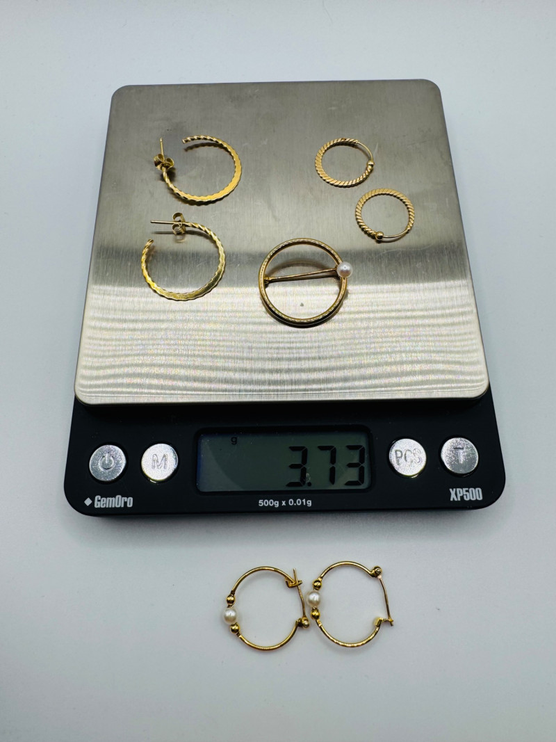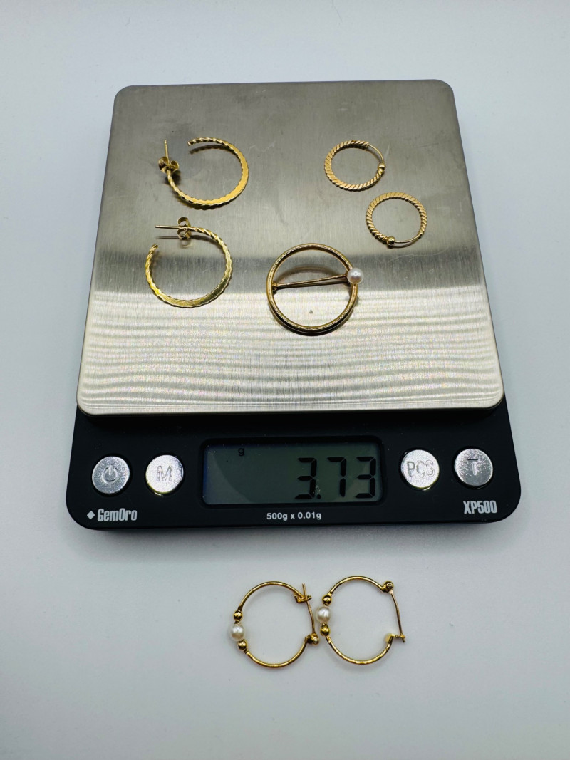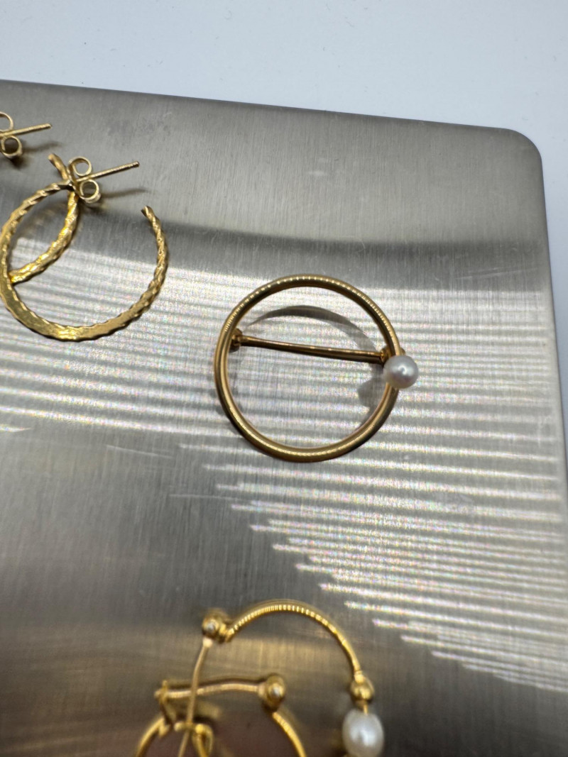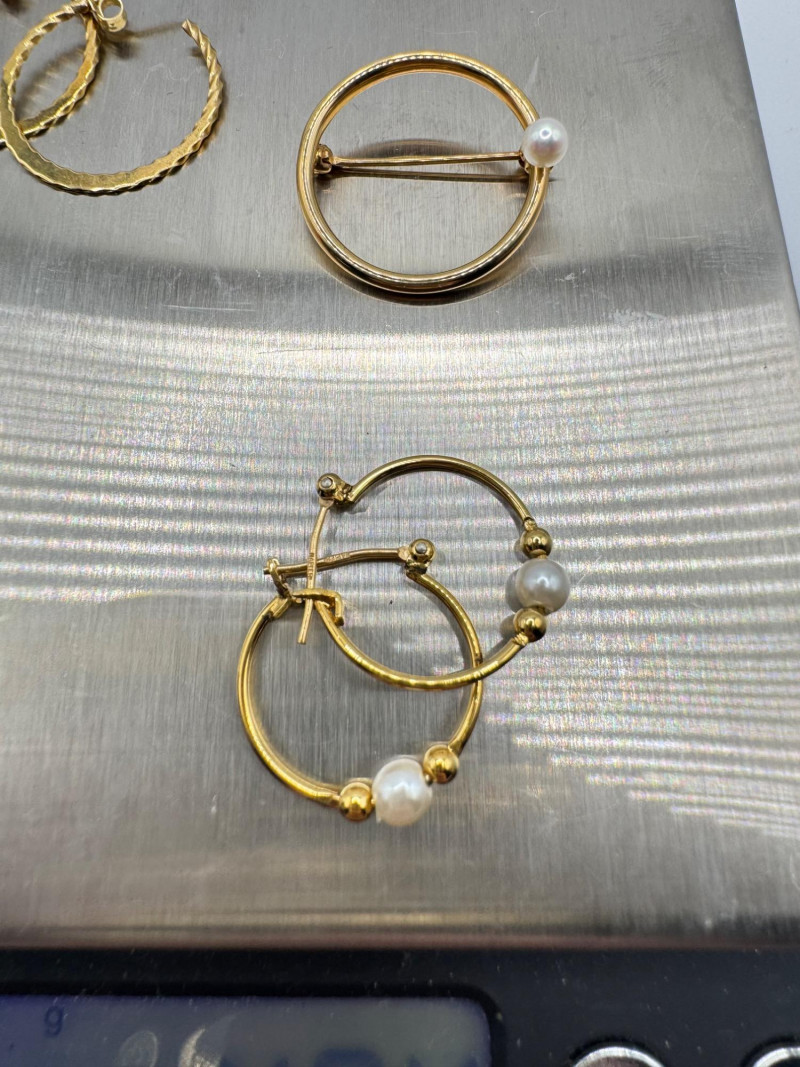 3.73g 14k Gold Hoops & Pin + Napier Costume Hoops. Disclaimer: The jewelry in this auction lot has not been tested. By placing a bid, you agree to purchase the item as is, with no guarantees regarding metal quality, content, or purity. Refunds will not be issued on these factors.