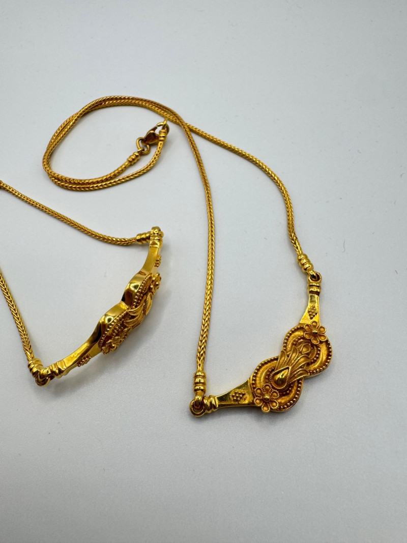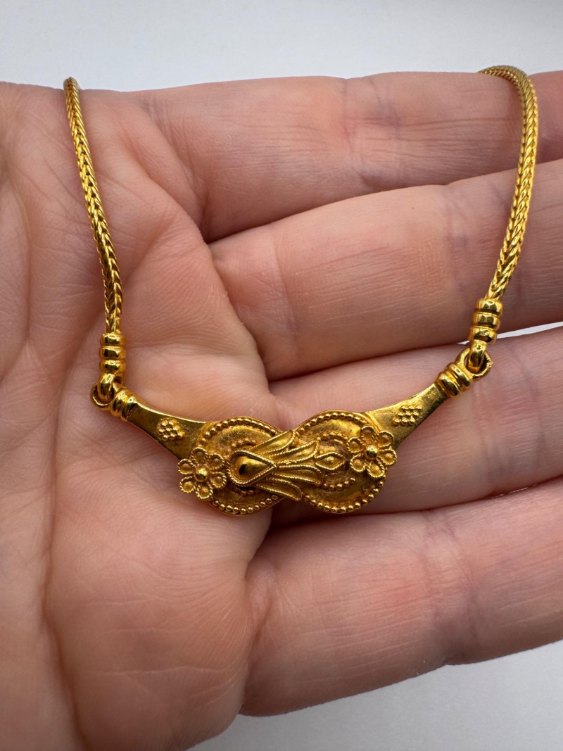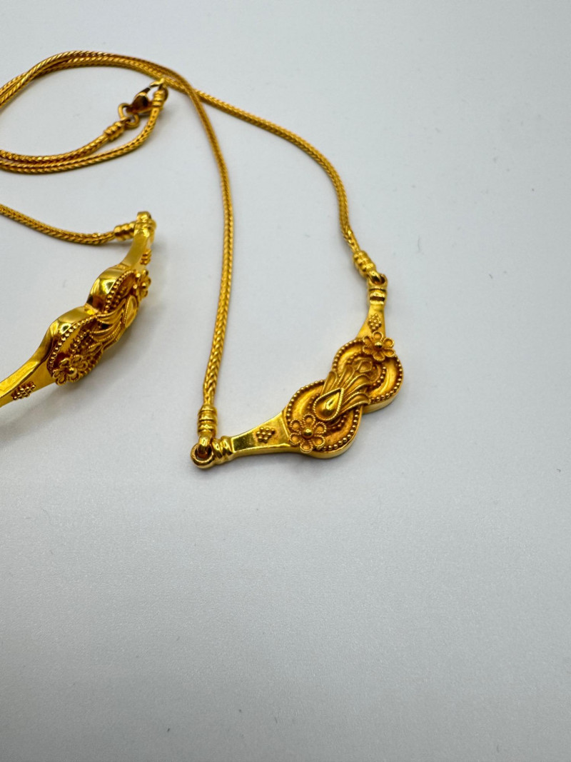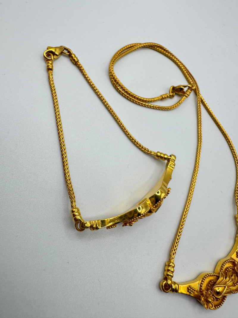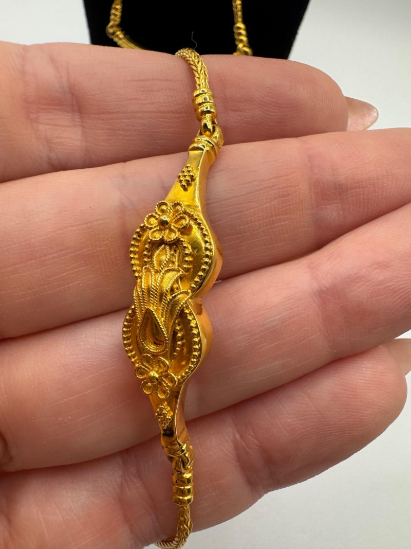 20k Gold Saudi Necklace, Bracelet & Earrings Set 34.71g. Disclaimer: By placing a bid, you agree to purchase the item as is, with no guarantees regarding metal quality, content, or purity. Refunds will not be issued on these factors.