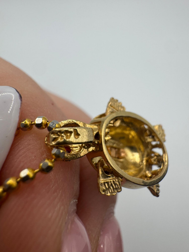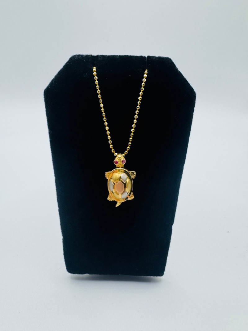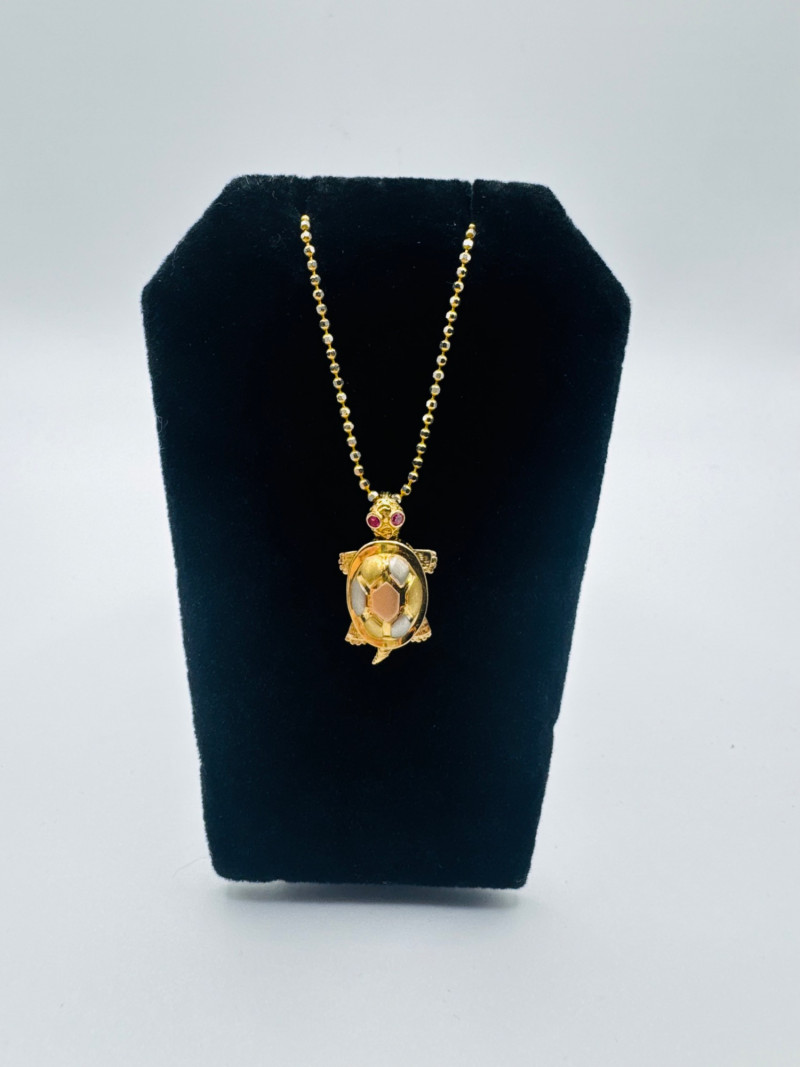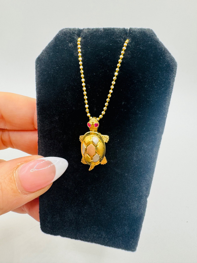 14K Gold Turtle Pendant w/ Moving Head + 15" Ball Chain, 6.3g. Disclaimer: The jewelry in this auction lot has not been tested. By placing a bid, you agree to purchase the item as is, with no guarantees regarding metal quality, content, or purity. Refunds will not be issued on these factors.