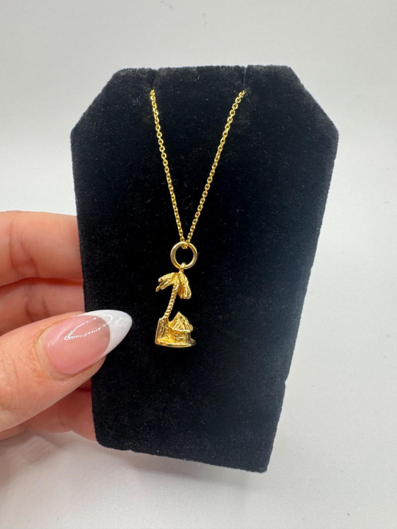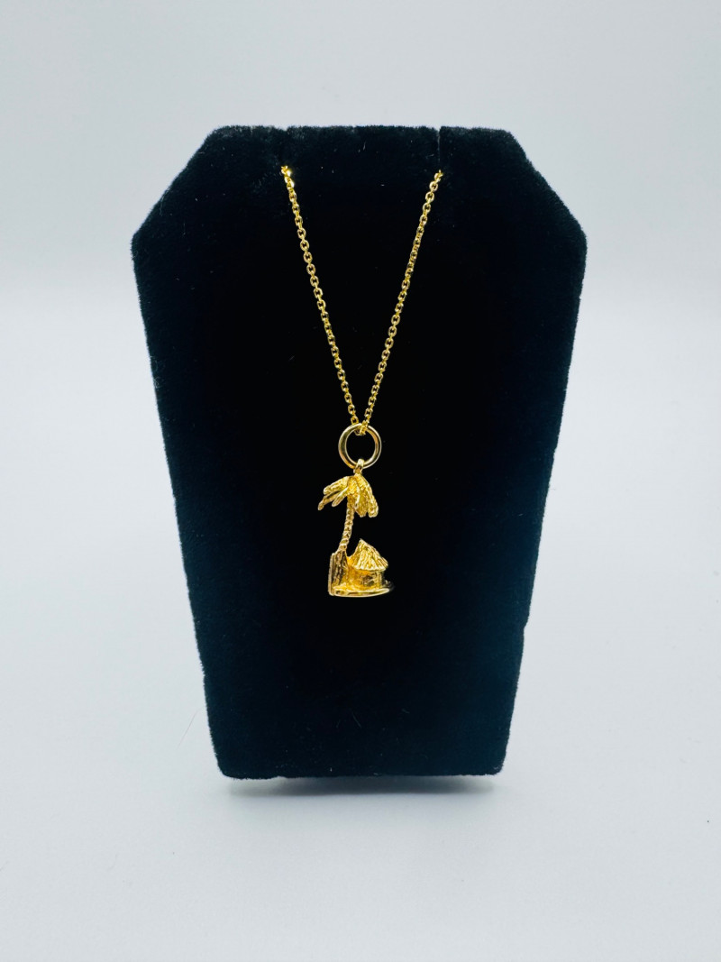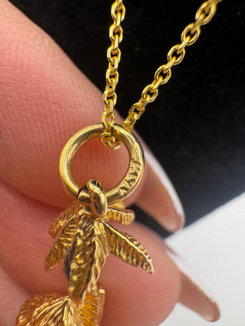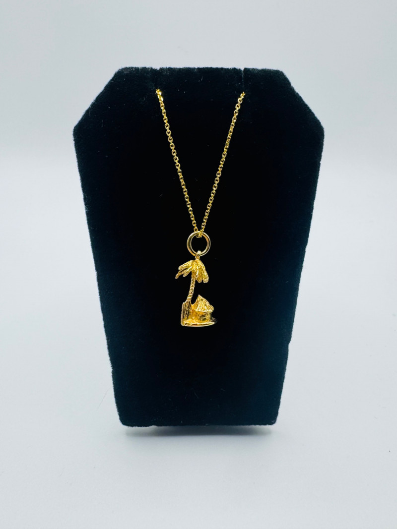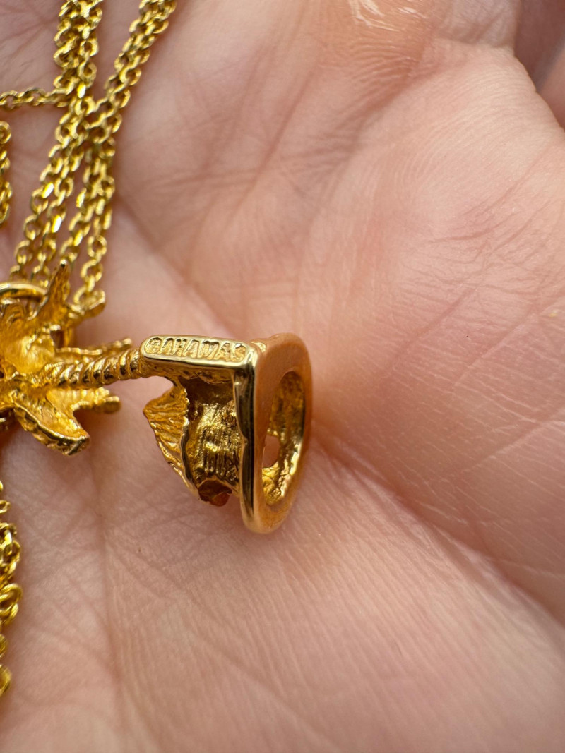 14K Gold Bahamas Papaya Tree Pendant on 17" Chain – 4.0g. Disclaimer: The jewelry in this auction lot has not been tested. By placing a bid, you agree to purchase the item as is, with no guarantees regarding metal quality, content, or purity. Refunds will not be issued on these factors.