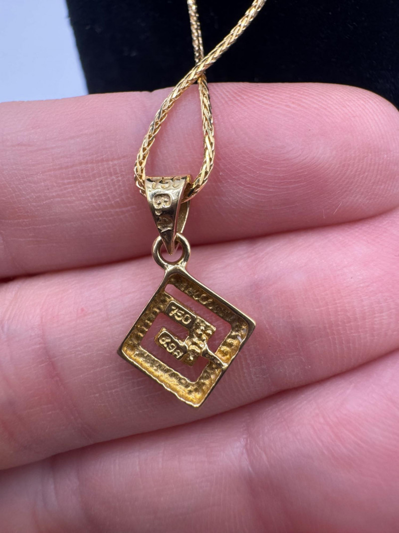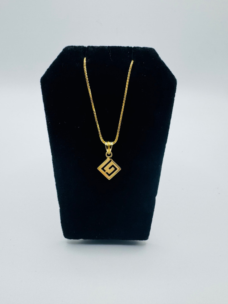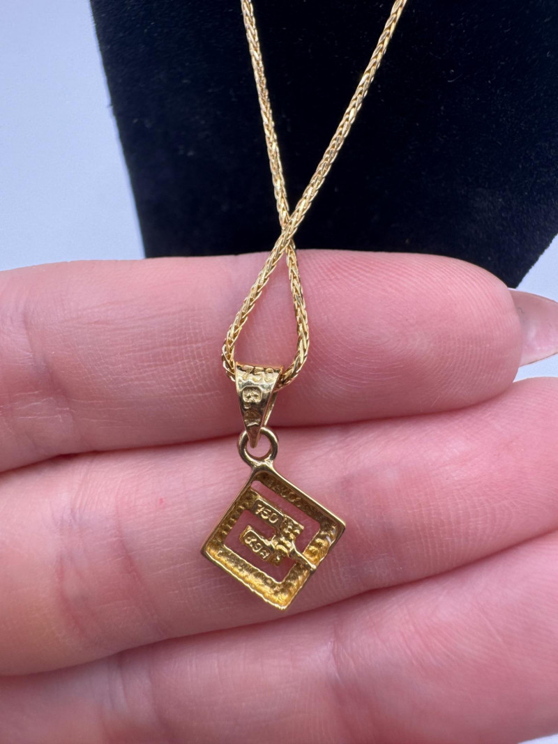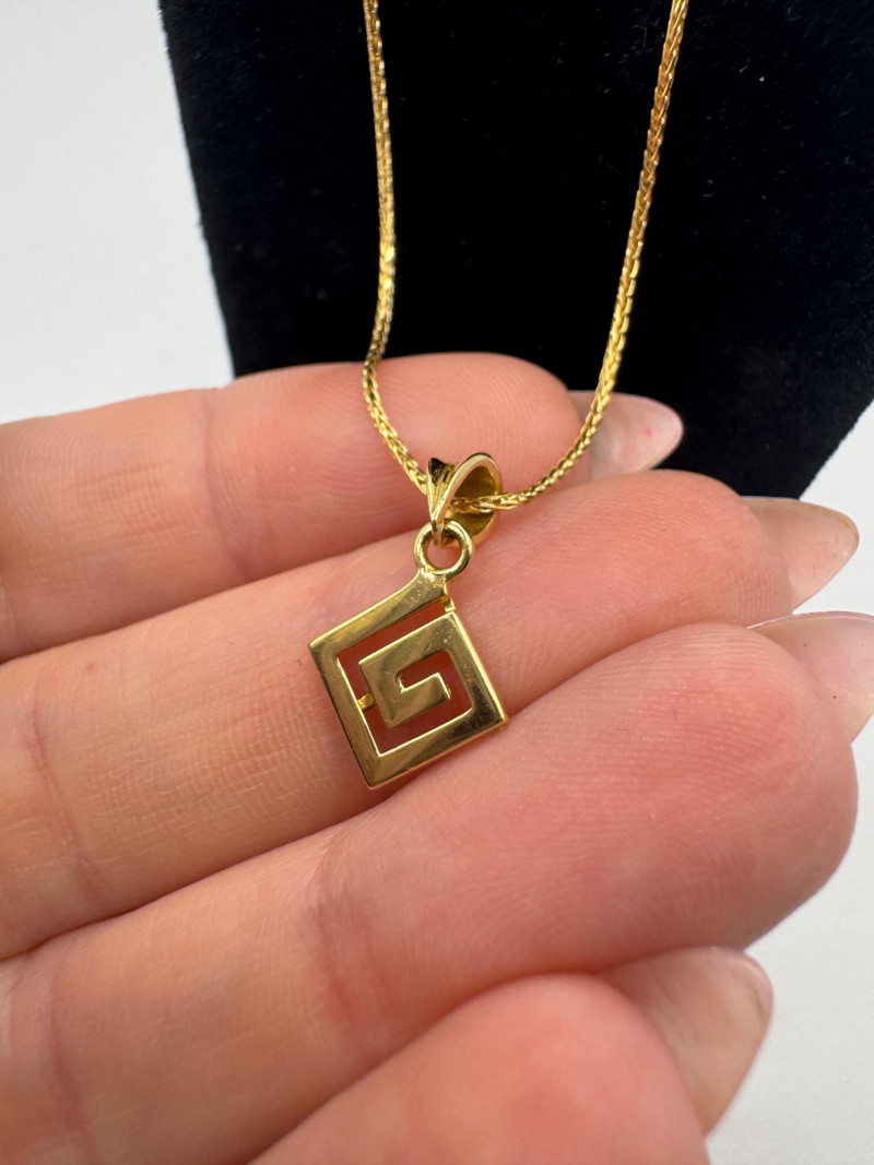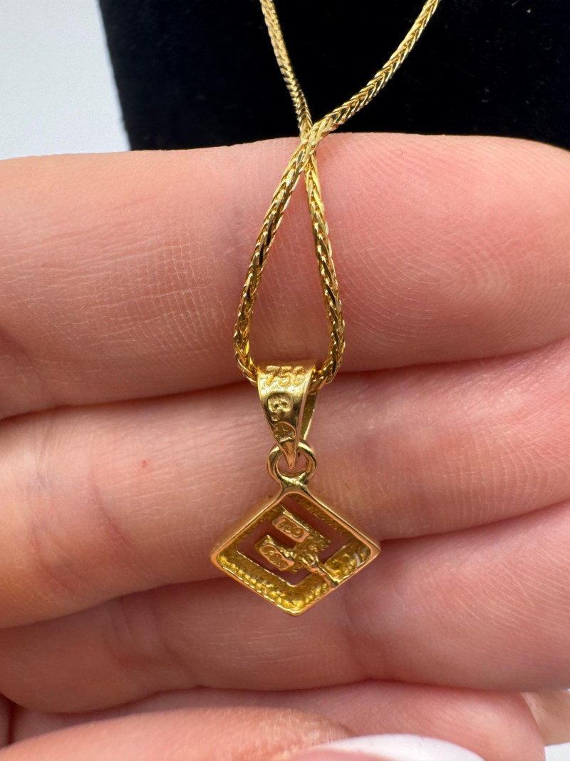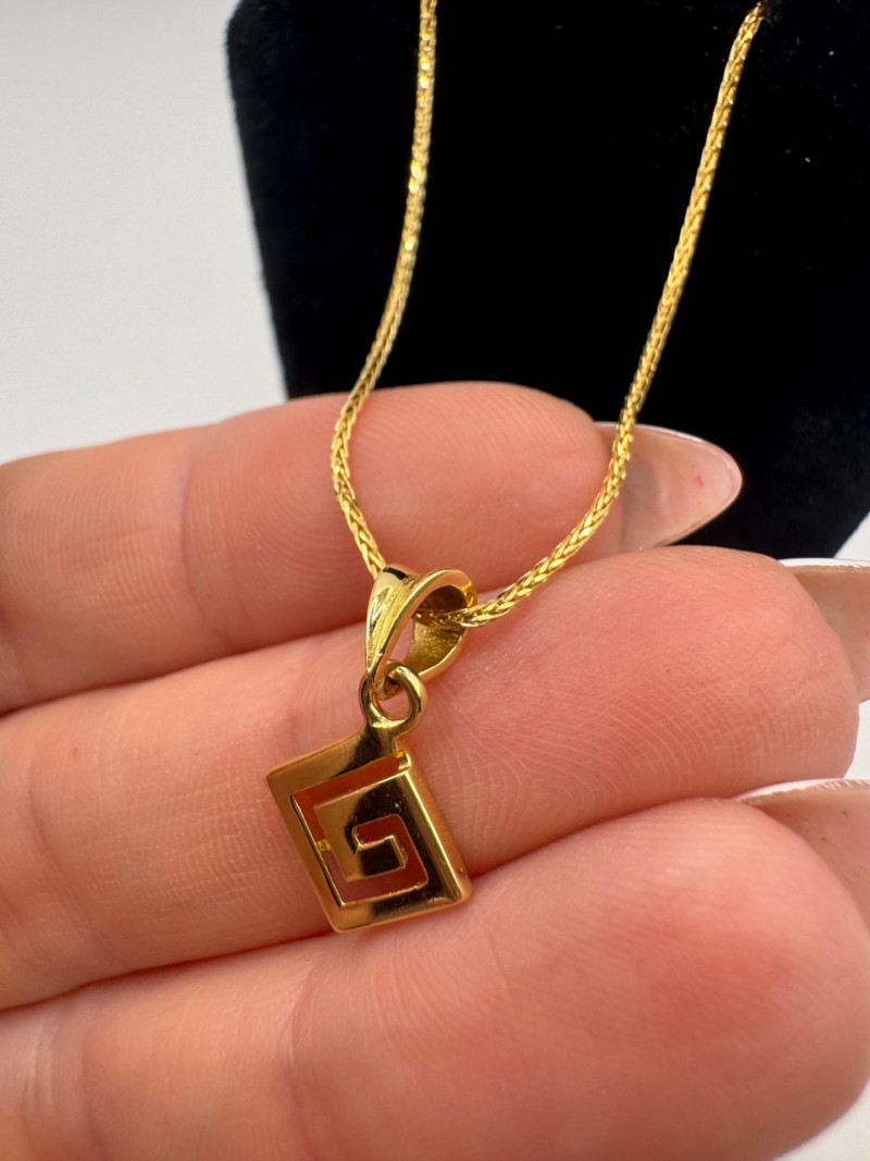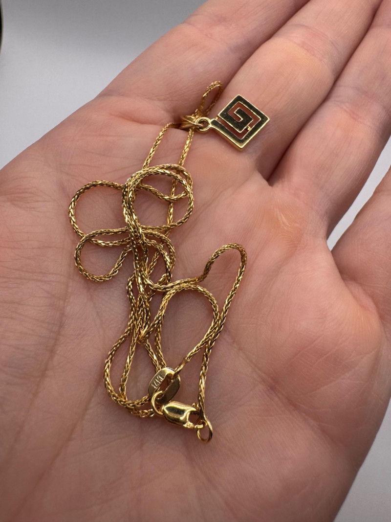 18K Greek Pendant on 14K Sparkly Wheat Chain – 18", 3.30g. Disclaimer: The jewelry in this auction lot has not been tested. By placing a bid, you agree to purchase the item as is, with no guarantees regarding metal quality, content, or purity. Refunds will not be issued on these factors.
