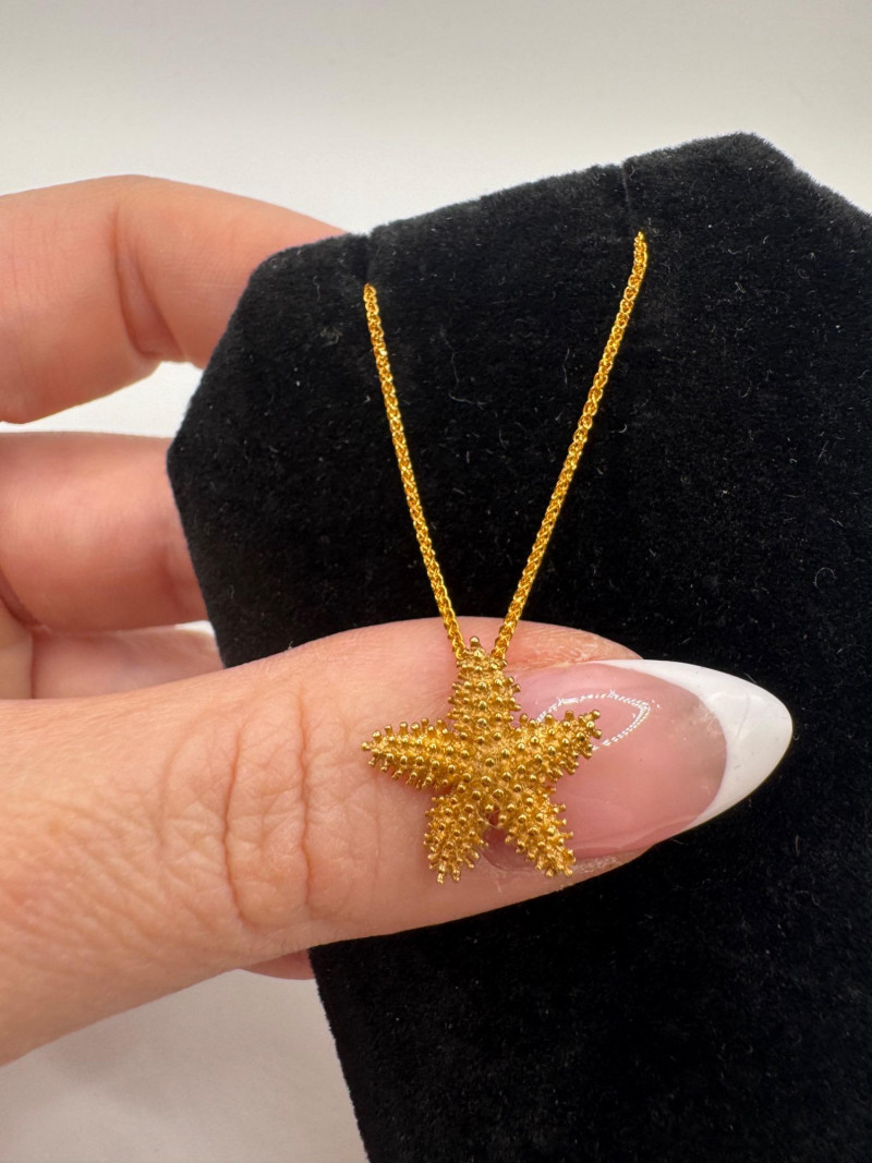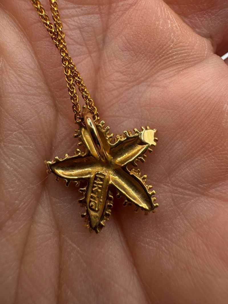 Lot # 105 - 14K Gold Starfish Pendant Necklace – 18” Wheat Chain, 3.57g