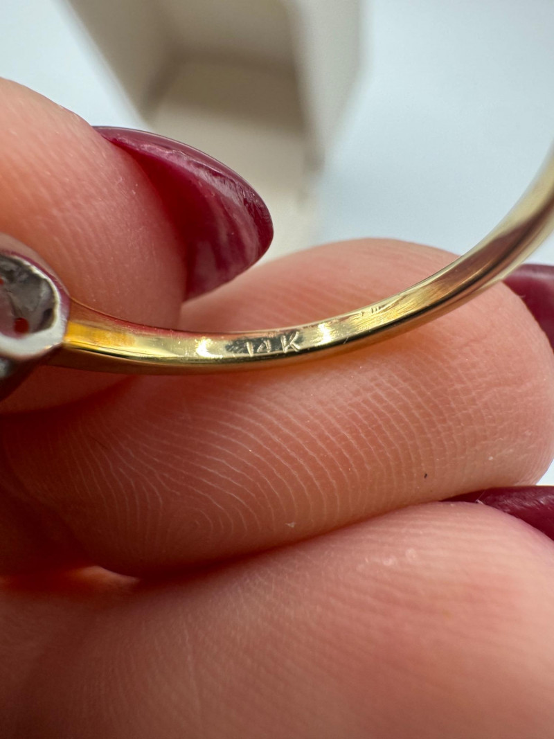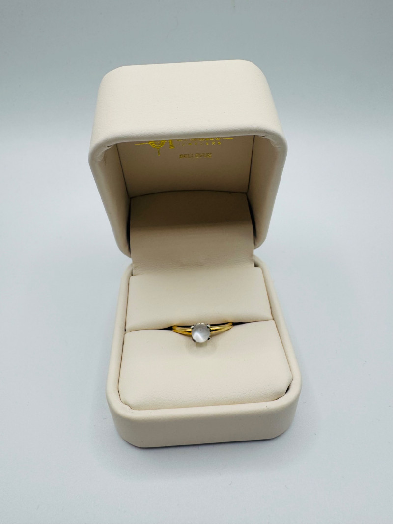 14K Gold Moonstone Ring – Size 5, 1.6g. Disclaimer: The jewelry in this auction lot has not been tested. By placing a bid, you agree to purchase the item as is, with no guarantees regarding metal quality, content, or purity. Refunds will not be issued on these factors.