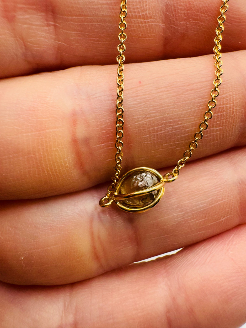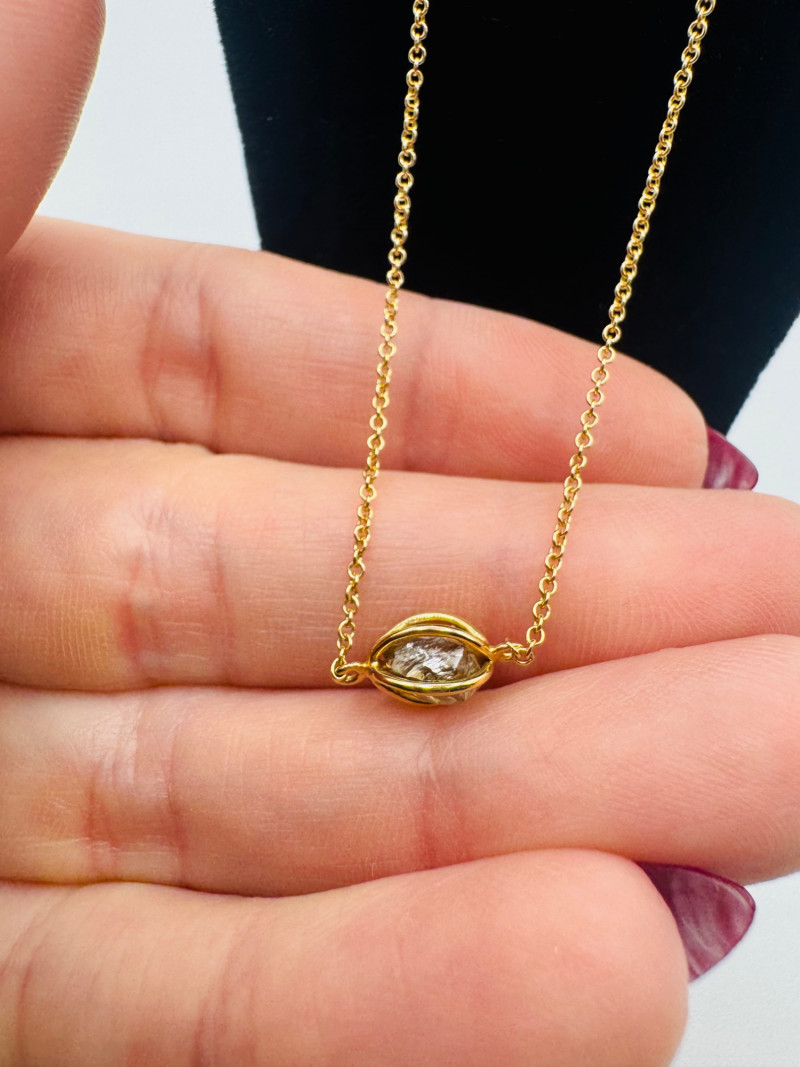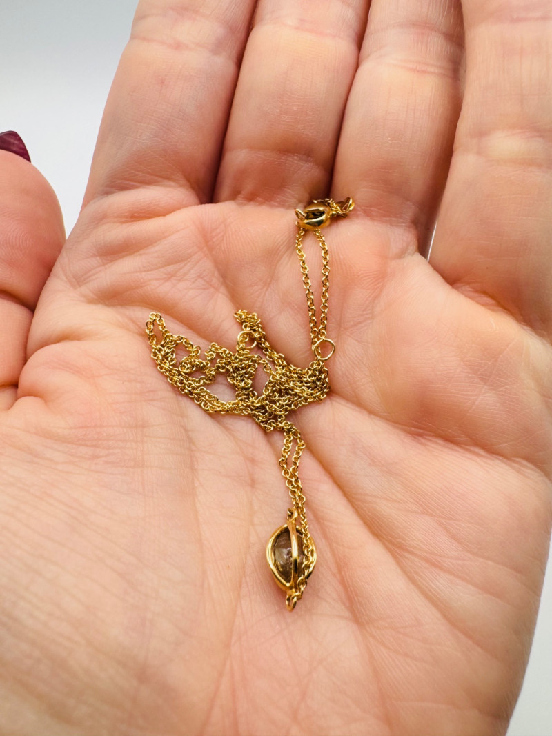 14K Gold Chain w/ Raw Chocolate Diamond Pendant, 16–18” Adjustable. Disclaimer: The jewelry in this auction lot has not been tested. By placing a bid, you agree to purchase the item as is, with no guarantees regarding metal quality, content, or purity. Refunds will not be issued on these factors.