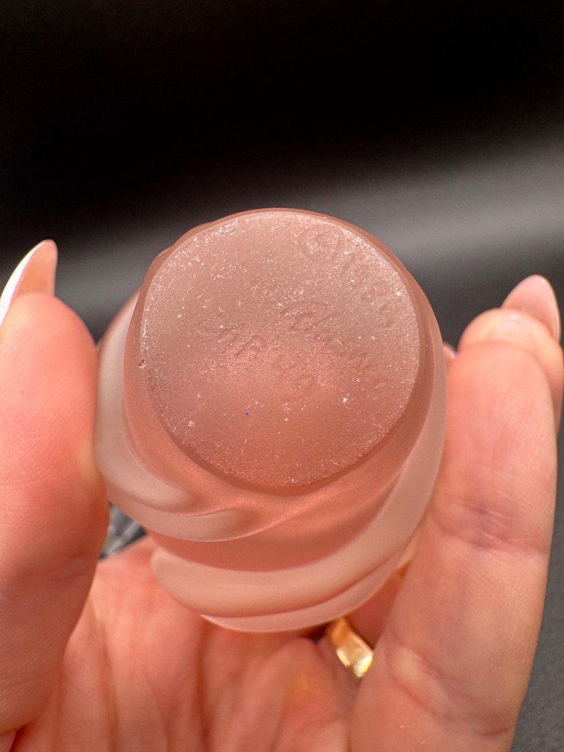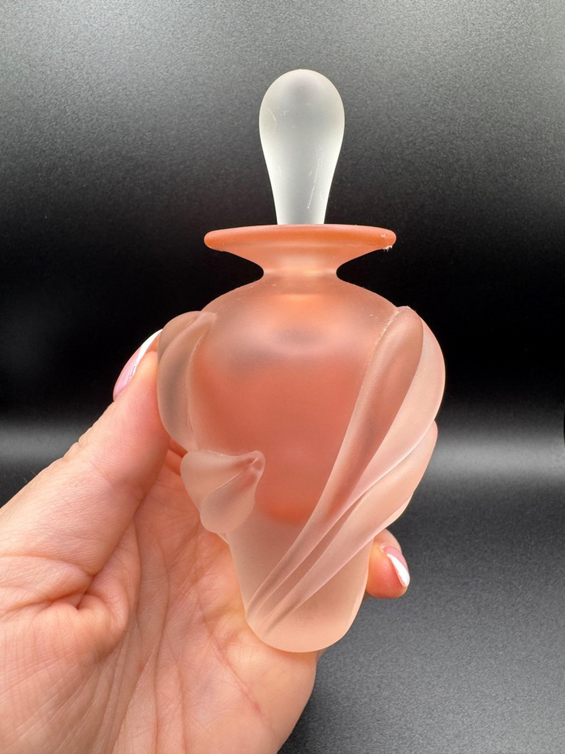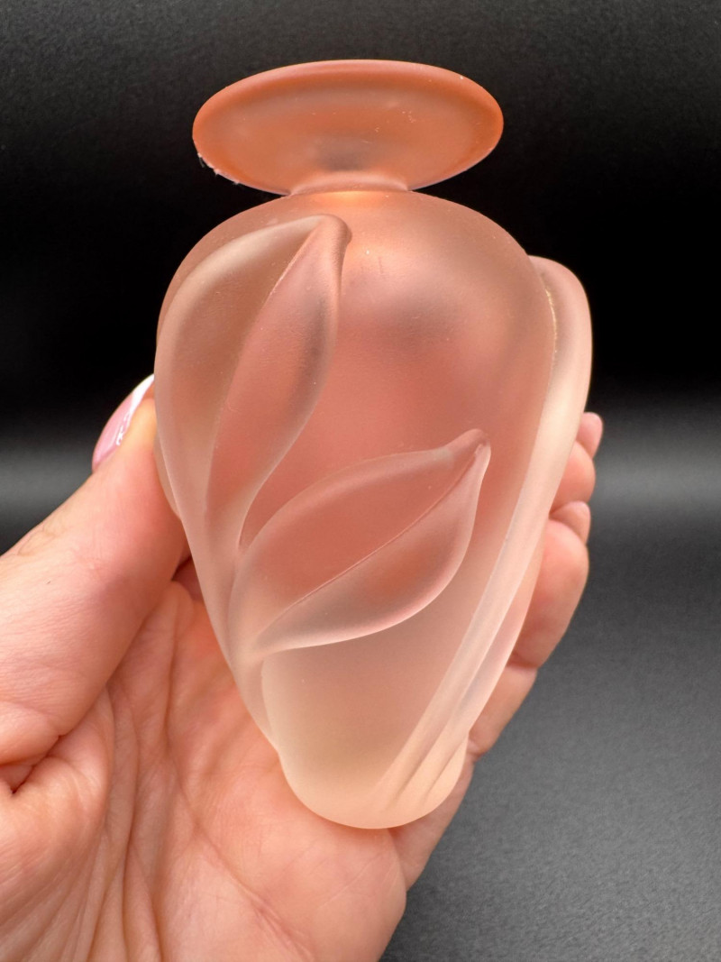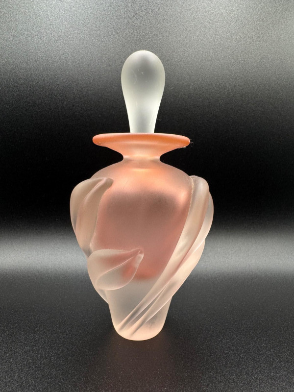 William Glasner Etched Leaf Frosted Glass Perfume Bottle 1985, Signed. Measures 5” tall