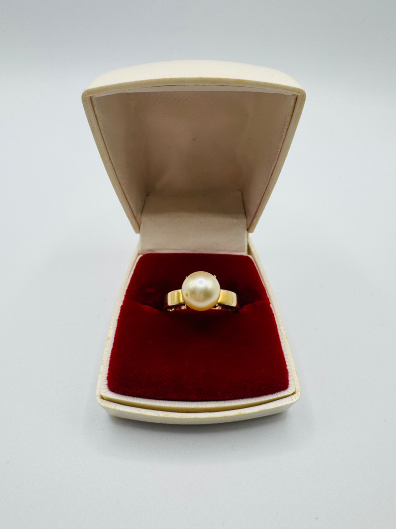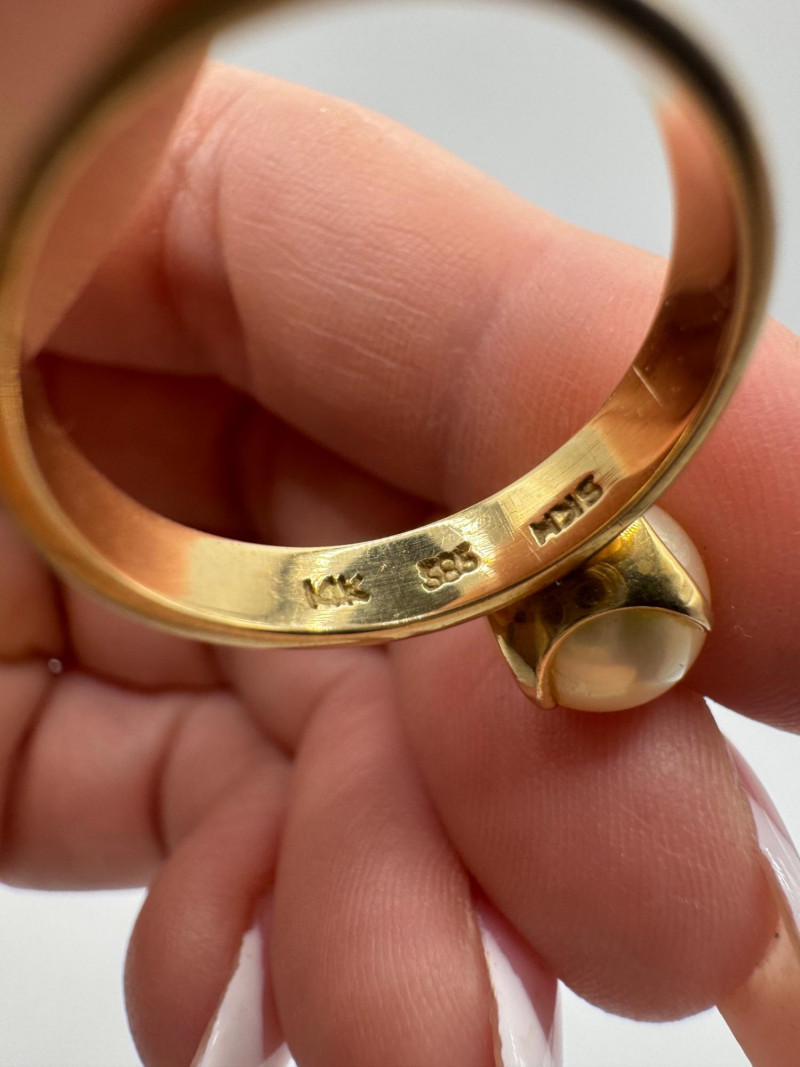 14K Gold Ring w/ Pearl Size 7.25–8 – 4.52g. Disclaimer: The jewelry in this auction lot has not been tested. By placing a bid, you agree to purchase the item as is, with no guarantees regarding metal quality, content, or purity. Refunds will not be issued on these factors.