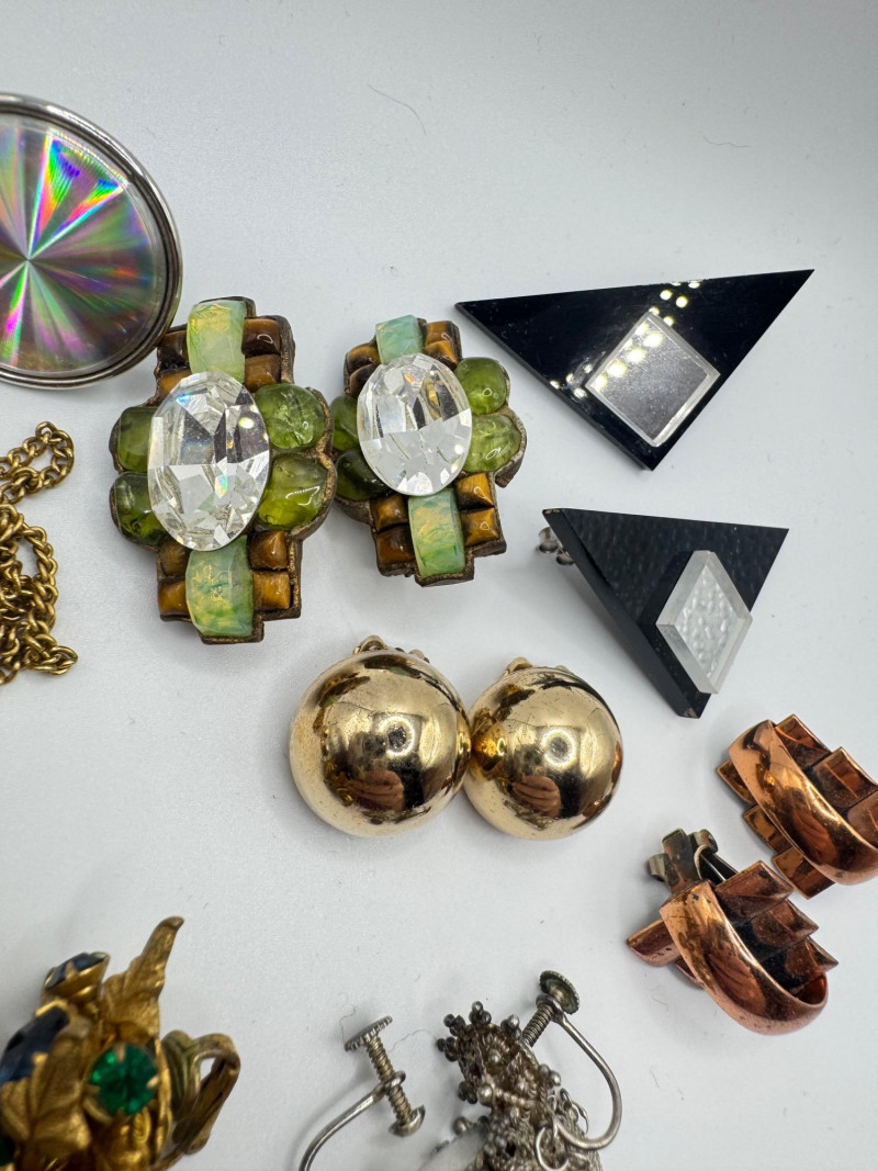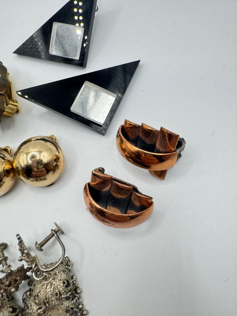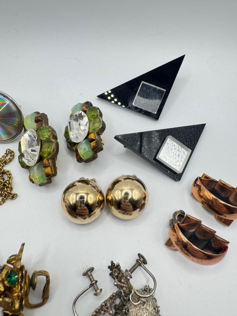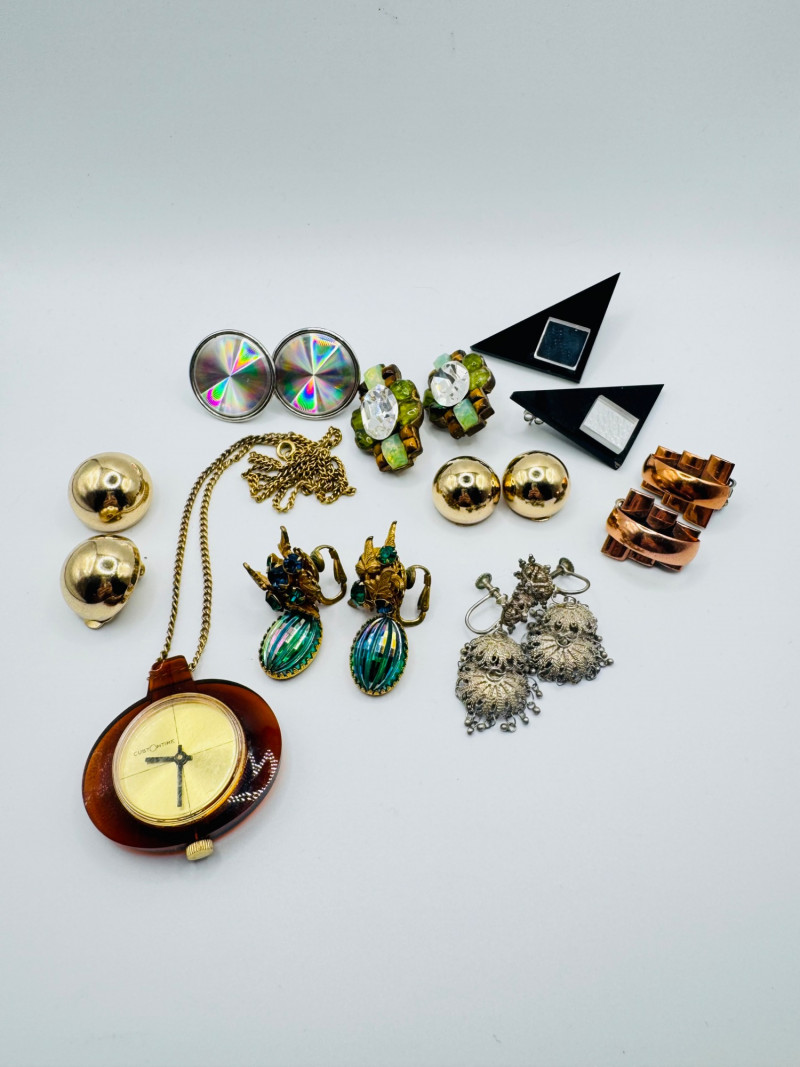 Vintage & Antique Earring Lot w/ Sterling Screw Backs + Watch. Disclaimer: The jewelry in this auction lot has not been tested. By placing a bid, you agree to purchase the item as is, with no guarantees regarding metal quality, content, or purity. Refunds will not be issued on these factors.