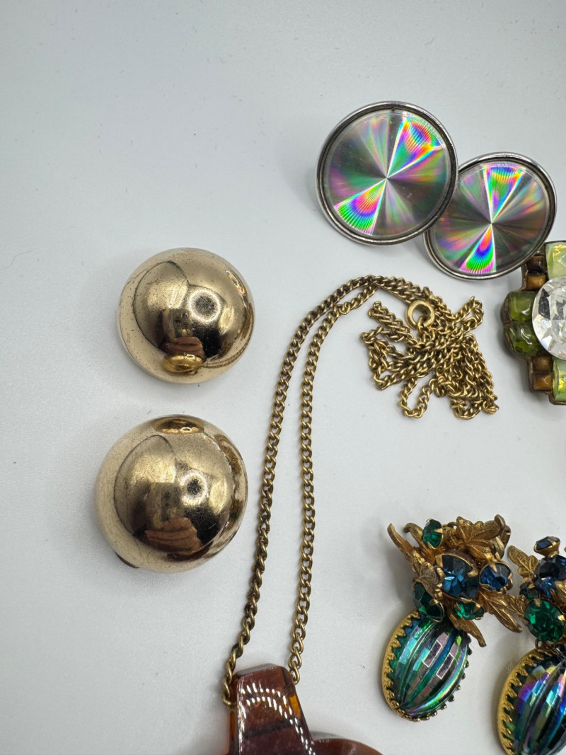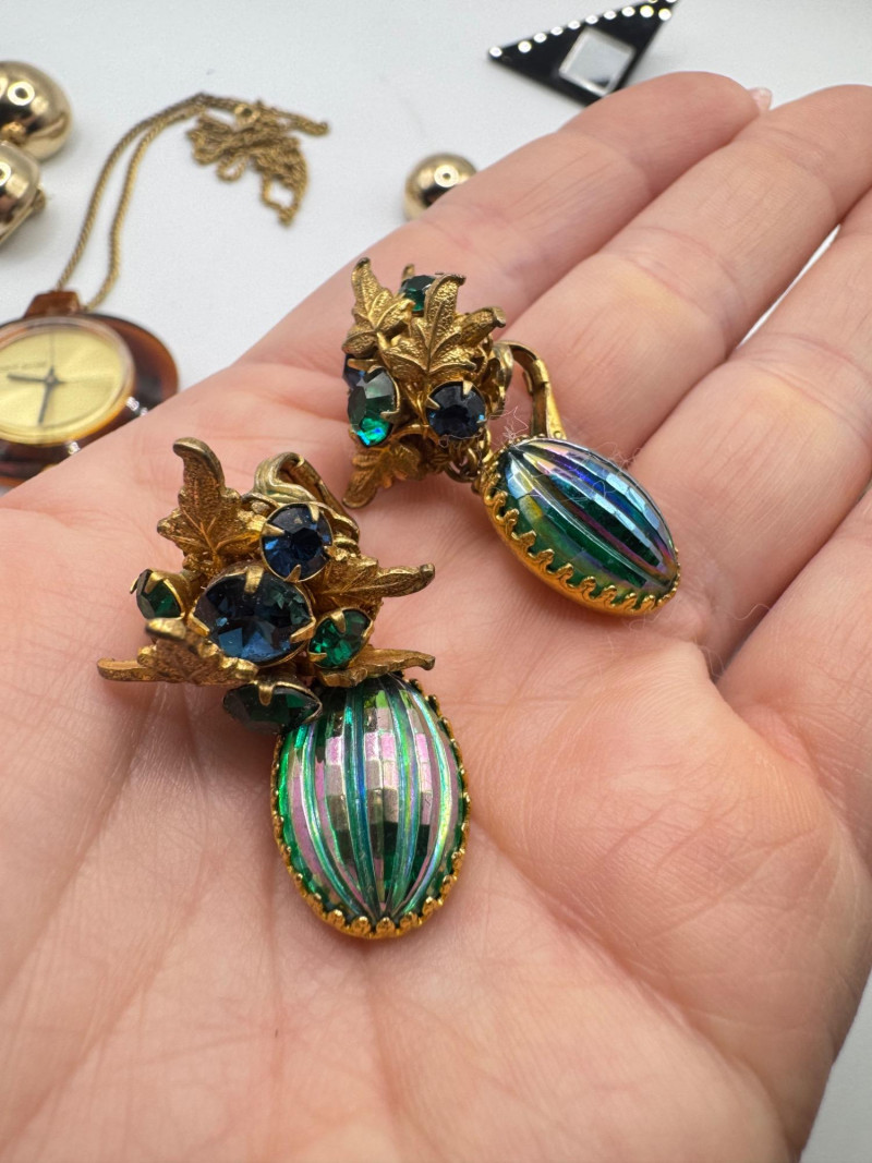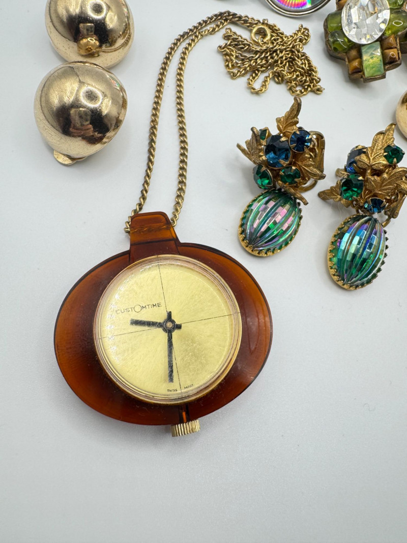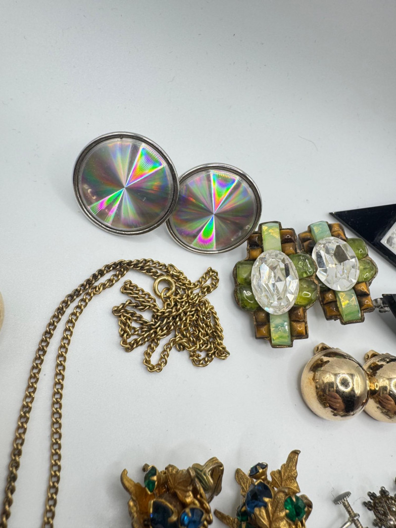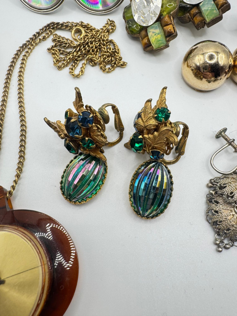 Vintage & Antique Earring Lot w/ Sterling Screw Backs + Watch. Disclaimer: The jewelry in this auction lot has not been tested. By placing a bid, you agree to purchase the item as is, with no guarantees regarding metal quality, content, or purity. Refunds will not be issued on these factors.