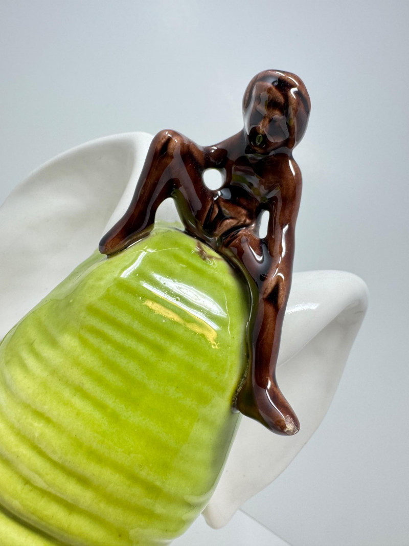 Vintage Royal Haeger Green Elephant Planter w/ Small Seated Figure. Measures approx. 10" x 7" x 10"