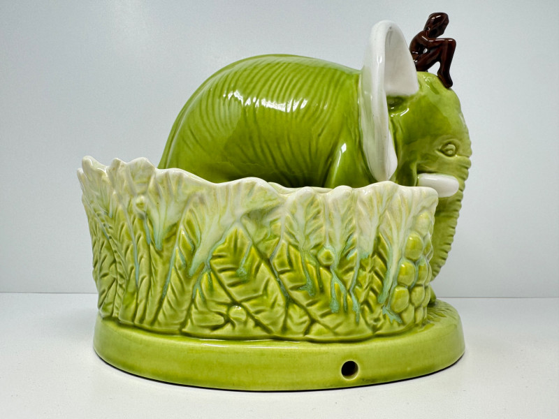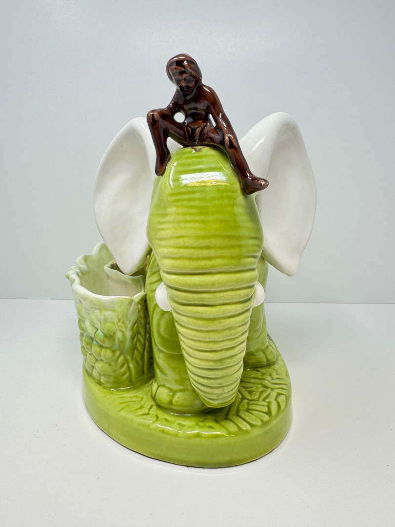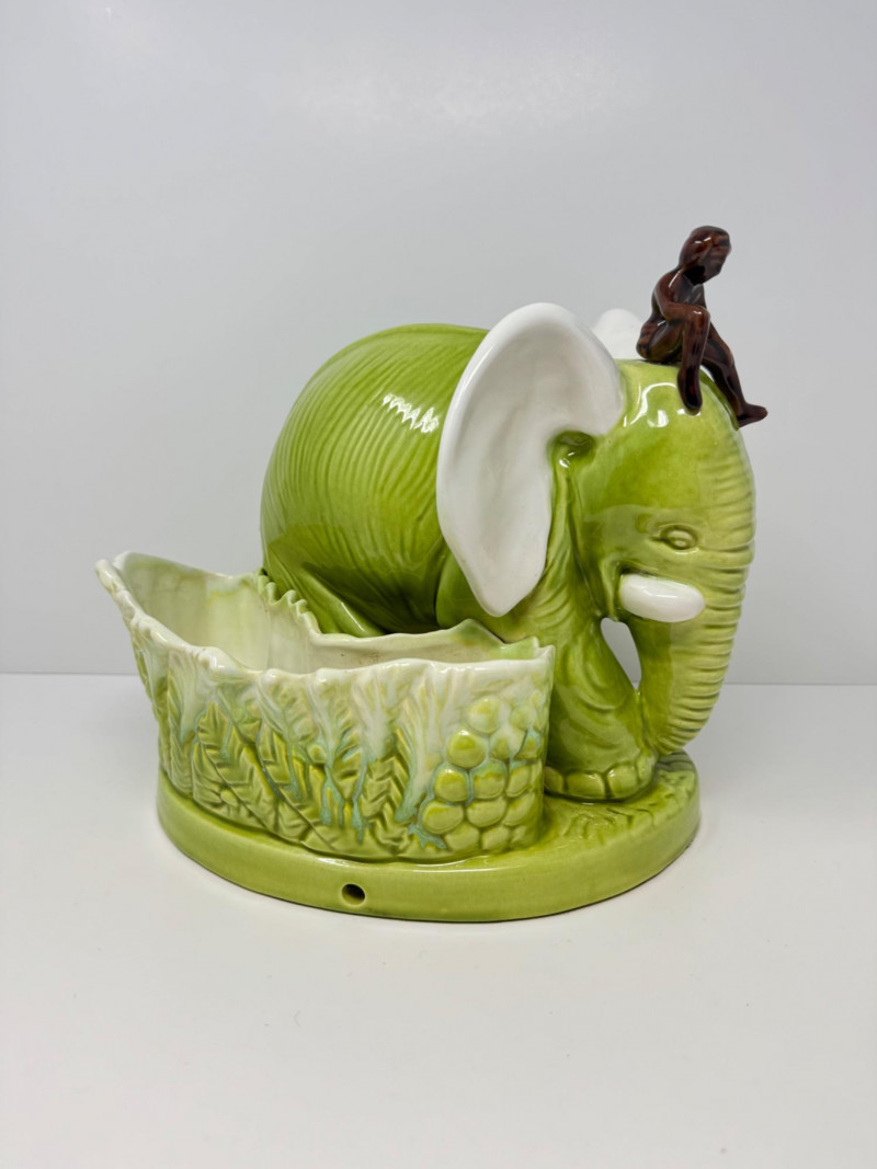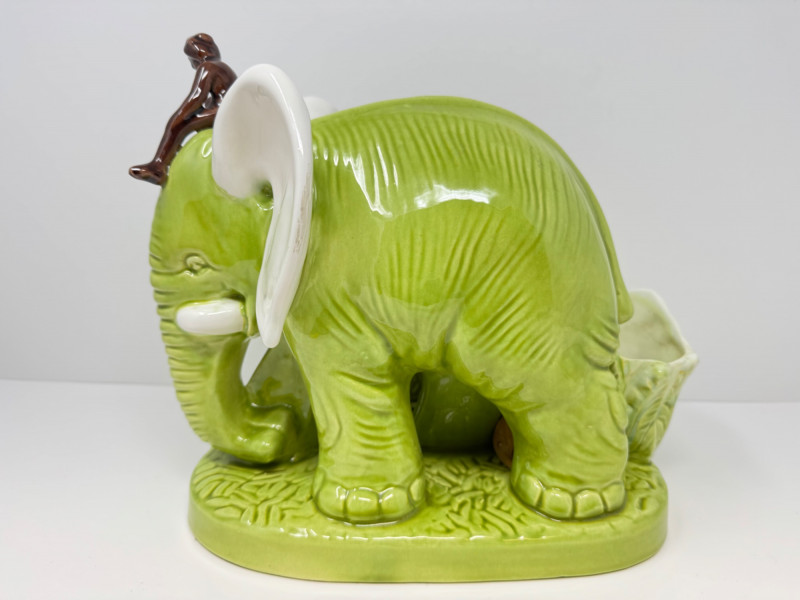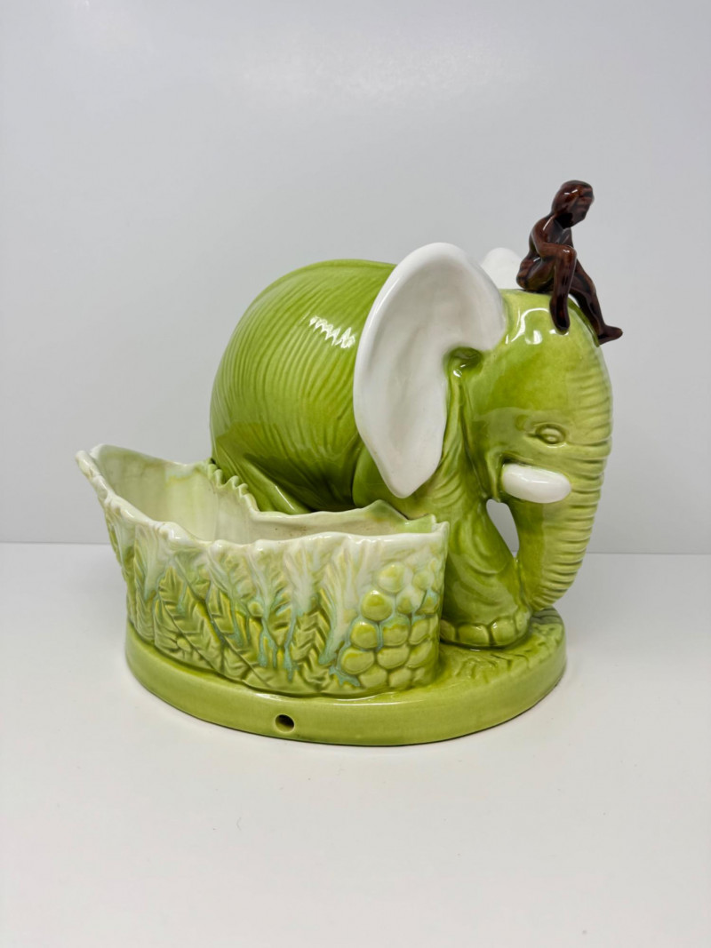 Lot # 14 - Vintage Royal Haeger Green Elephant Planter w/ Small Seated Figure
