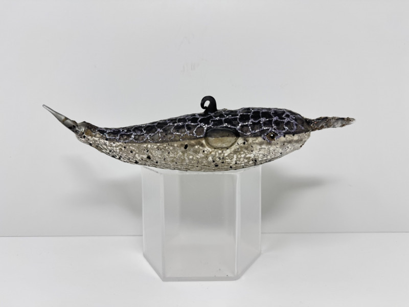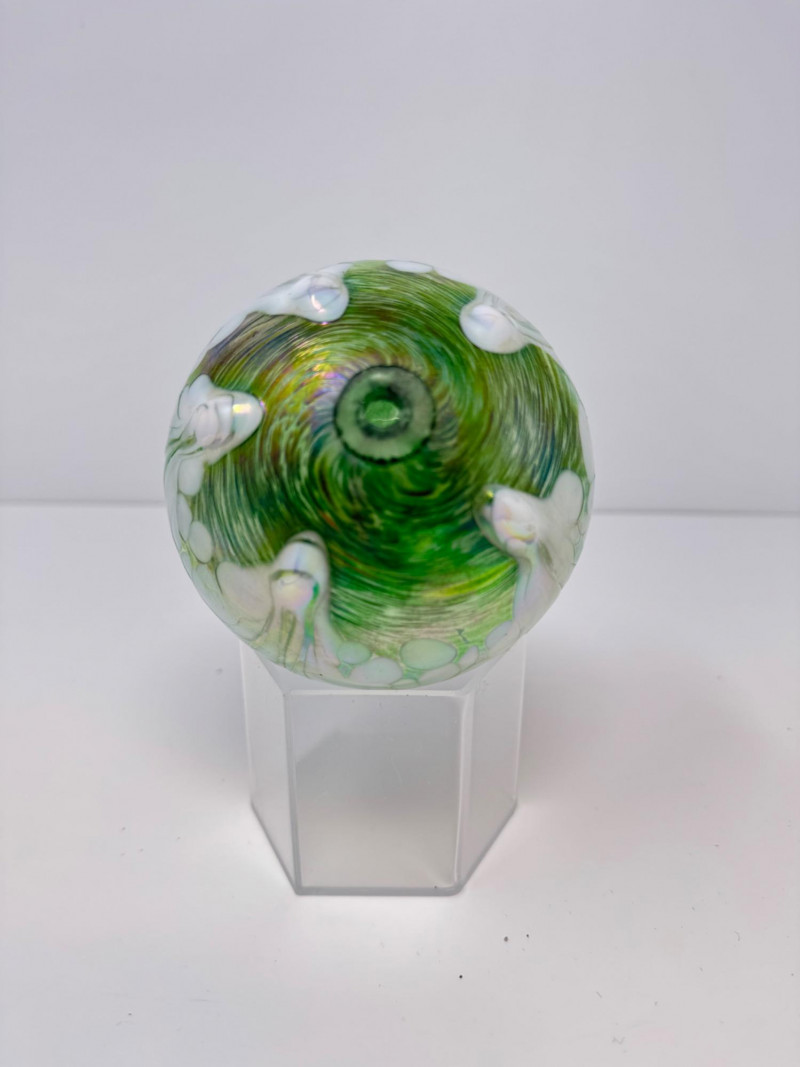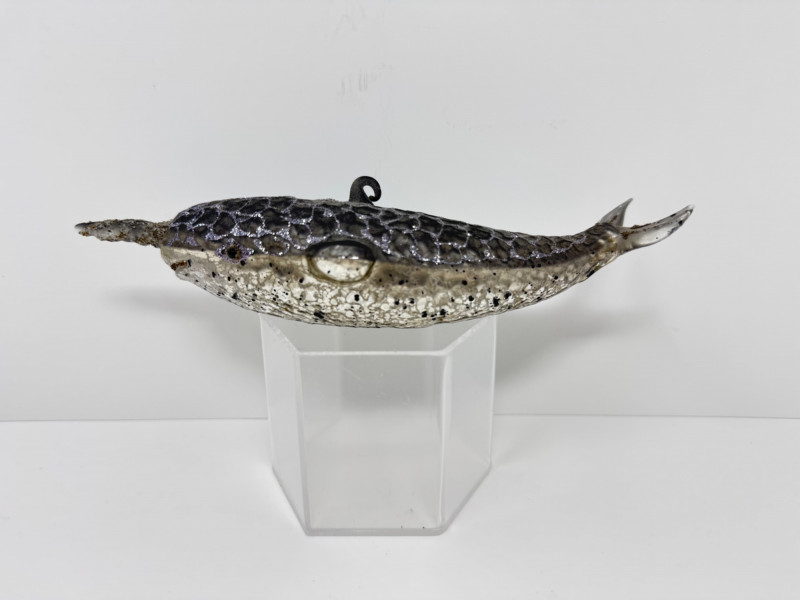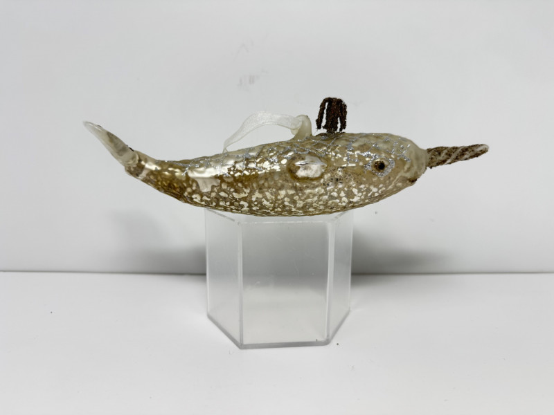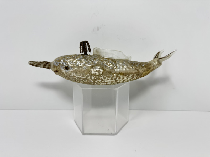 Lot # 23 - Blown Glass Green Swirl Oil Lamp + 2 Narwhal Ornaments