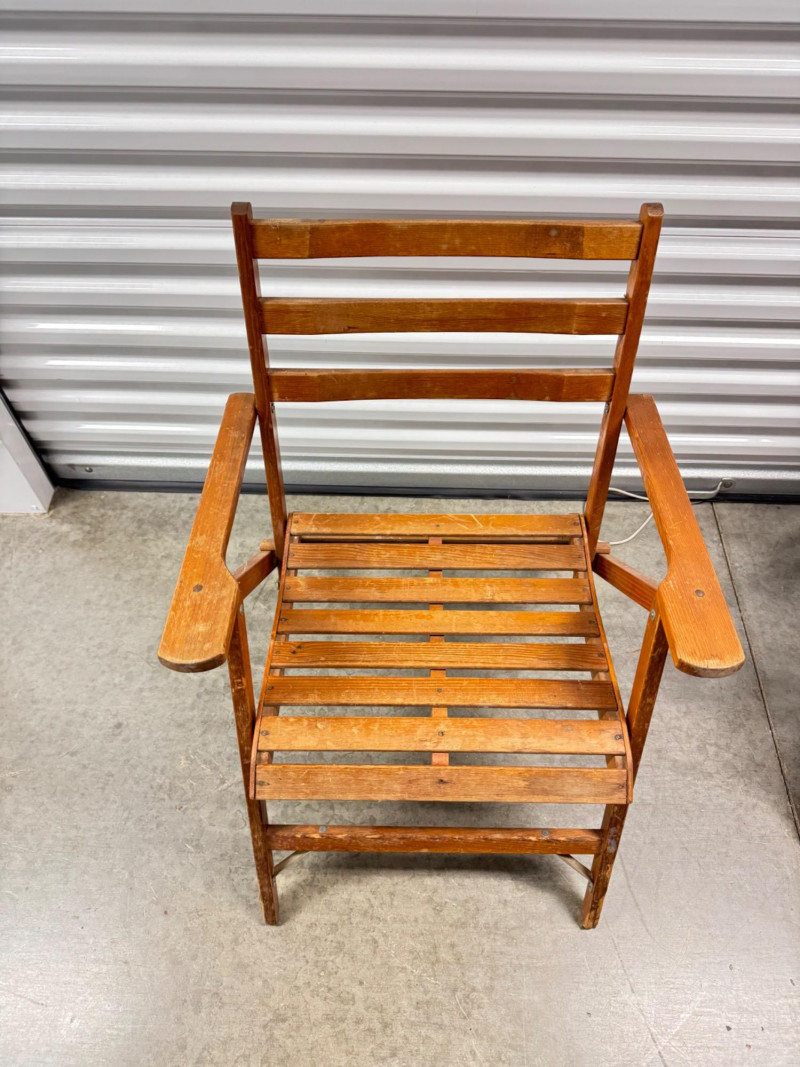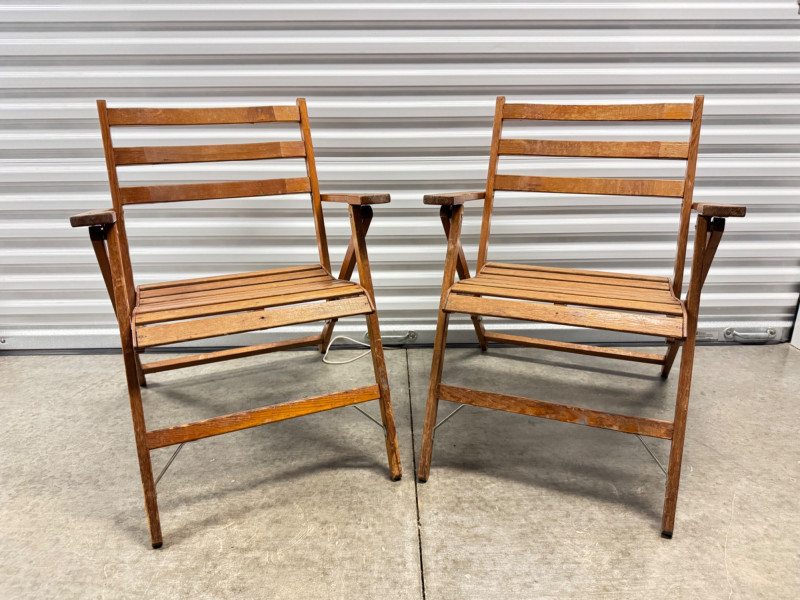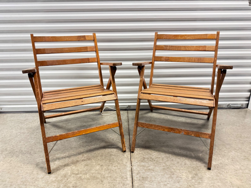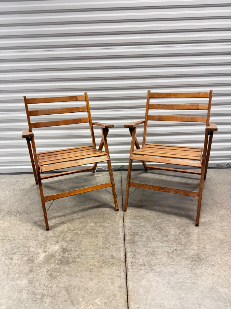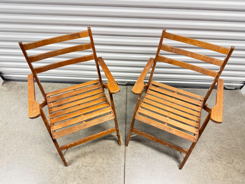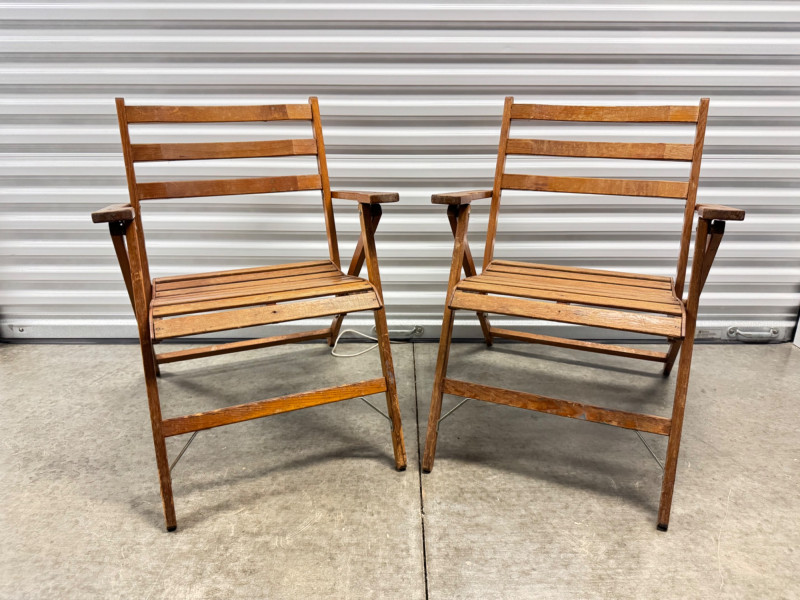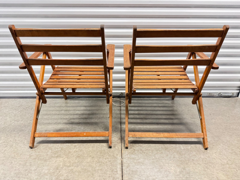 Lot # 30 - Pair of Vintage Slatted Wood Folding Armchairs