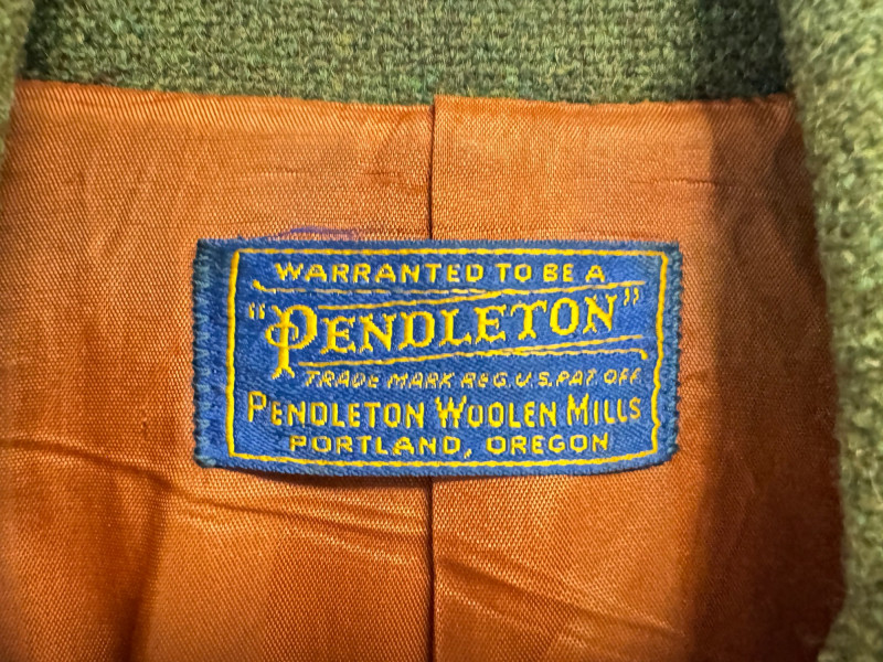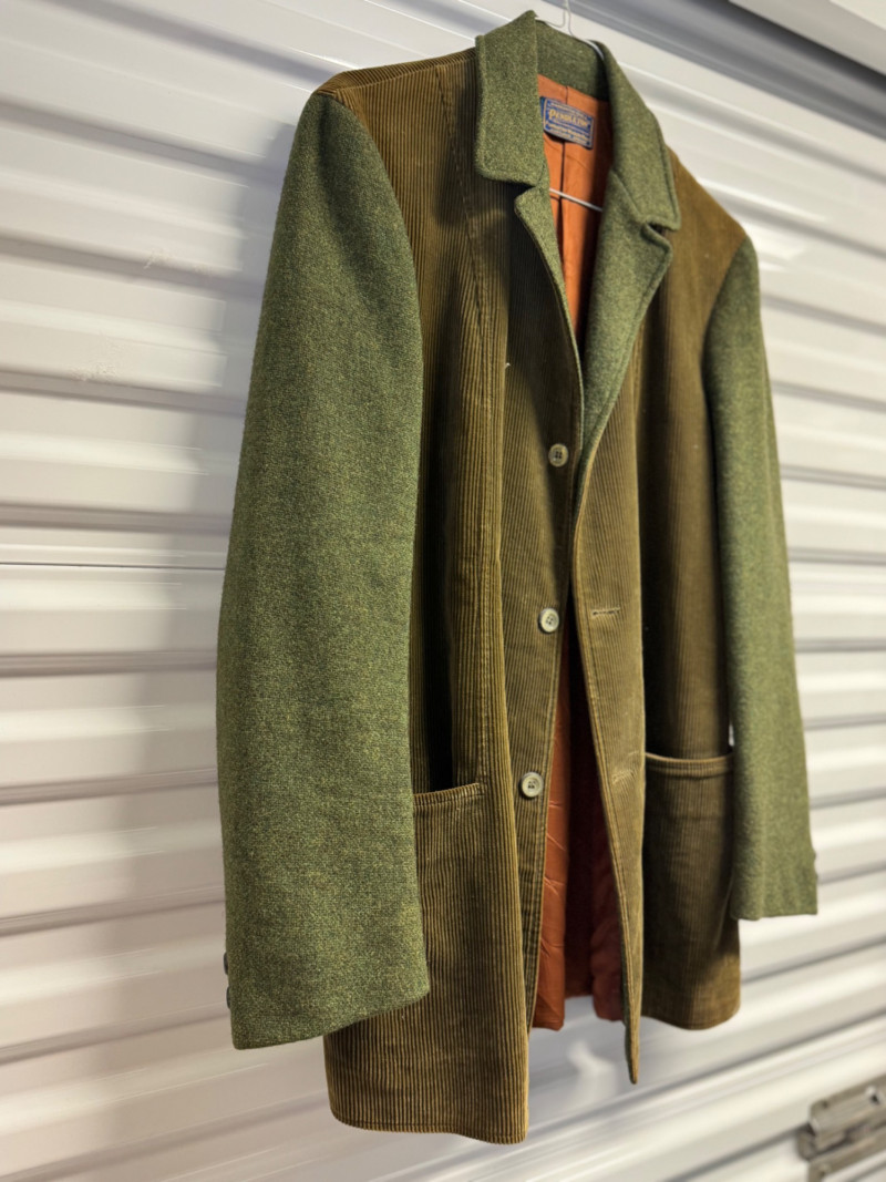 Pendleton Wool & Corduroy Green Sport Coat Jacket w/ Orange Lining.