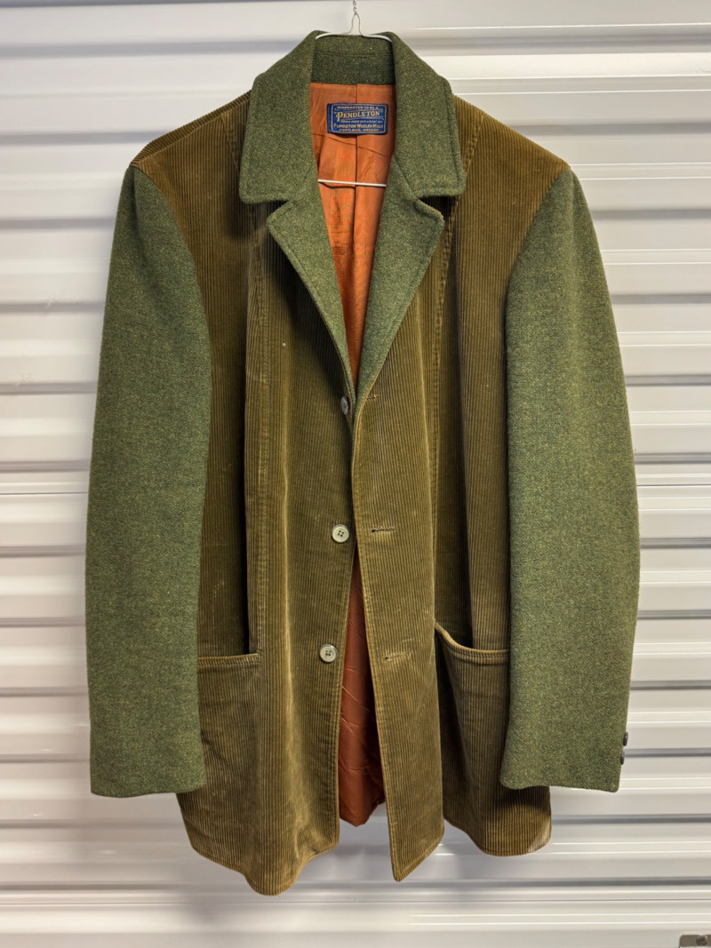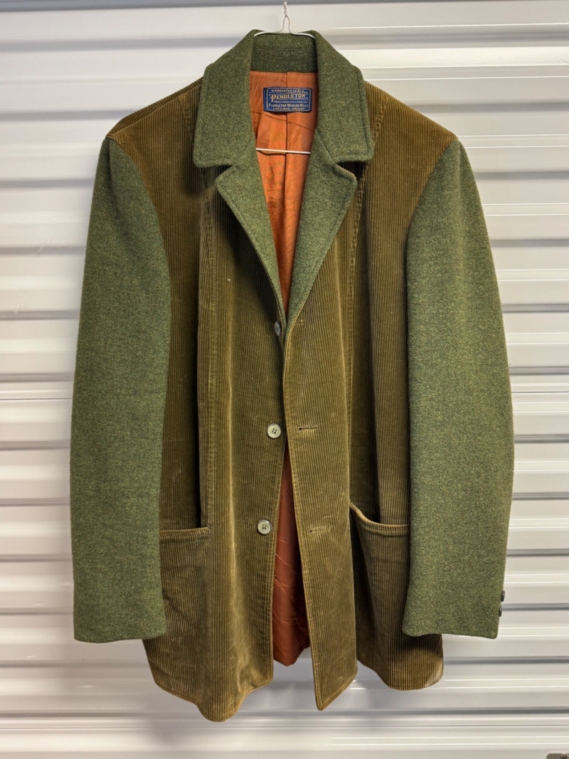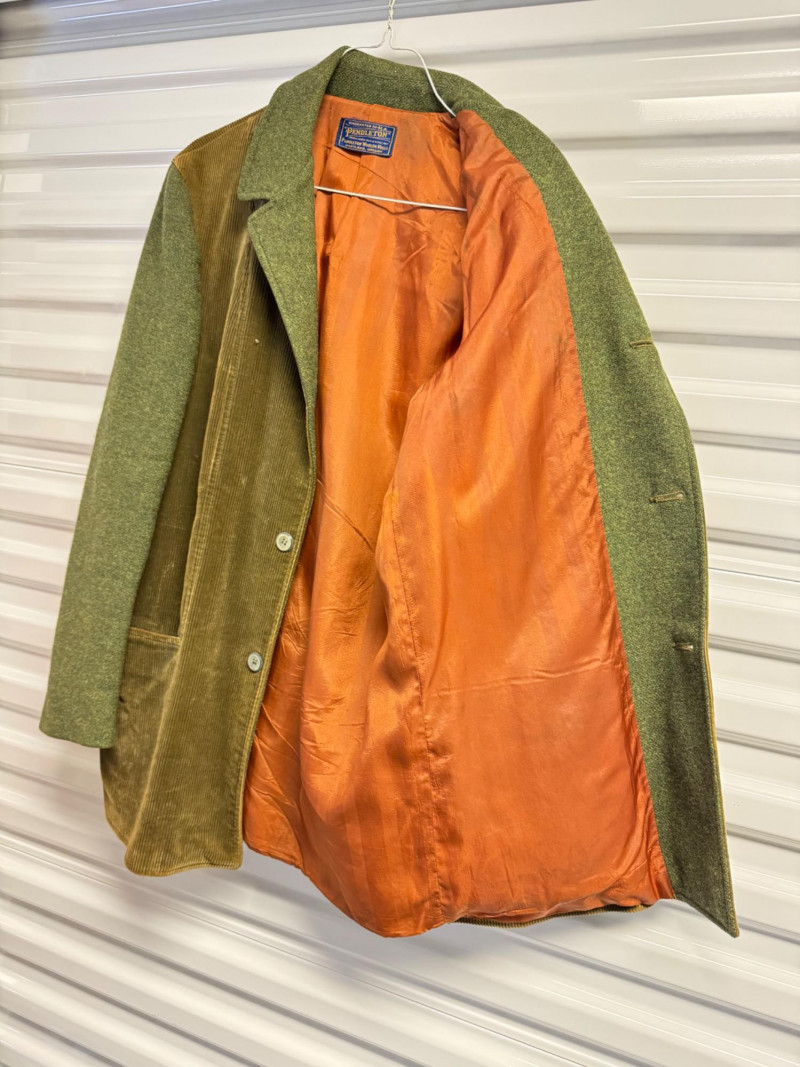 Lot # 42 - Pendleton Wool & Corduroy Green Sport Coat Jacket w/ Orange Lining