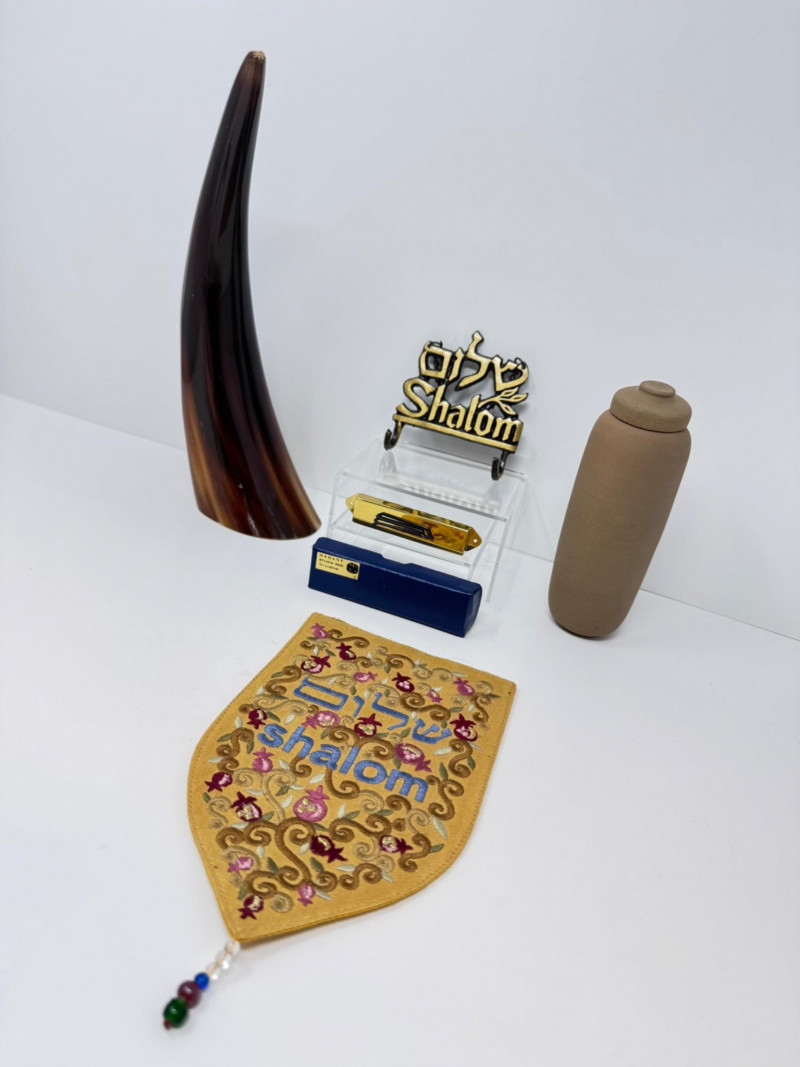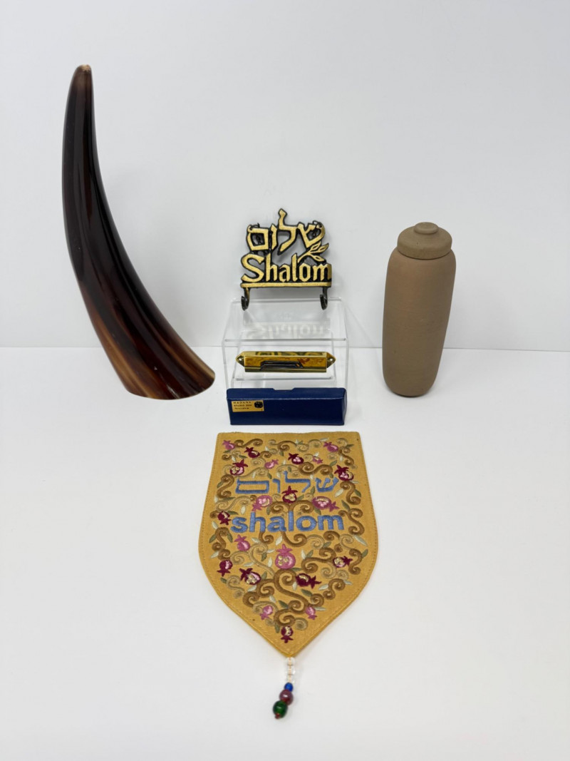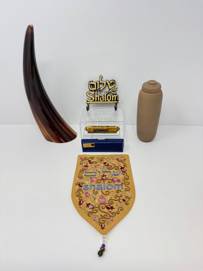 Jewish Judaica Collection w/ Torah Scroll, Mezuzah, Shalom Decor