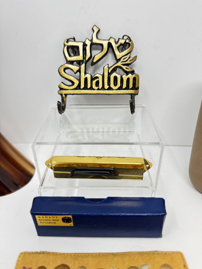 Lot # 45 - Jewish Judaica Collection w/ Torah Scroll, Mezuzah, Shalom Decor