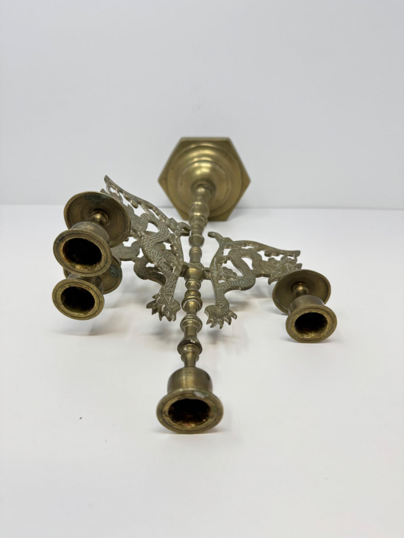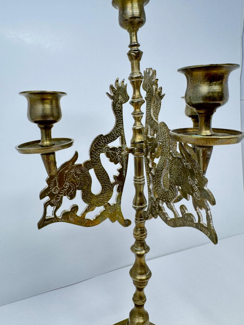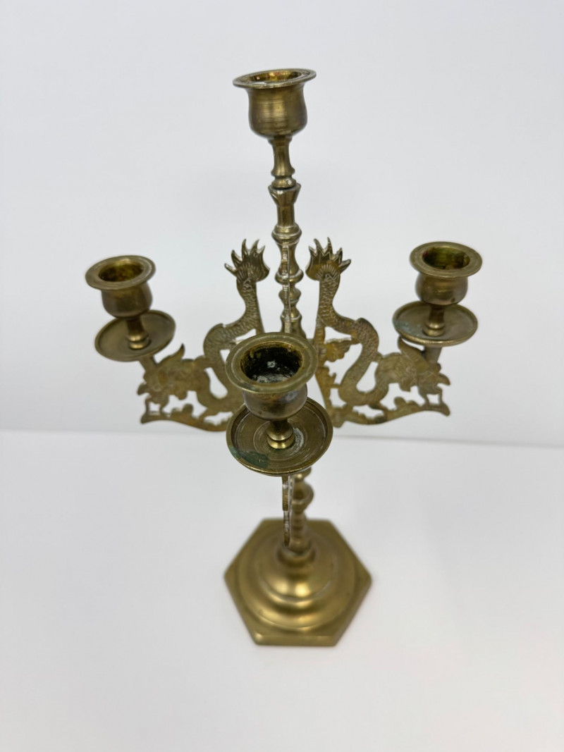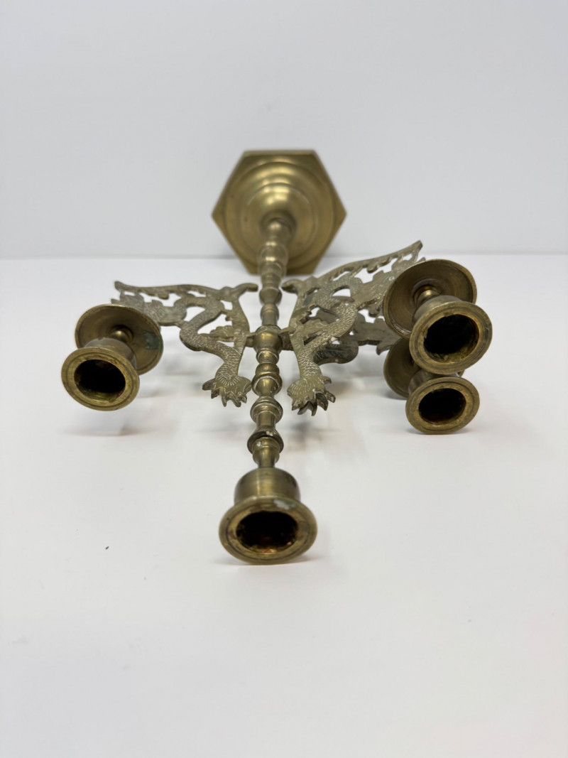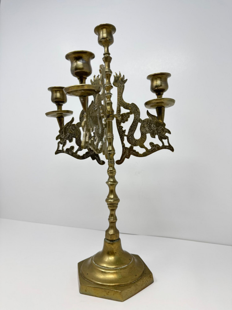 Vintage Brass 4-Light Adjustable Candelabra w/ Dragon Motif.