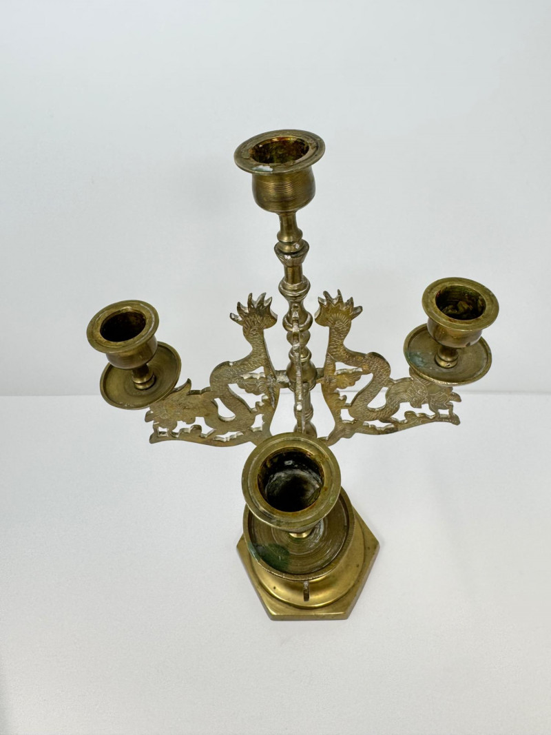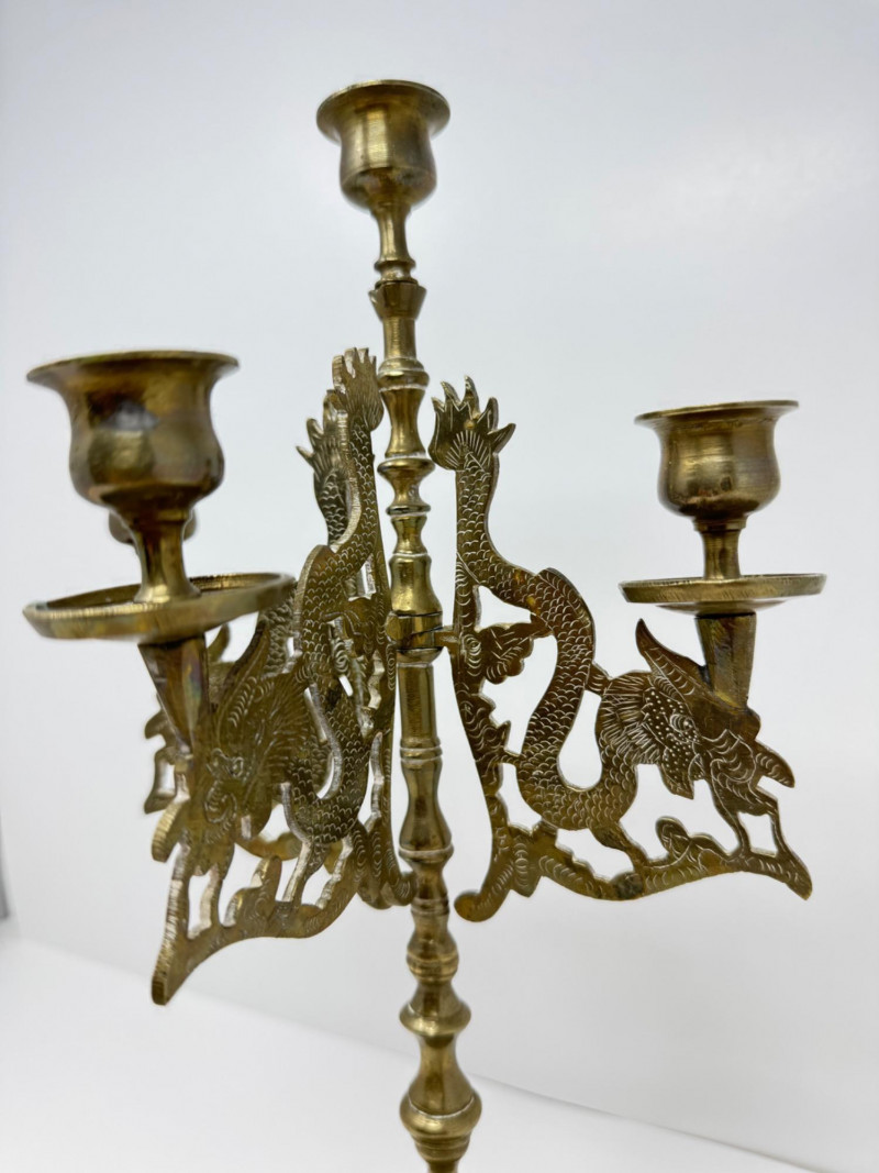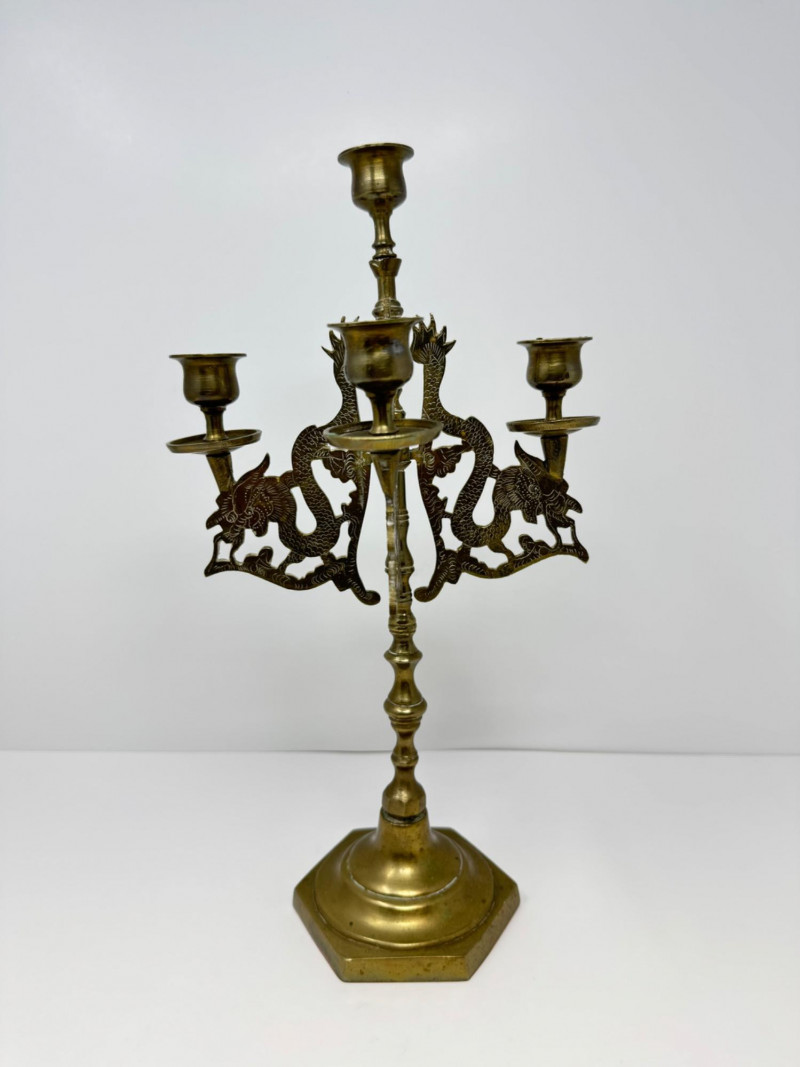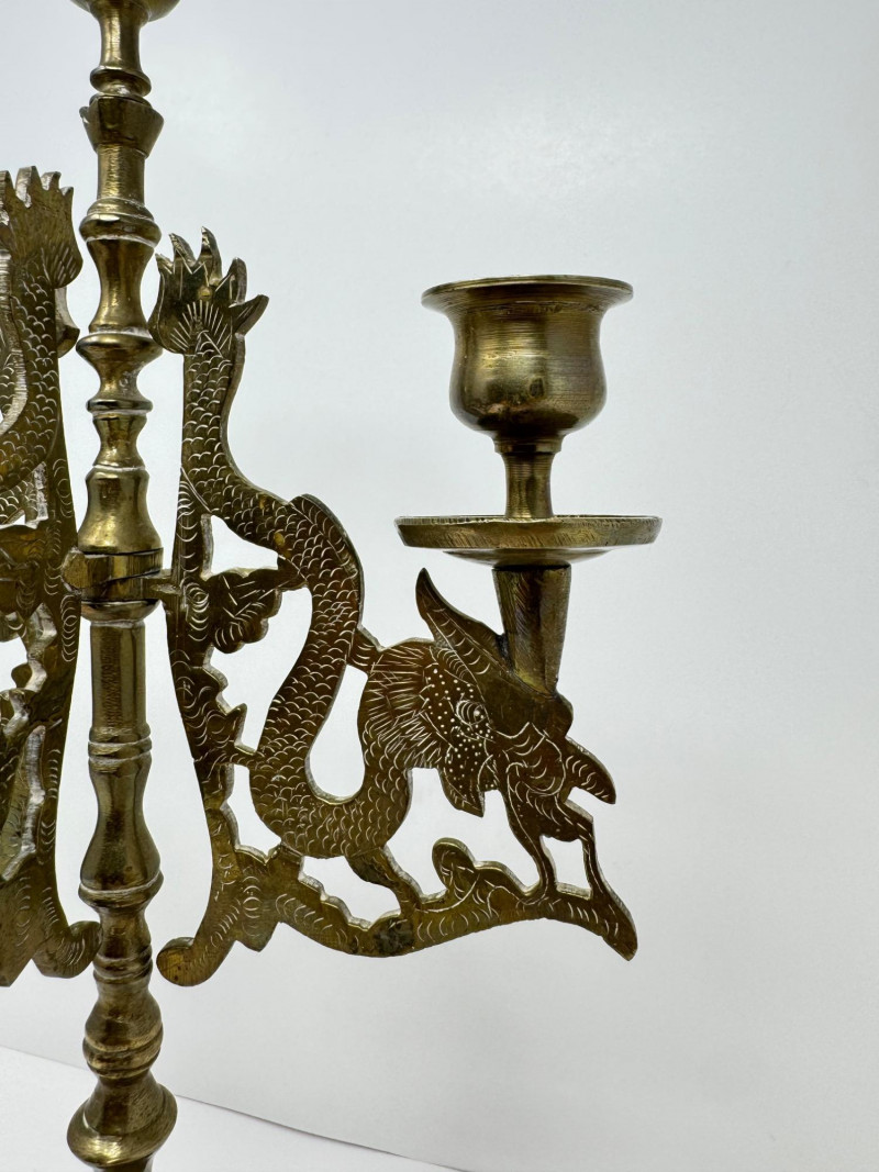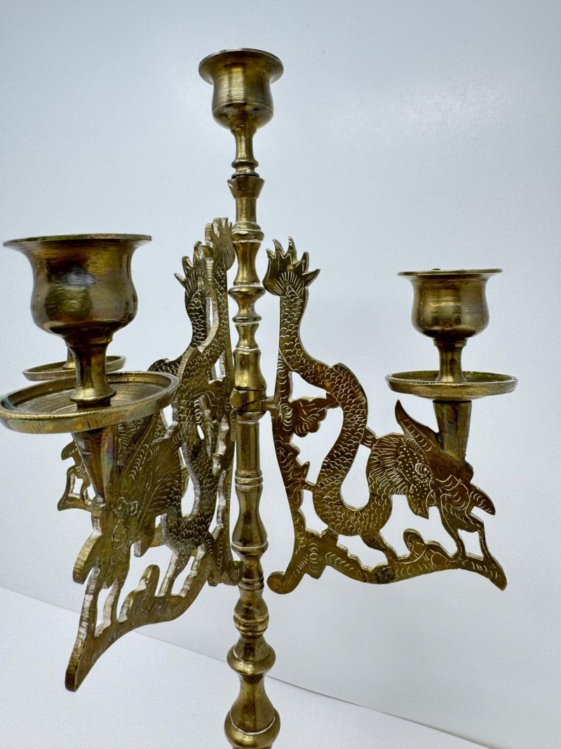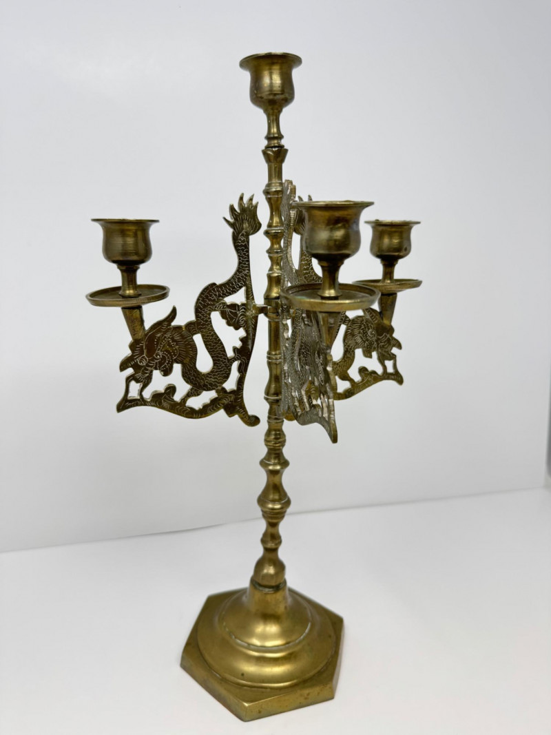 Vintage Brass 4-Light Adjustable Candelabra w/ Dragon Motif.
