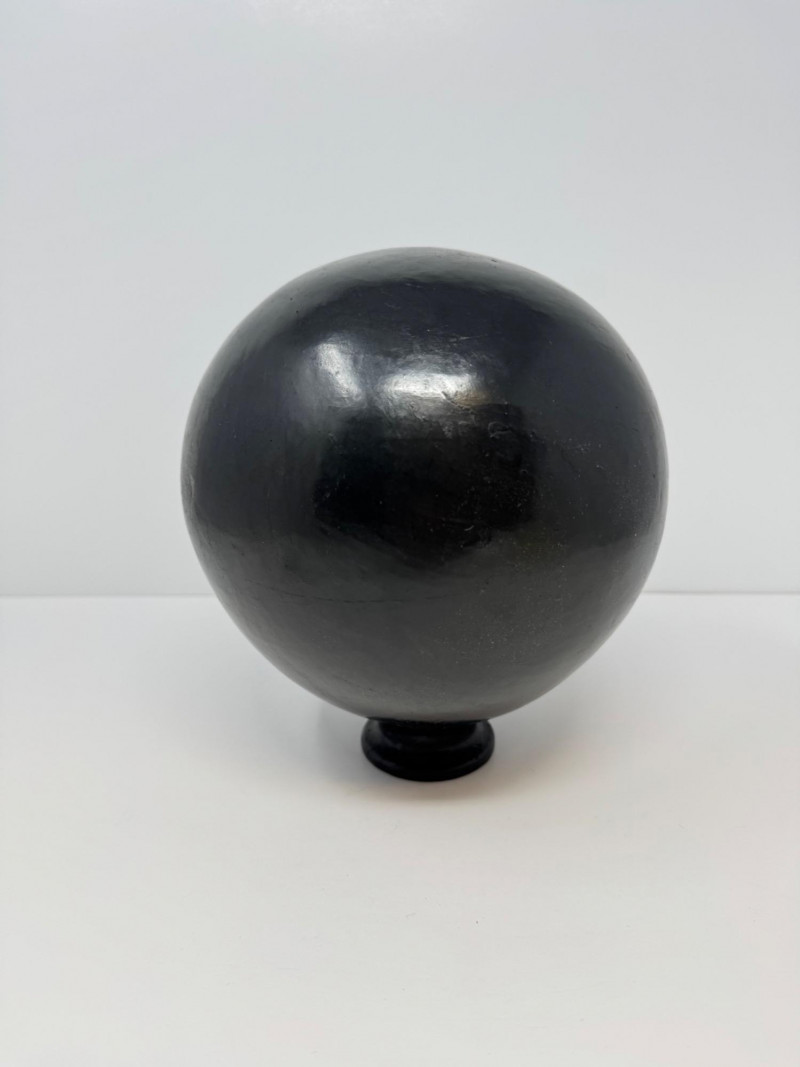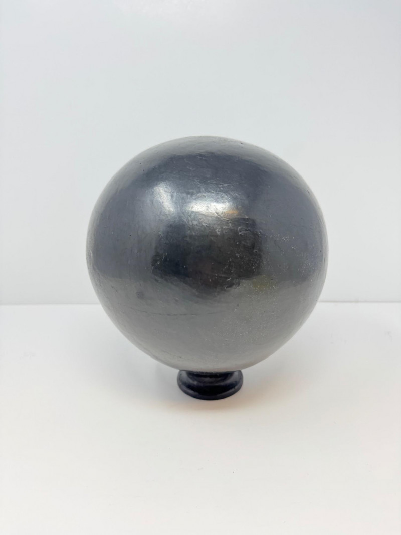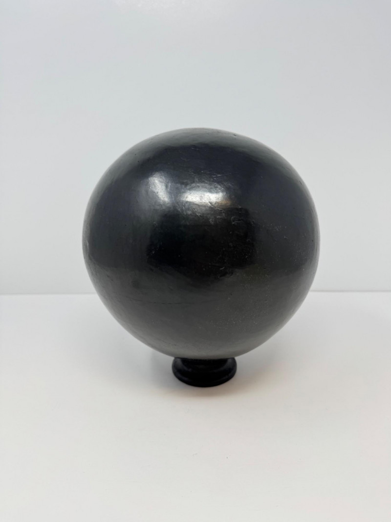 Round Handcrafted Mexican Black Pottery Vase, Hecho en Mexico.